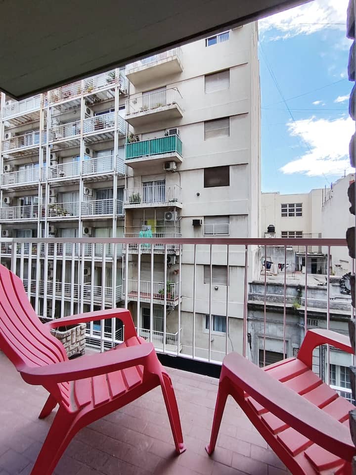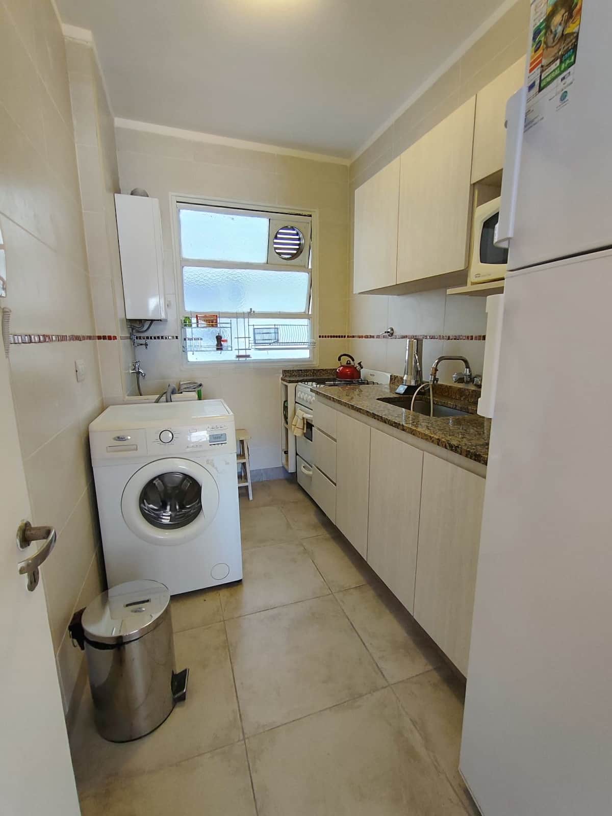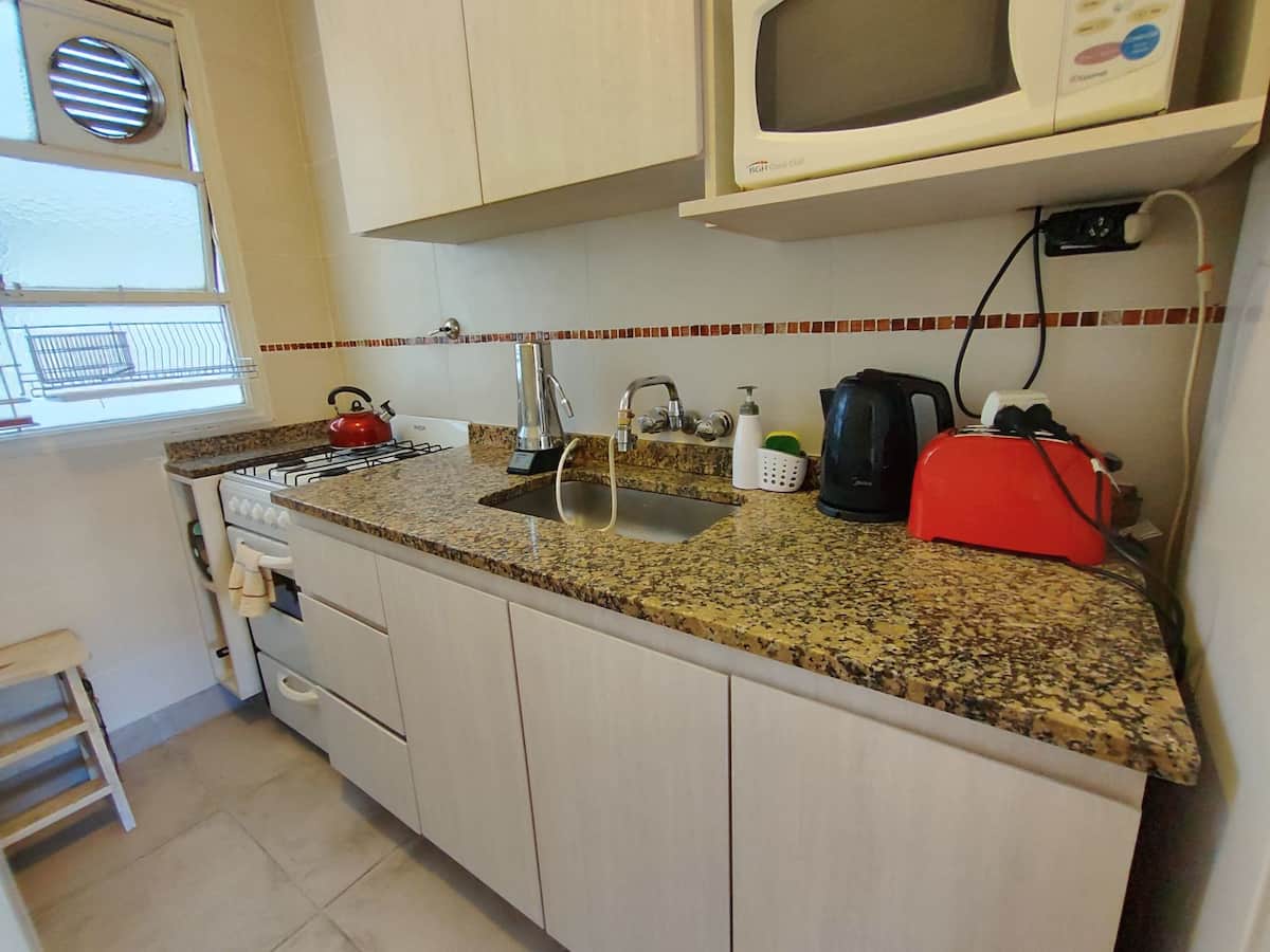 One-bedroom apartment in Monserrat with a full kitchen and a living room. The living room includes a single bed and a work area. Guests can use the entire apartment except one room that remains closed; check-in is from 2:00 pm to 7:00 pm, with an extra USD 20 for arrivals outside those hours subject to availability.