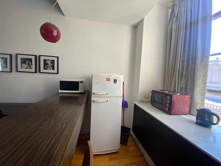 Loft-style apartment in a heritage building of the City of Buenos Aires, a former Hotel Moreno. The unit has 44 m² and sleeps up to 2 people with a double bed. It is two blocks from Plaza de Mayo/Casa Rosada and half a block from Calle Defensa. The building access is via a mobile app; a phone battery charge is required.