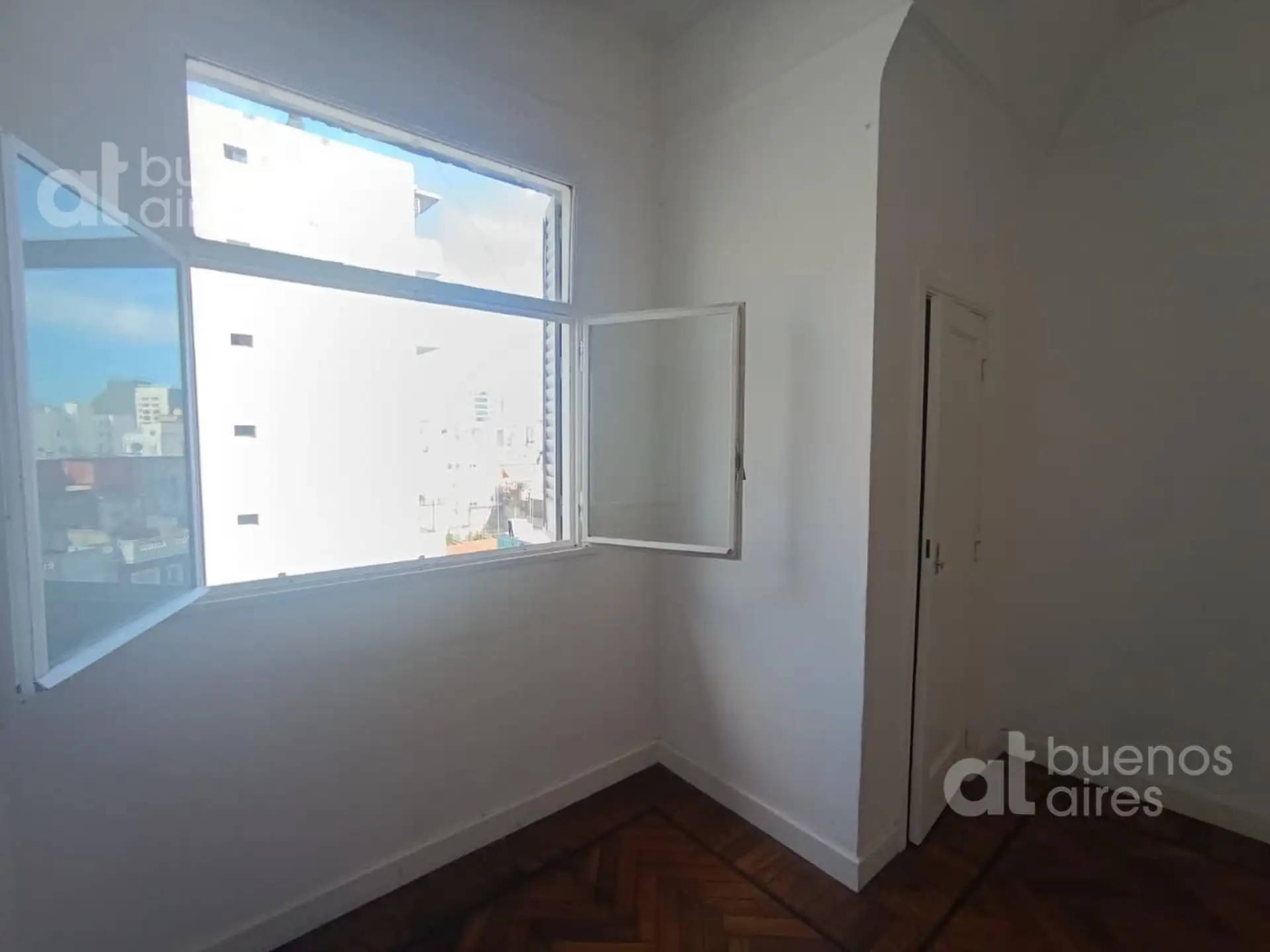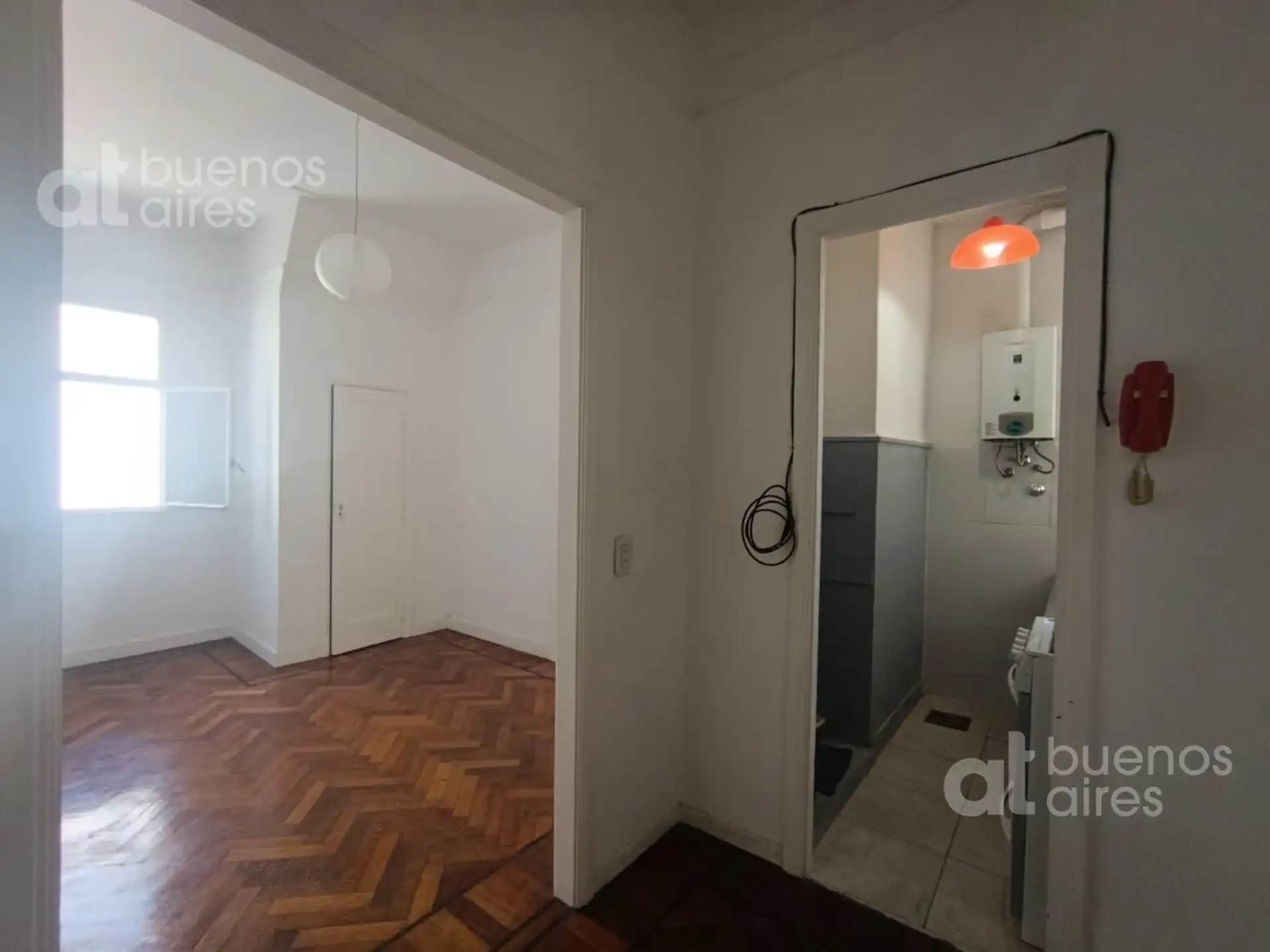 Two-room apartment with 1 bedroom, immediate availability from 9 March 2026. Parquet floors, high ceilings, built-in wardrobes in the living room and bedroom, and a balcony with an open view. Separate kitchen with a gas cooktop and oven, gas water heater (calefón), under-counter storage and space for a large refrigerator; full bathroom with bathtub. Building fees and services are added to the listed rent, with expensas reported for February 2026 at $200,000; quarterly rent adjustment by IPC. Ent