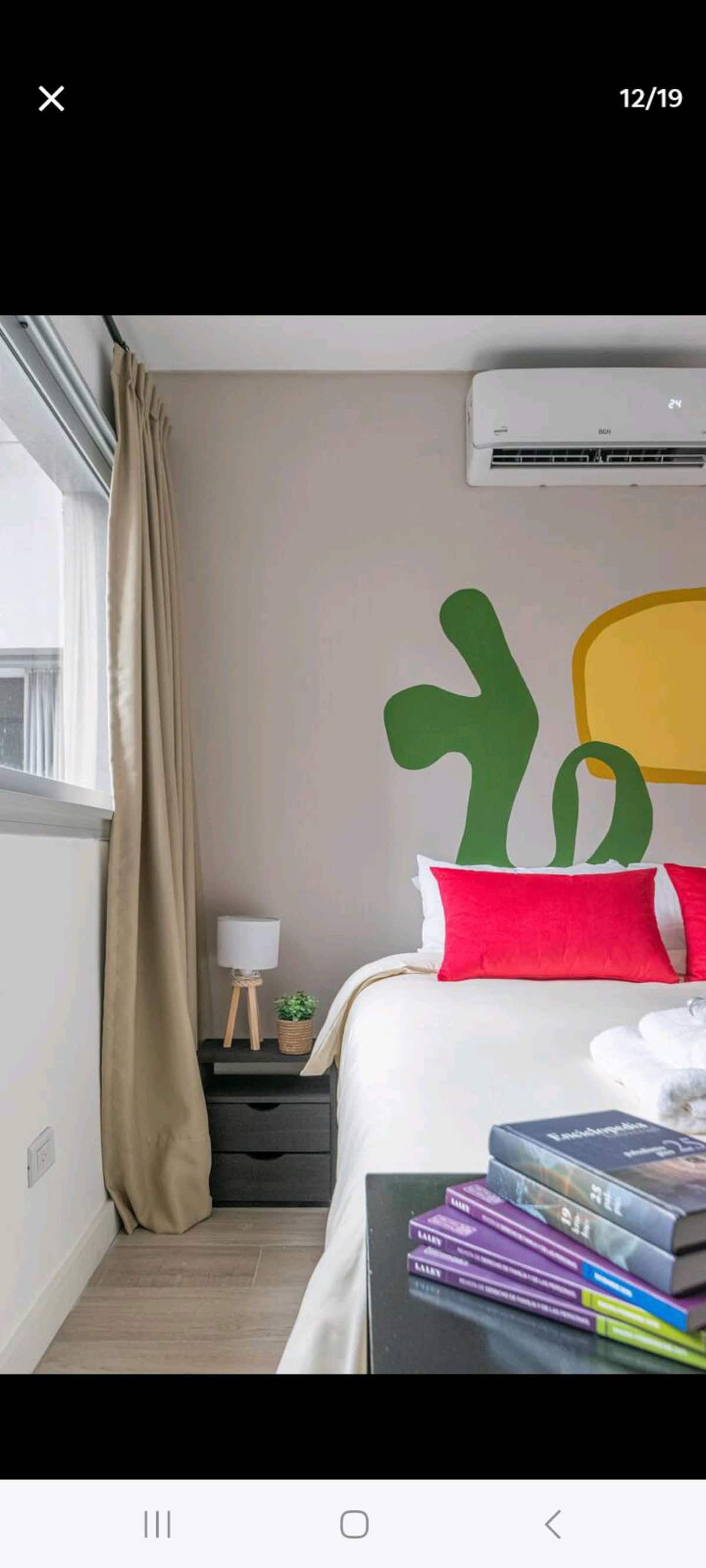 One-bedroom apartment in Monserrat, separated from street noise. It has its own kitchen and is located inside a modern building with a gym, swimming pool, work room, SUM (Urban Sports Center), a children’s area, grill and a large patio. The building is a few blocks from Congress and the Obelisk, opposite the central house of the Argentine Federal Police.