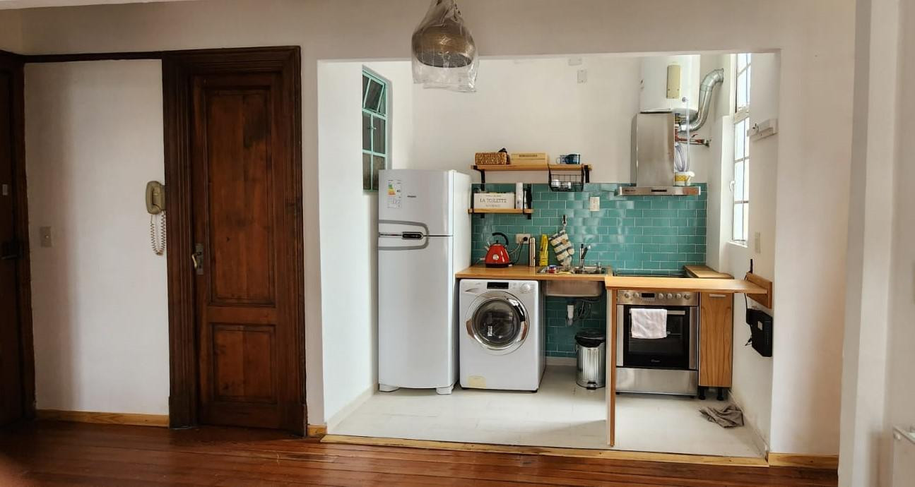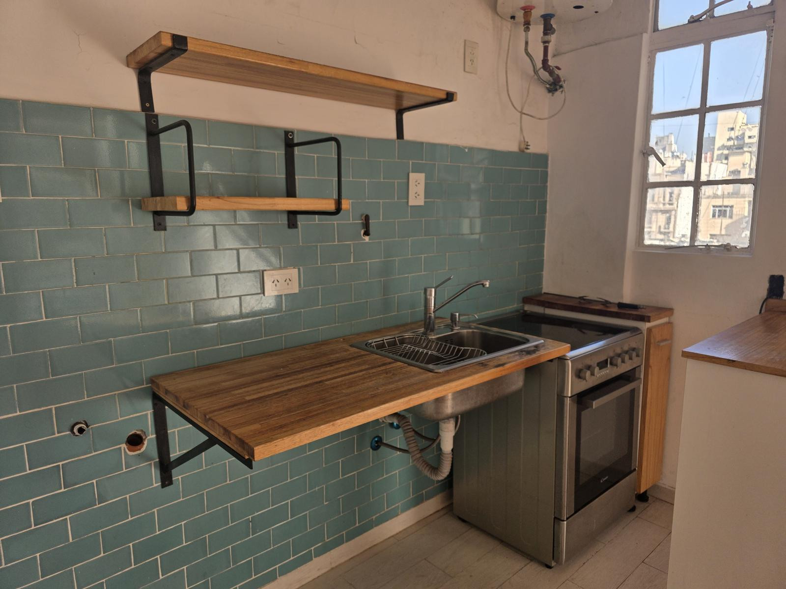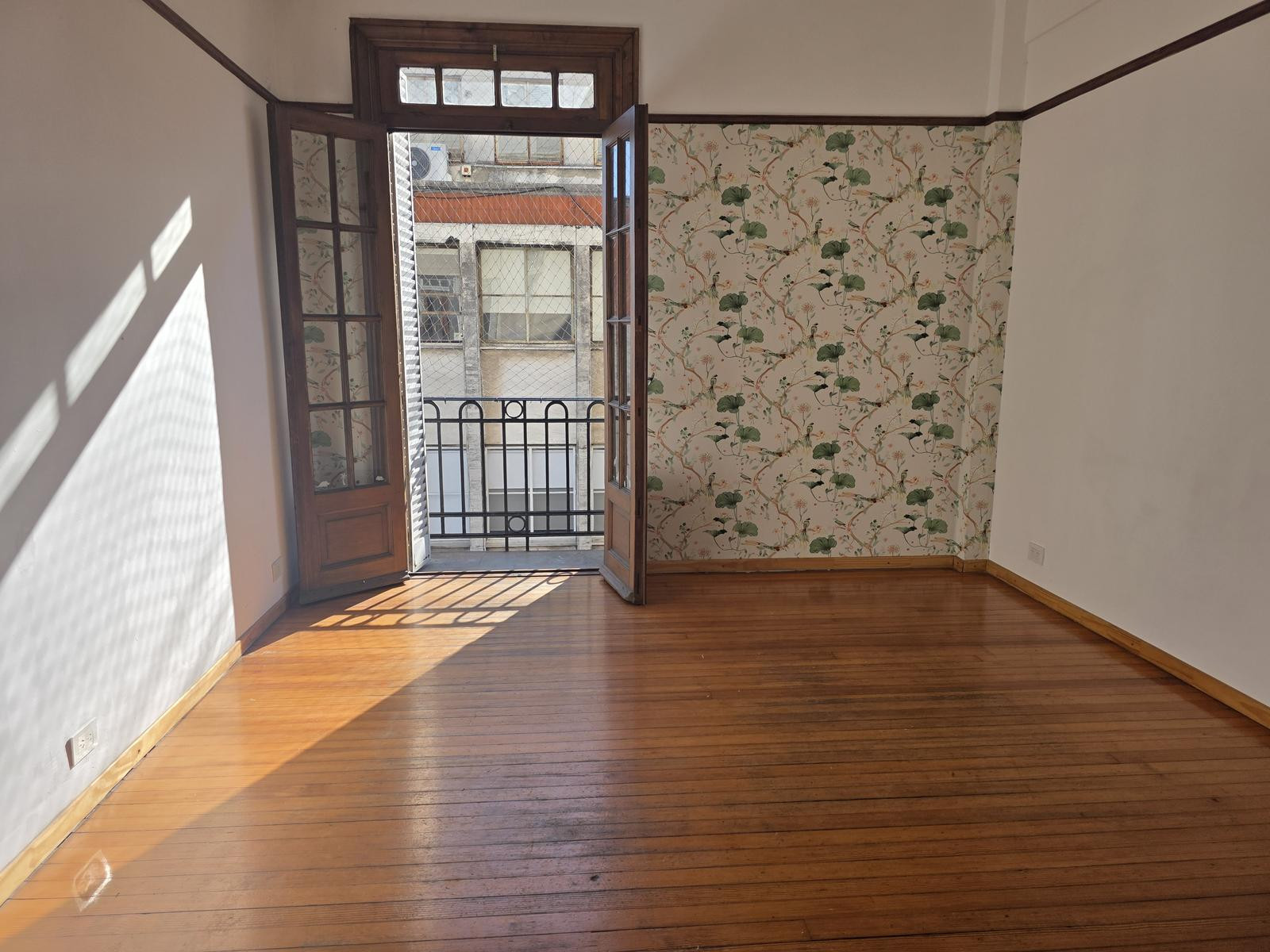 Two-and-a-half-room apartment for rent in Monserrat. It has 1 large bedroom and a study or a second small bedroom, with an integrated kitchen in the living-dining area. The bathroom has a shower and there is a small balcony. The unit has parquet (pinotea) flooring throughout, and it is suitable for people with reduced mobility. Location is a short distance from Av. de Mayo and near Plaza Congreso and the Barolo building.