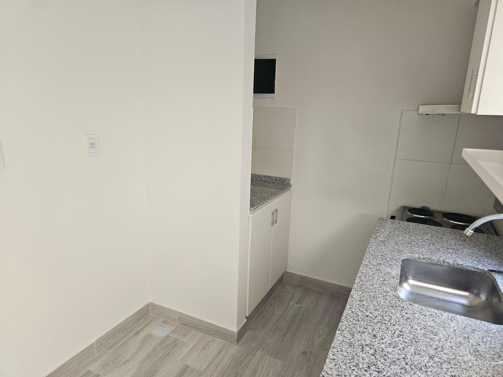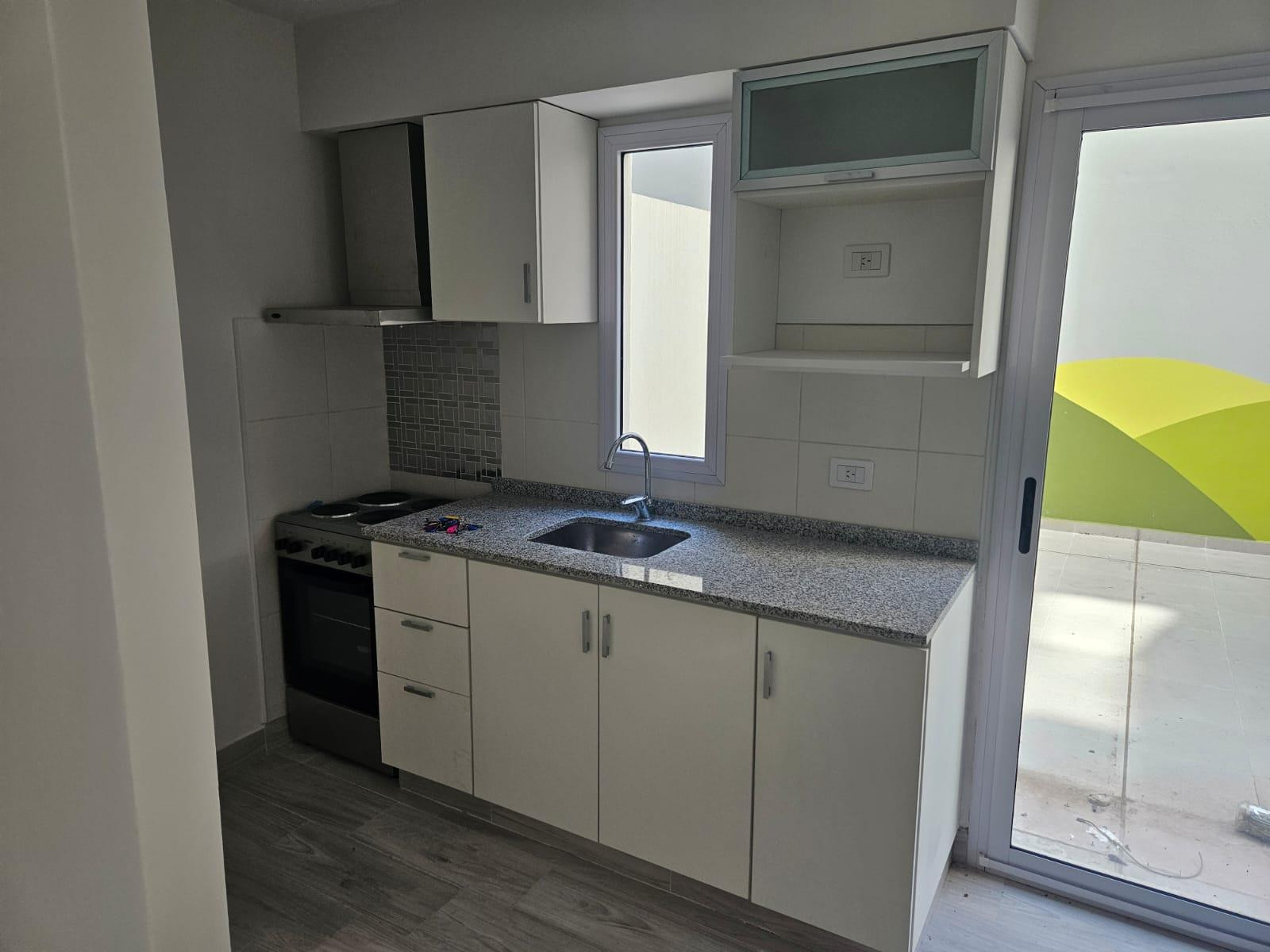 Brand-new apartment with 1 bedroom, with a semi-separate kitchen and an interior patio. Equipped with a full kitchen unit (base cabinets and wall cabinets), oven and burners, and built-in wardrobes with complete interiors. Central services include a pre-installation for split air conditioning, and there is a connection for a washing machine in the patio. The building has a gym, communal room (SUM), grill, and a jacuzzi; parking is included in the advertised price, with an optional covered or unc