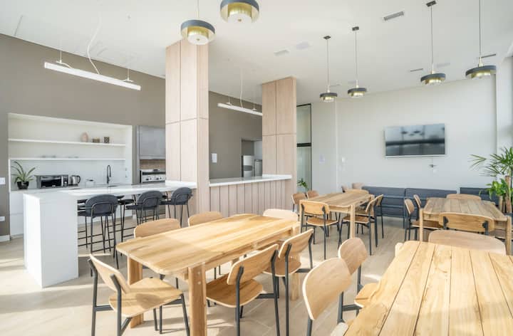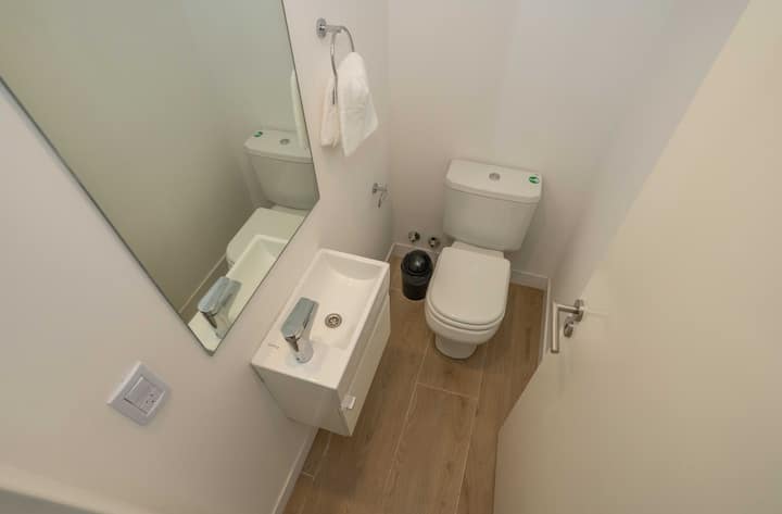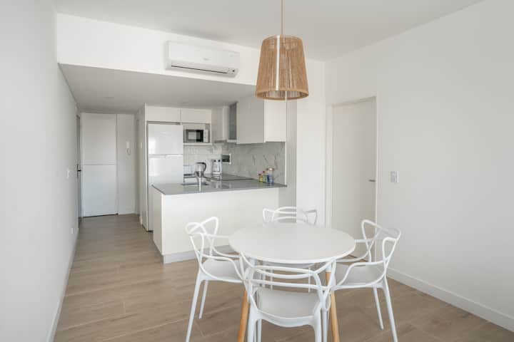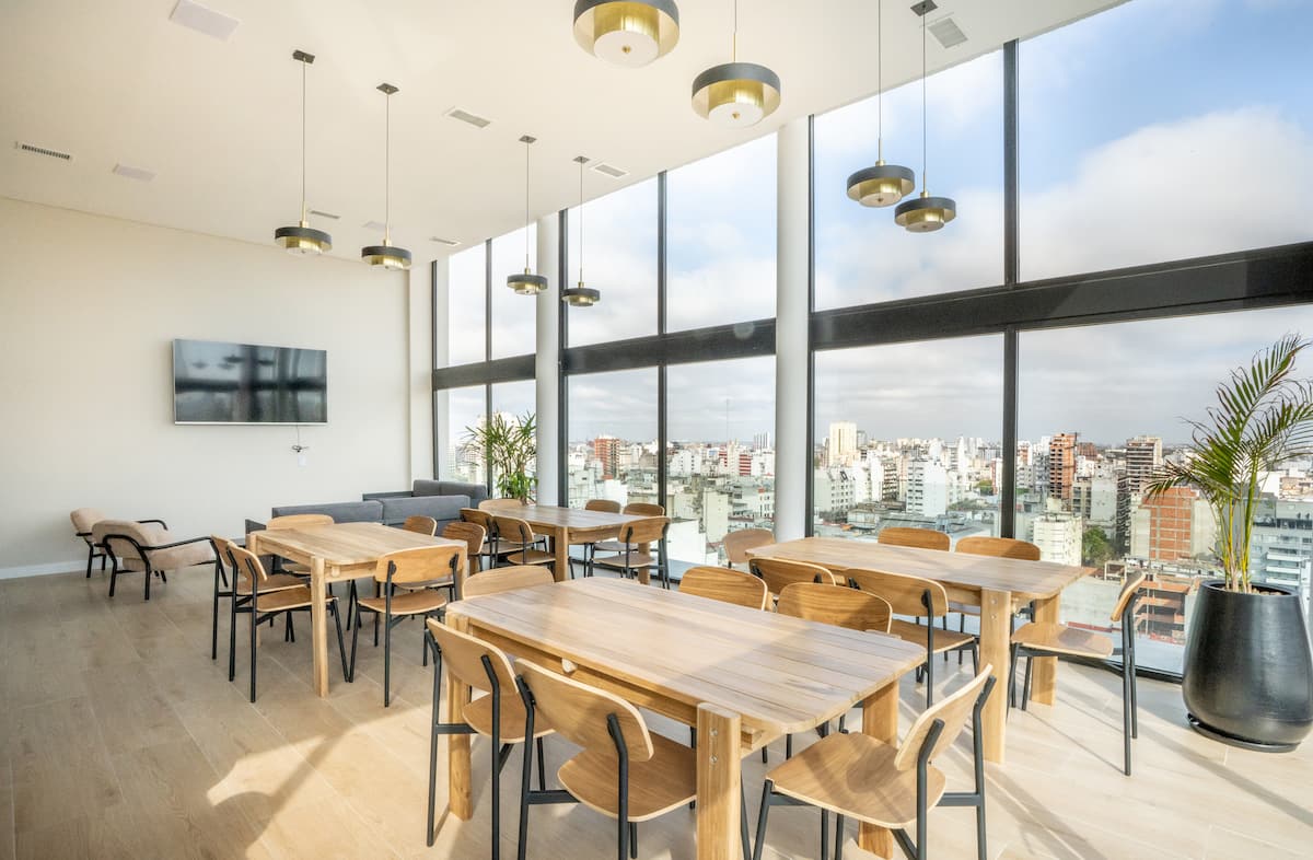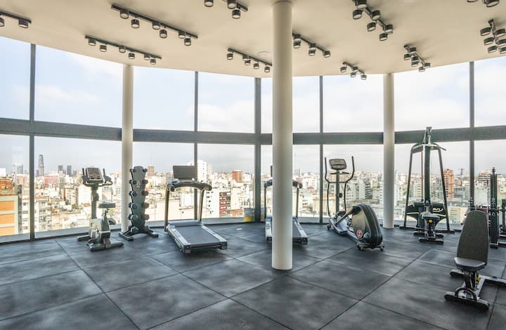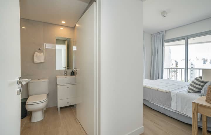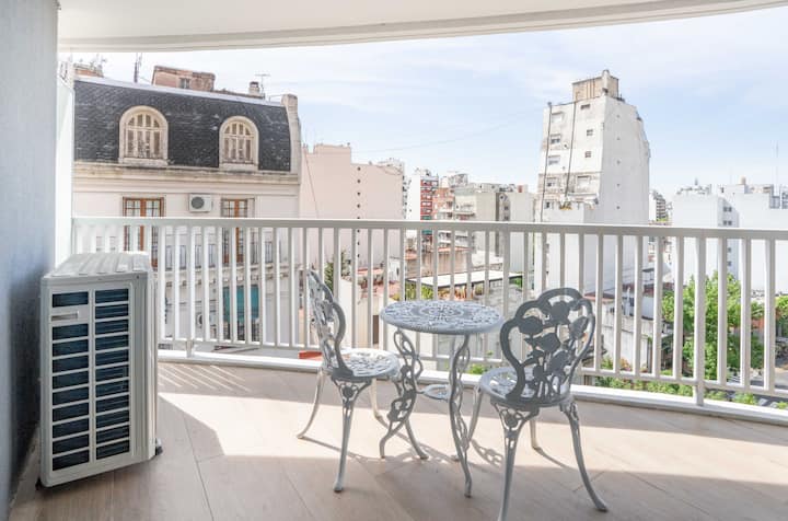 One-bedroom apartment in Monserrat, Buenos Aires, on the 7th floor with lift access. Street-facing with a balcony and a private bathroom. Living room with air conditioning, high-speed Wi‑Fi and Smart TV. Kitchen includes an oven, microwave, fridge, coffee maker and toaster.