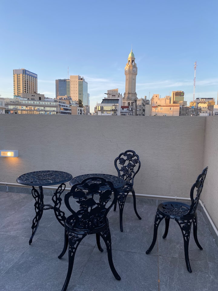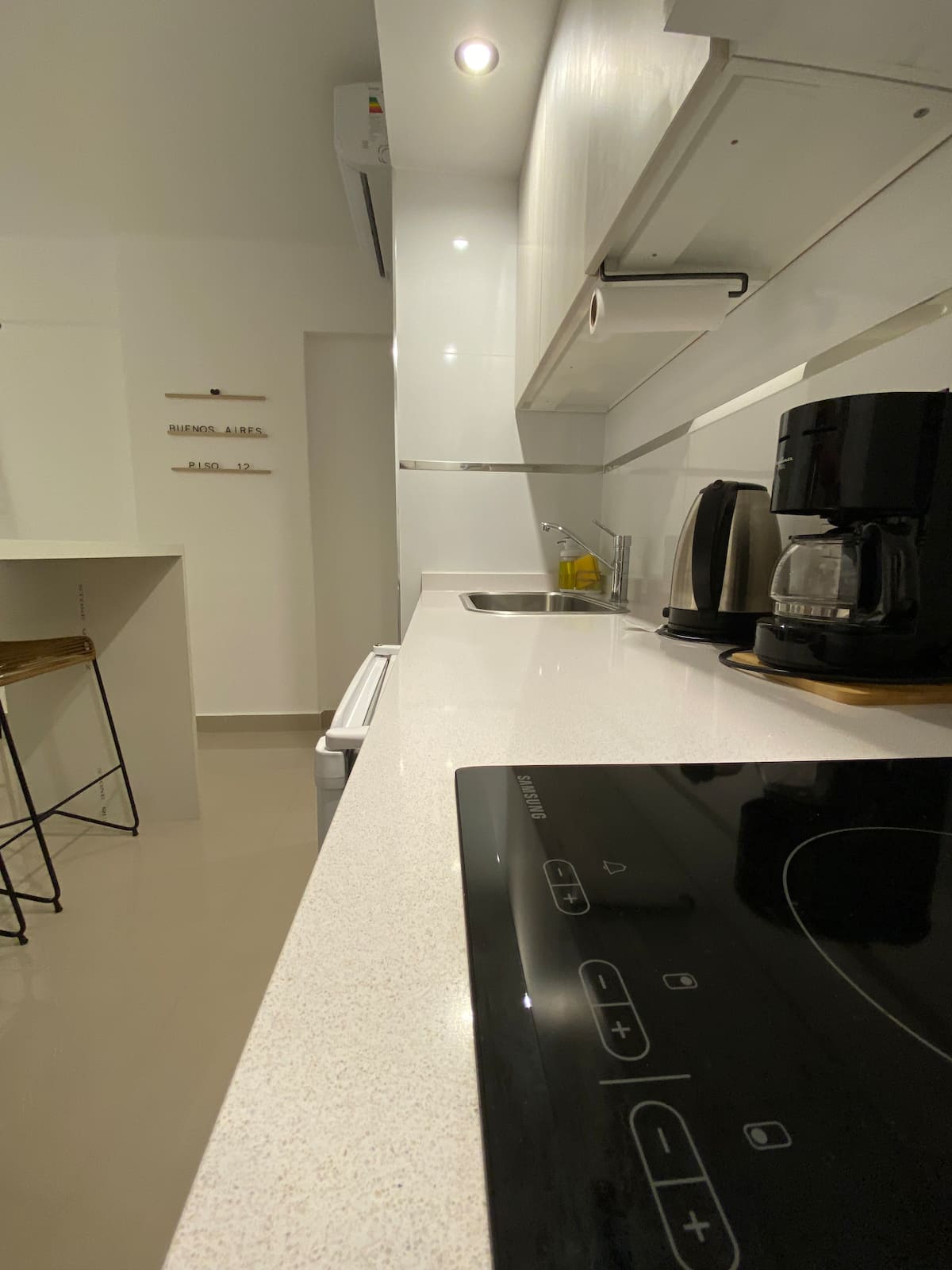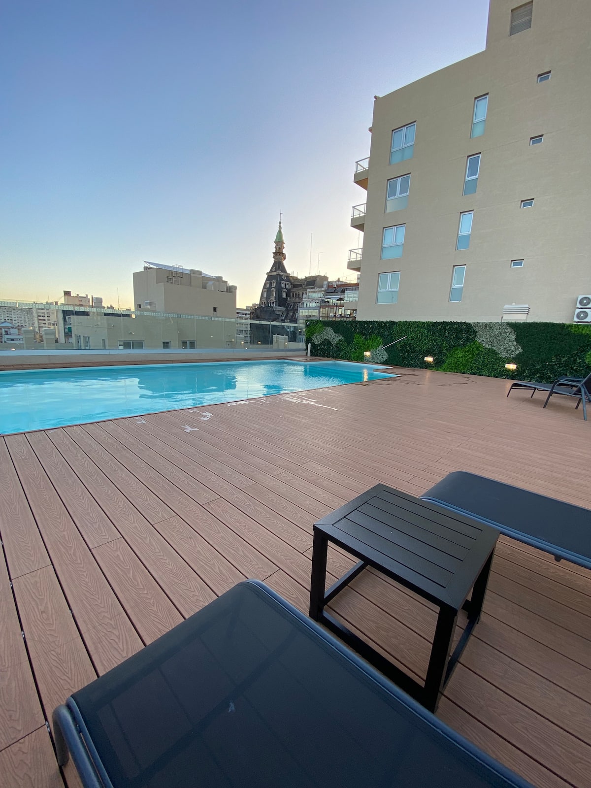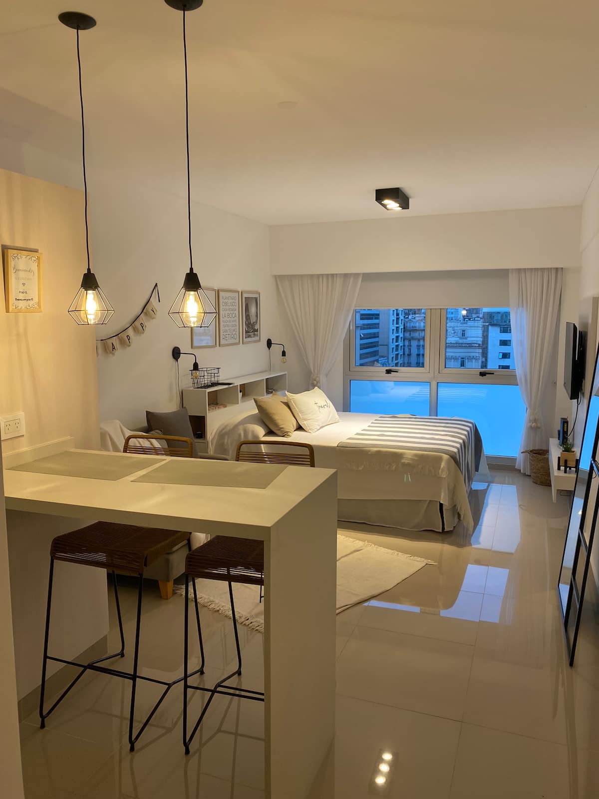 Studio apartment in a new building, furnished. The apartment faces the city with views of domes from its window. The building has a swimming pool on the terrace and a coworking space with Wi‑Fi, also on the rooftop.