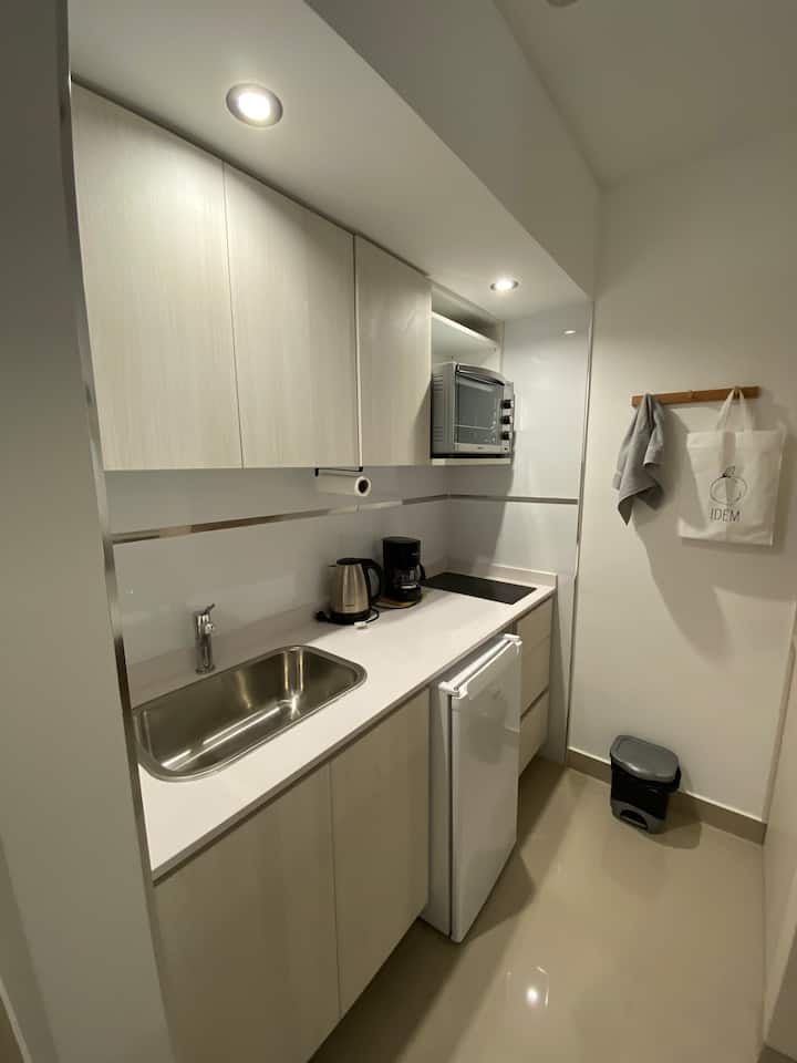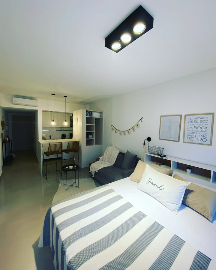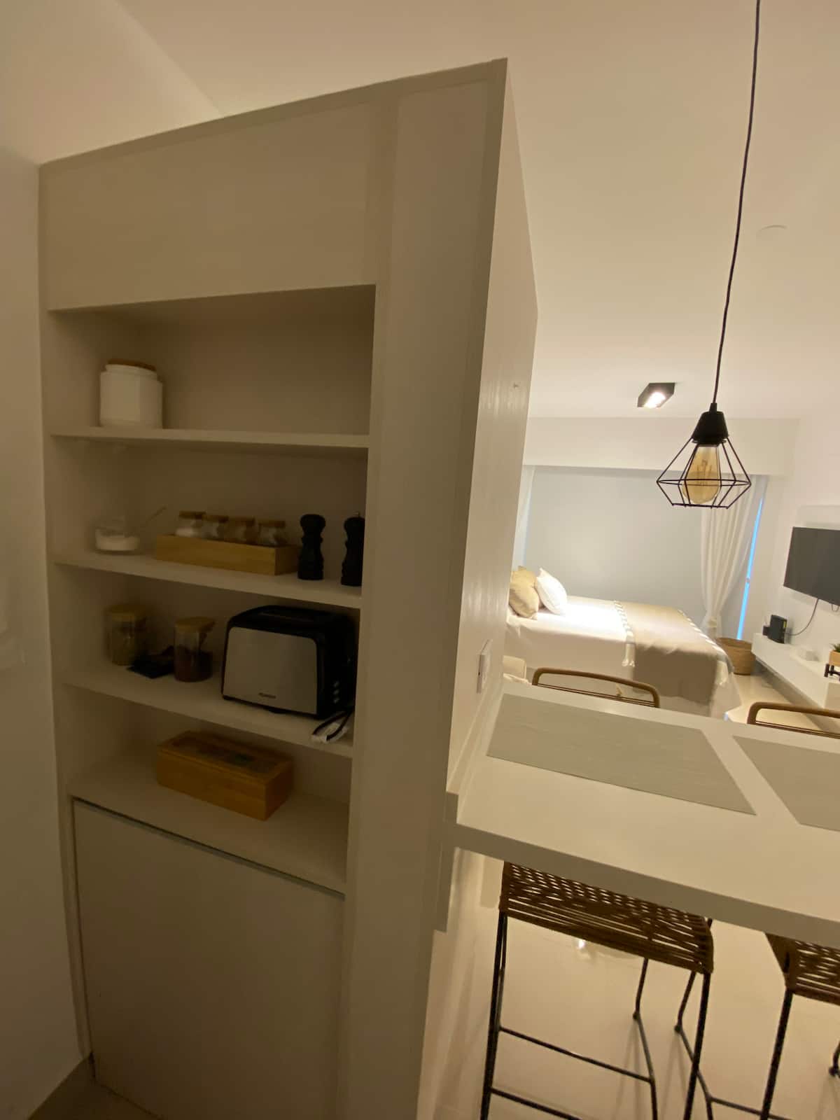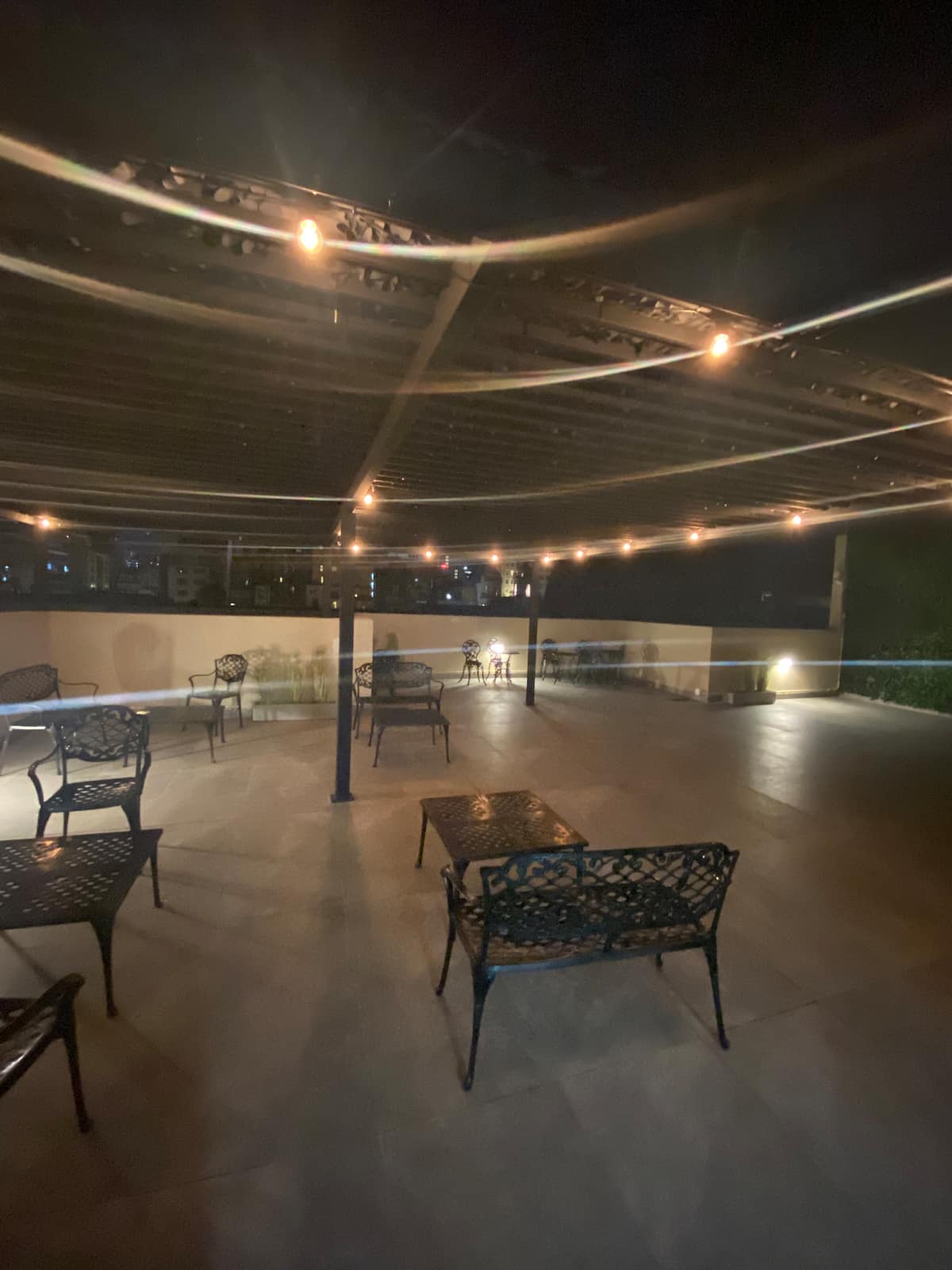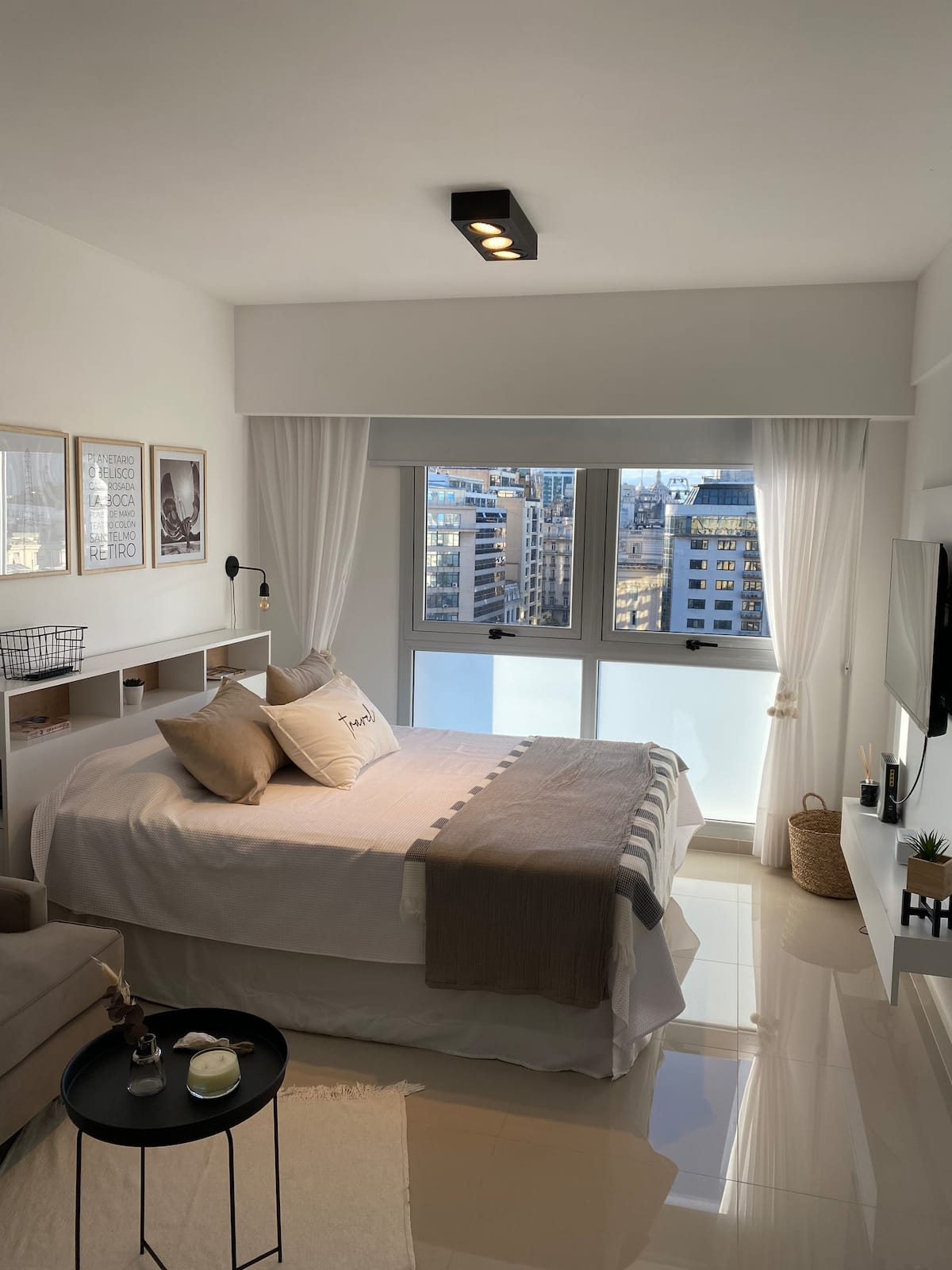 Studio apartment in a new building, furnished. The apartment faces the city with views of domes from its window. The building has a swimming pool on the terrace and a coworking space with Wi‑Fi, also on the rooftop.