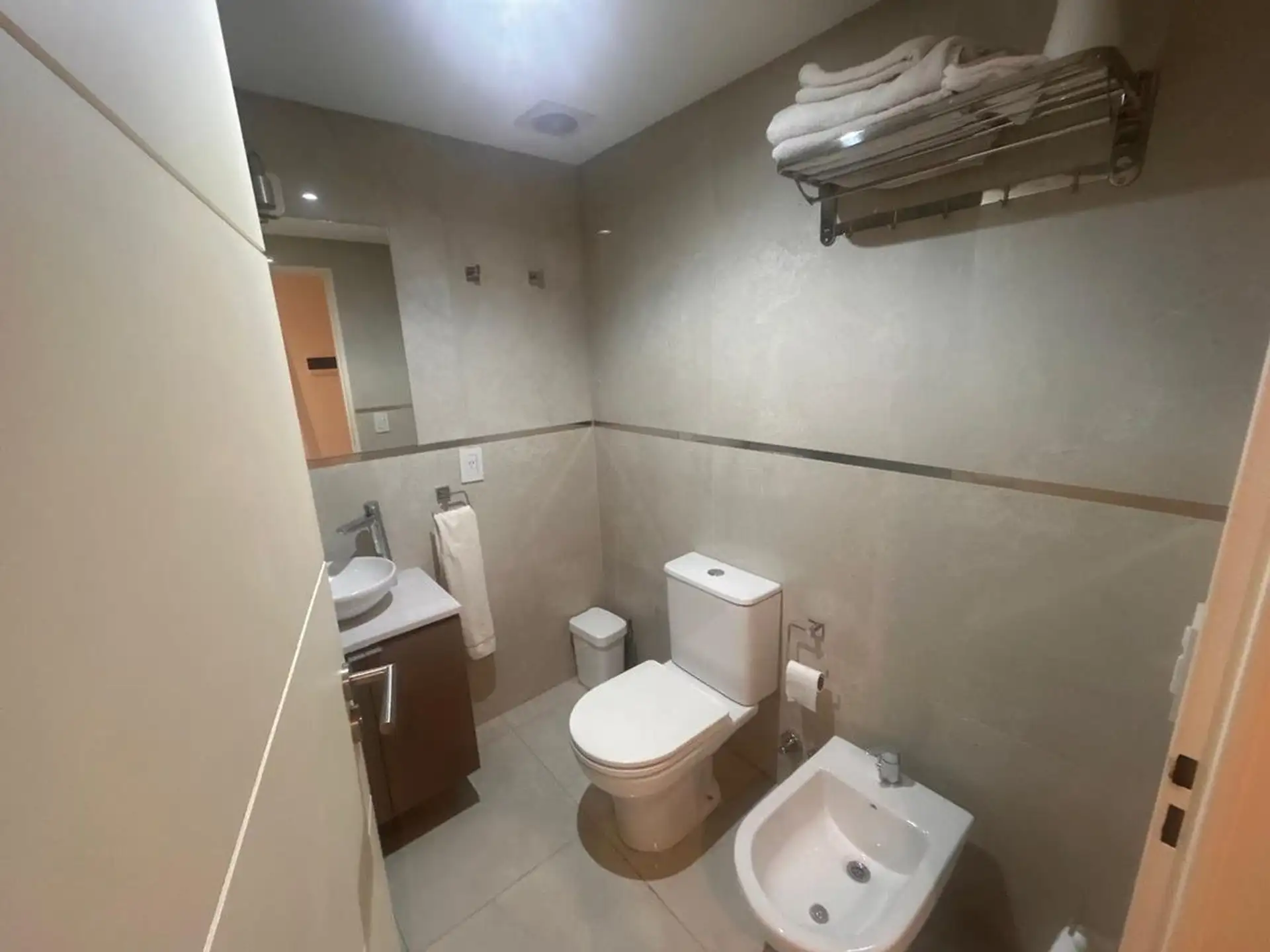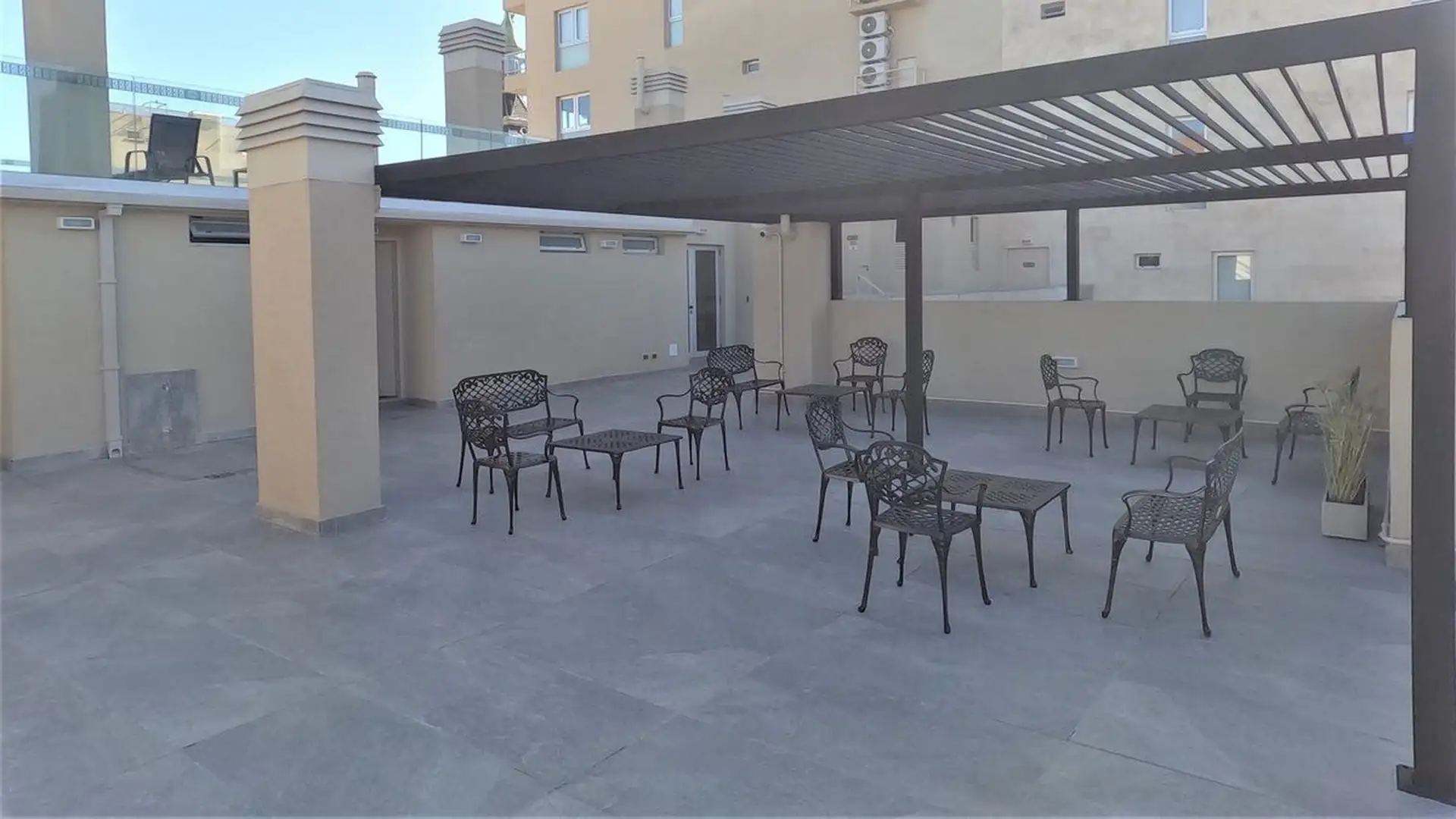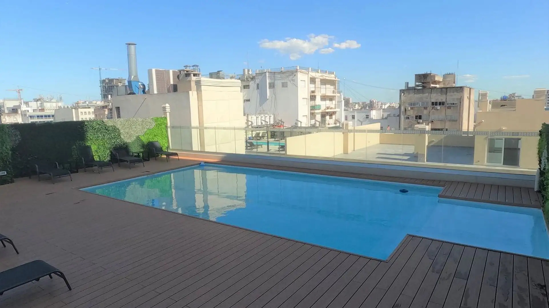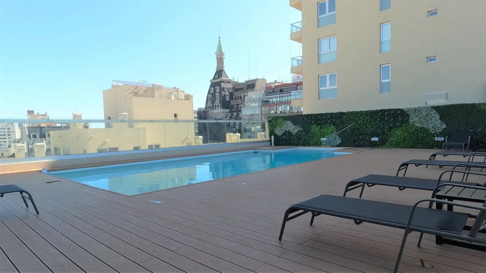 Furnished studio apartment in Monserrat, rented for a minimum of 6 months. The unit is on a high floor and includes a spacious balcony, a kitchen with overhead and base cabinets, and a full bathroom. The building provides a pool on the 9th floor with solarium, as well as laundry, a coworking space, and Wi-Fi in common areas, with a generator, security system, access control, and smart locks. Located a short distance from Av. 9 de Julio and Av. de Mayo.