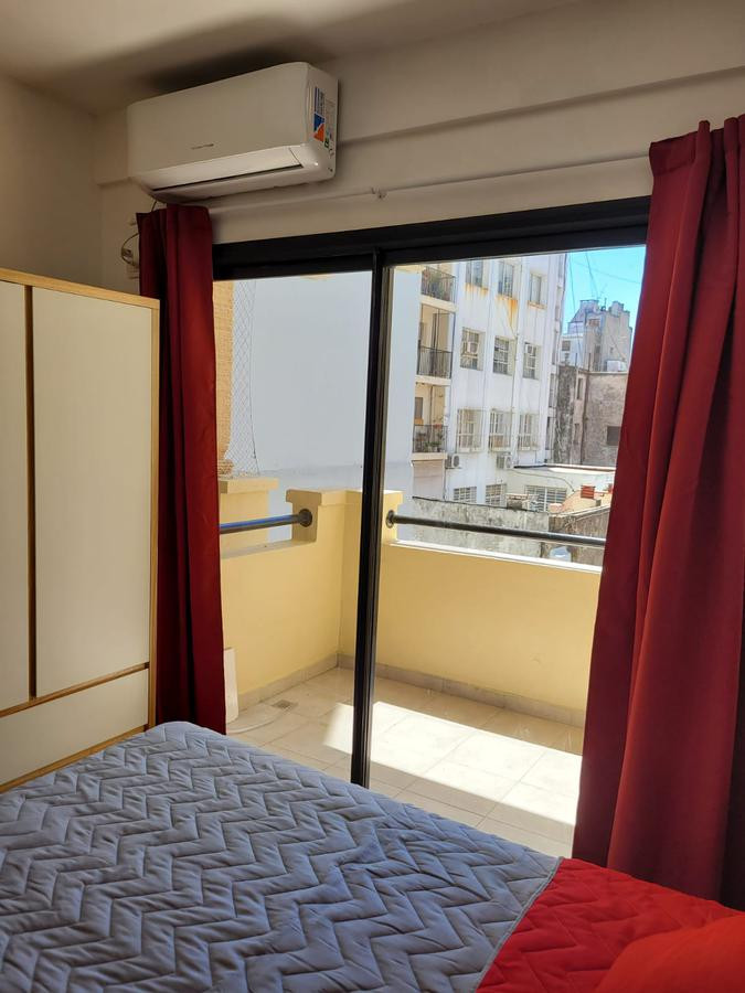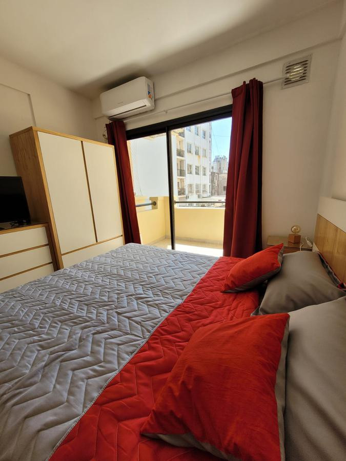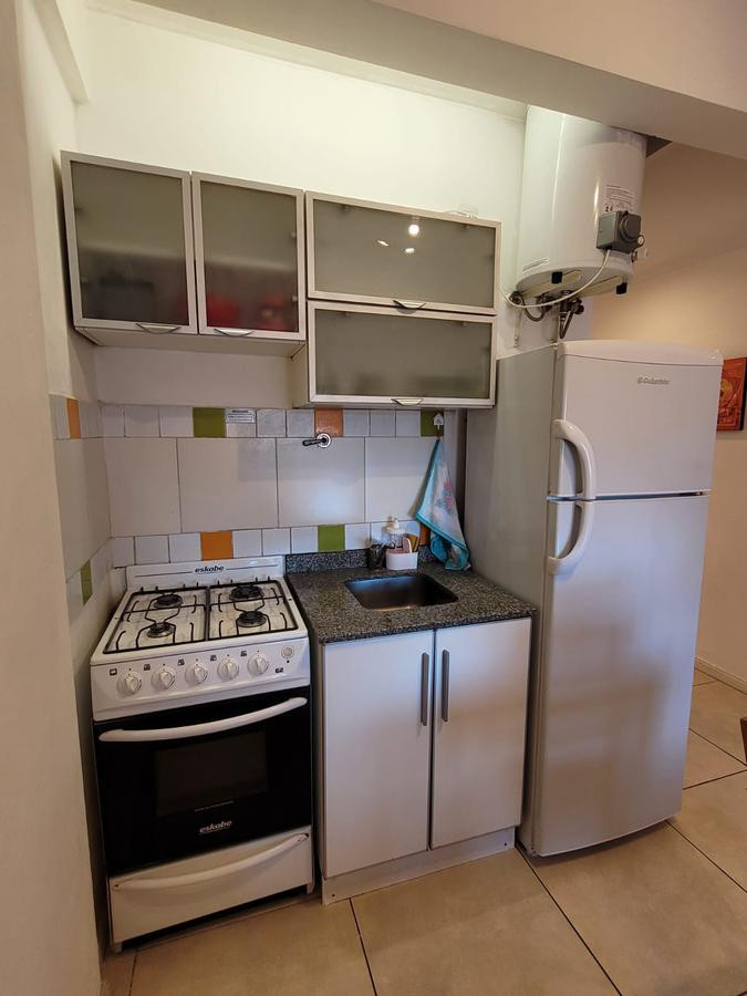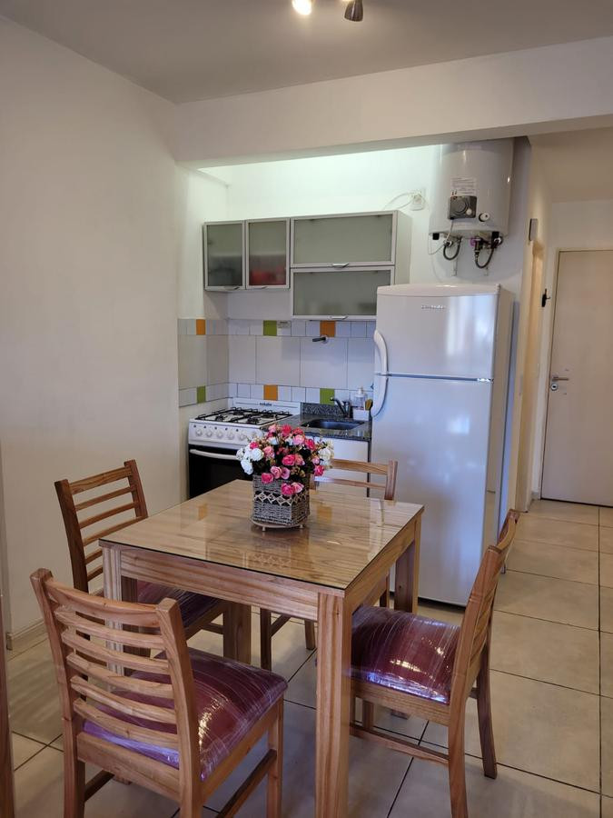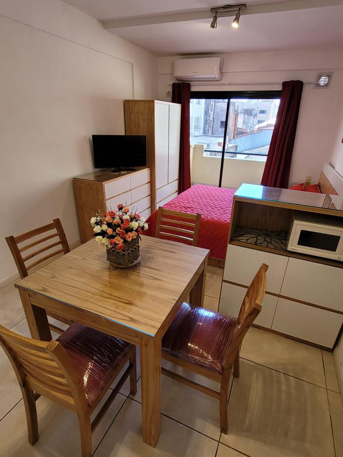 Brand new studio apartment in Monserrat for short stays, fully equipped for 2 people. It has open-plan layout with double-glazed windows facing an interior block courtyard, WiFi, fridge with freezer, microwave, and a gas stove with oven. Building is 5 years old with on-site security, laundry facilities, and a communal room and solarium.