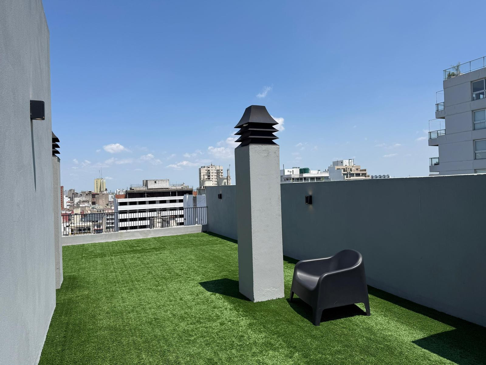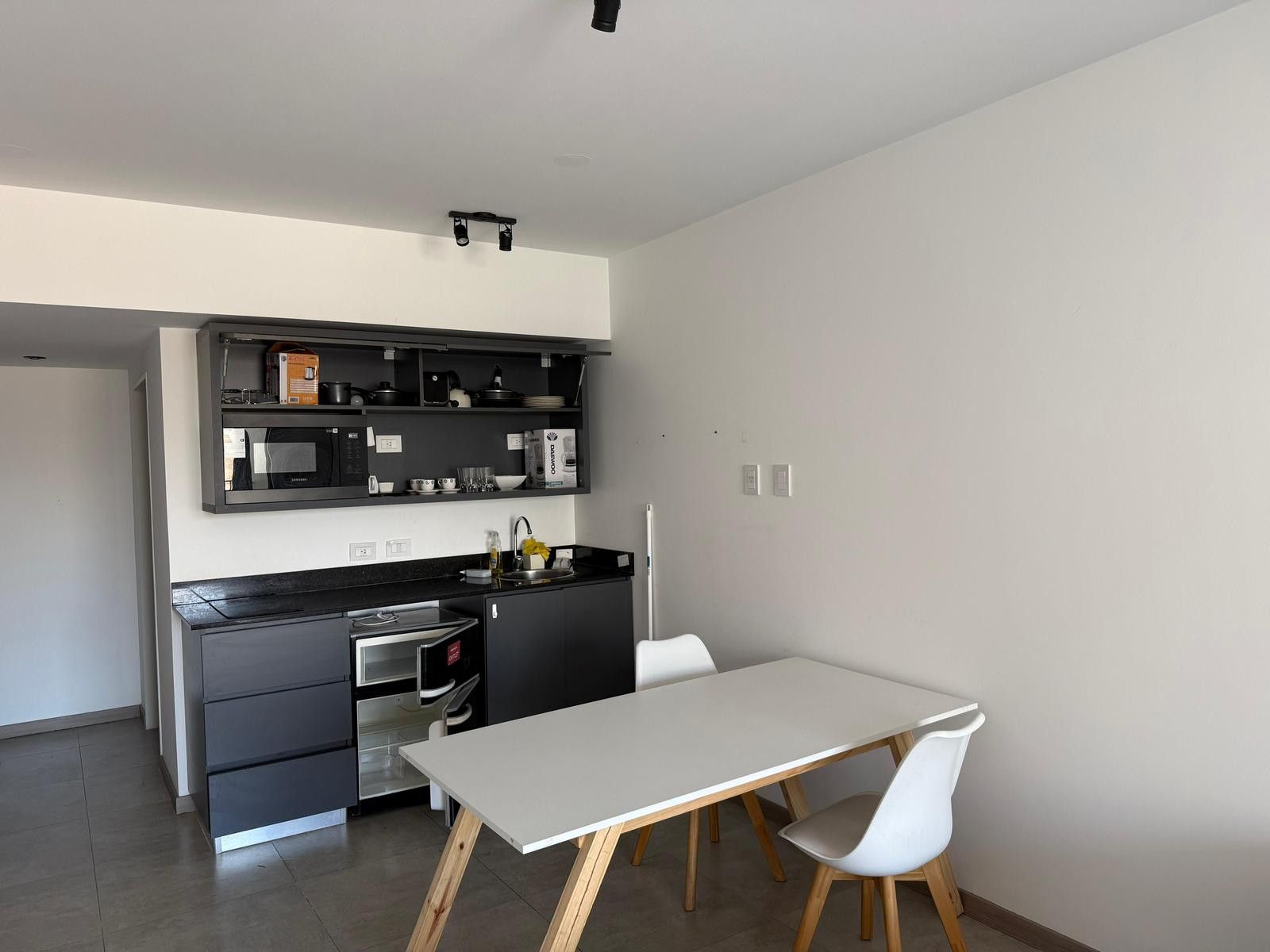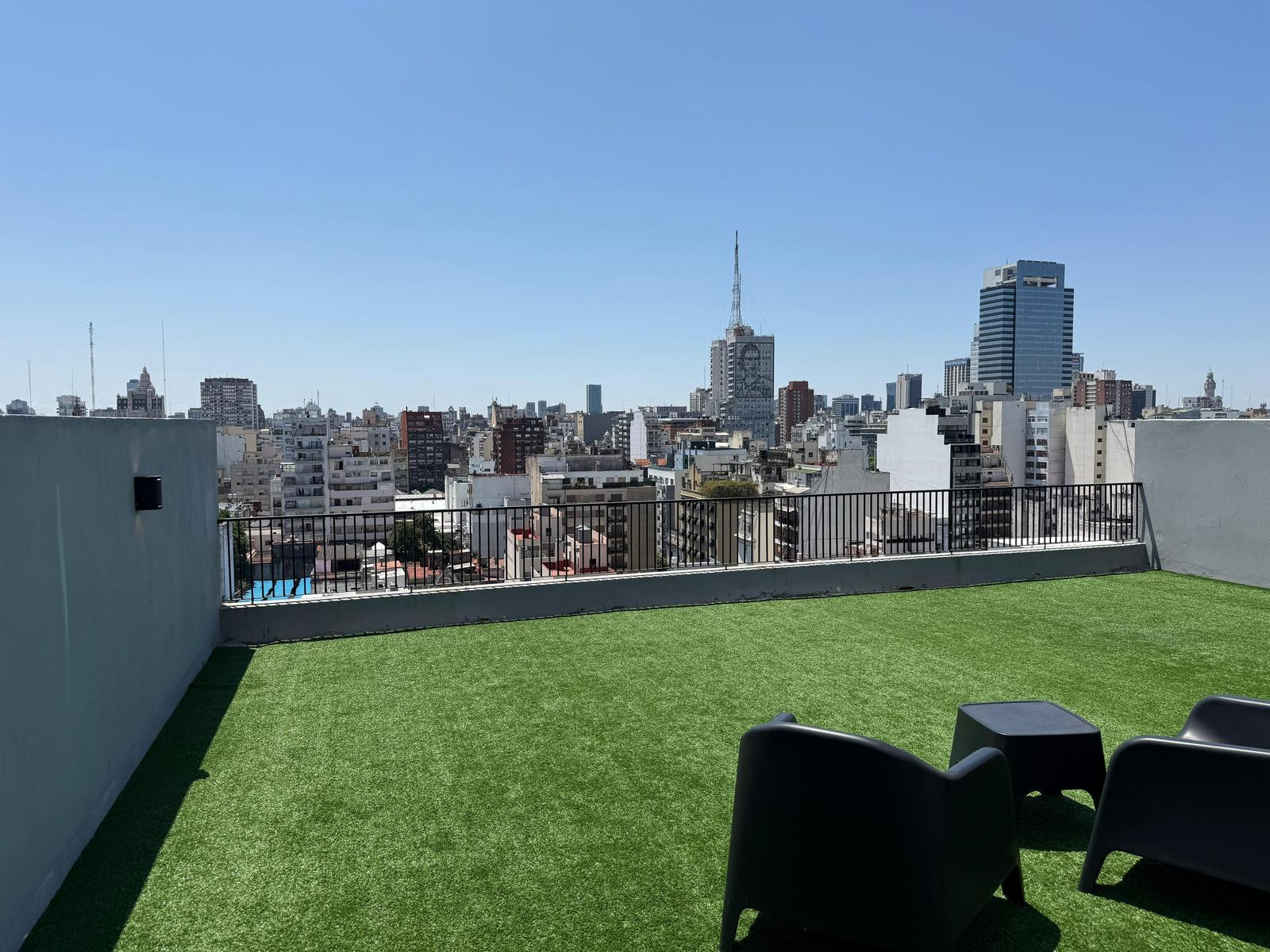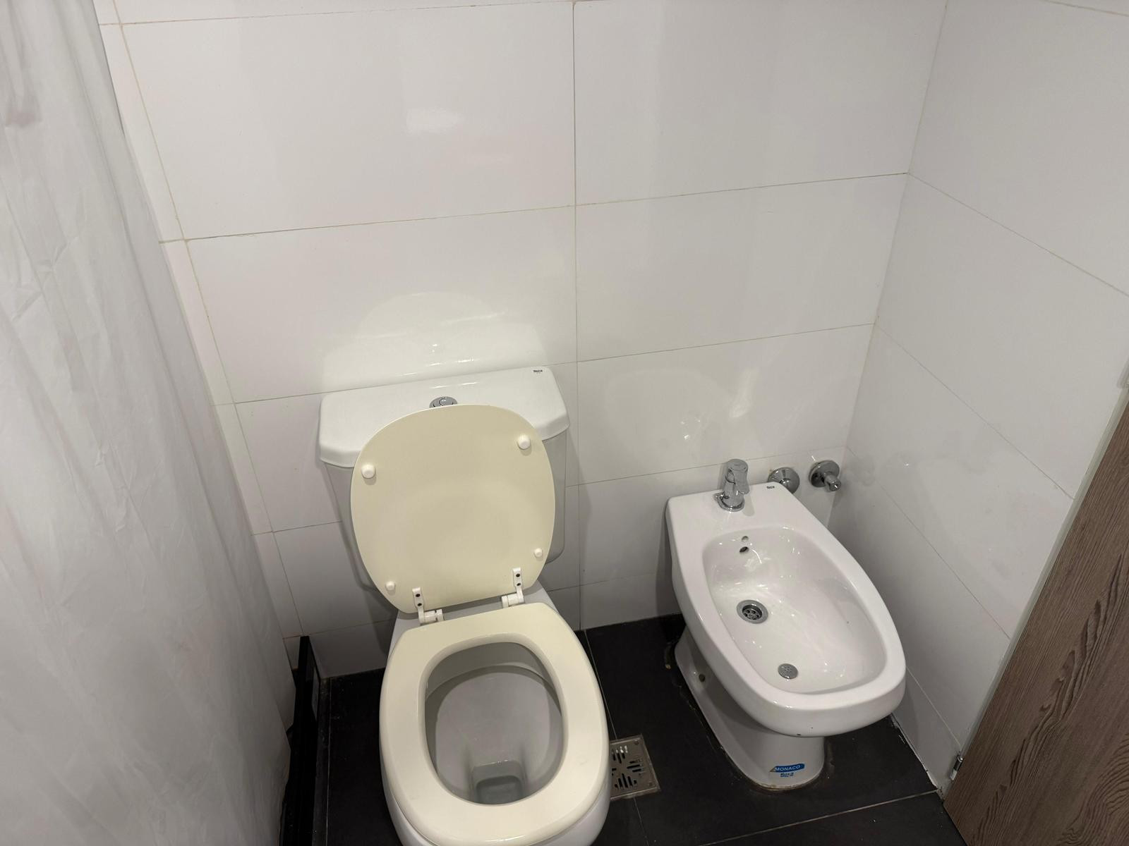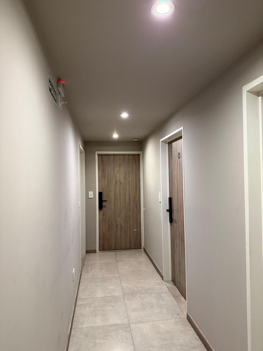 Temporary rental studio apartment of 37 m² total in Monserrat, with a balcony of 2.7 m². The unit includes a full bathroom and a fitted kitchen, plus a private storage room (baulera). The monthly rent is USD 550 plus building fees and taxes of approximately USD 250, and the building offers coworking, a terrace, green space and laundry, with electronic security 24 hours a day and reception from 9:00 to 17:00.