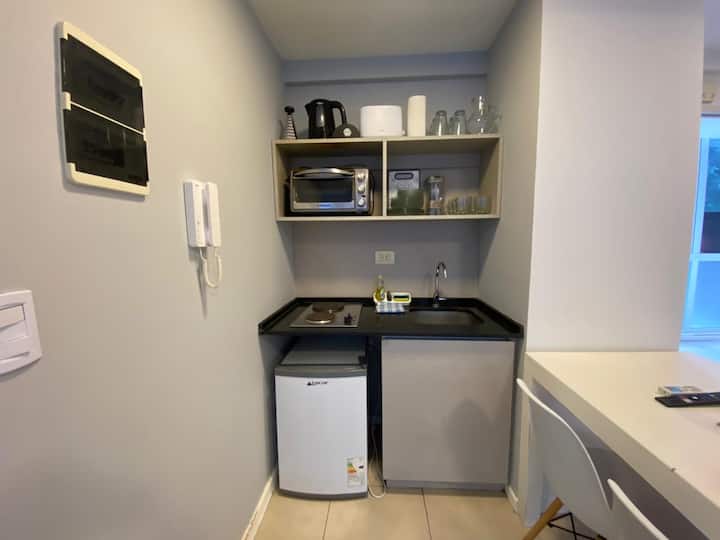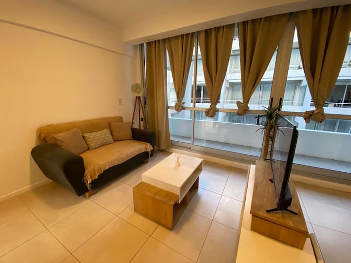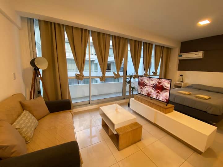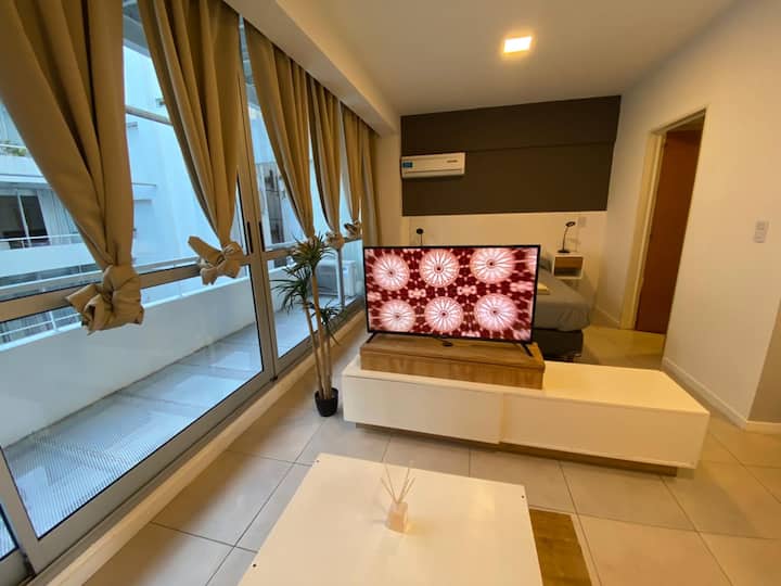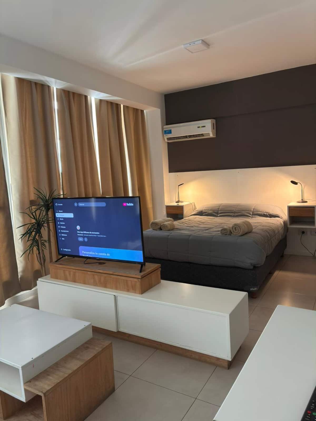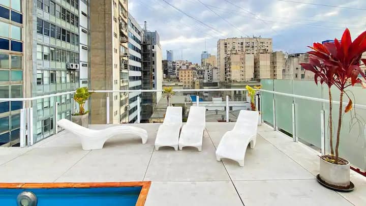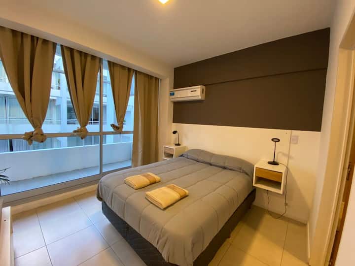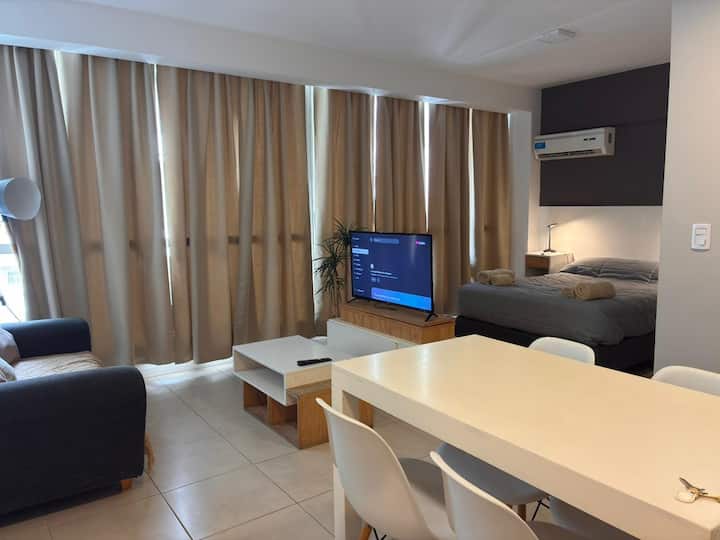 One-bedroom apartment on the 5th floor in the The Nomad BA Urban Lofts building, with a balcony. Furnished with a fully equipped kitchen, AC and towels and bed linen included. Building amenities include a pool and solarium on the terrace, coworking, controlled access, and high-speed WiFi.