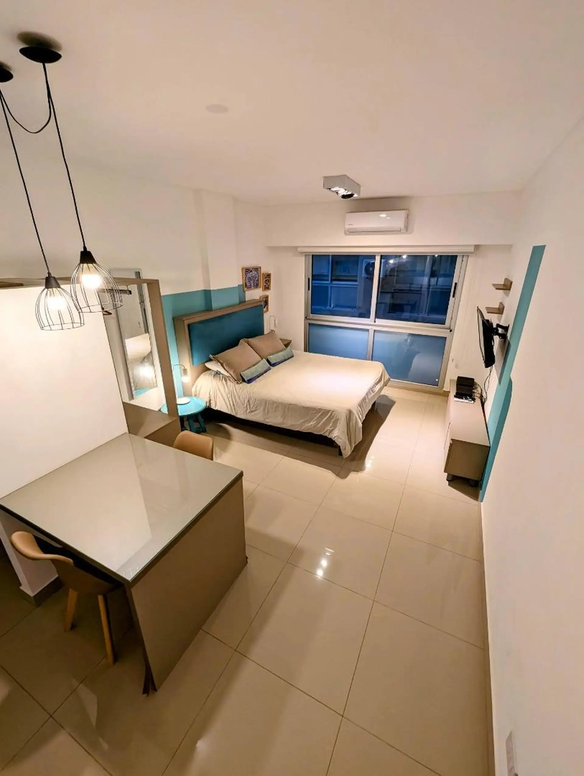 Temporarily rented studio apartment in a category building in Monserrat. Fully furnished and equipped, with a dining area, double bed, and large storage closets. Kitchen with an under-counter refrigerator and microwave, a full bathroom with a bathtub, air conditioning and heating, and TV. Building amenities include a terrace, pool, solarium, laundry, cafeteria, co-working space, electronic lock and 24-hour security. The rent includes ABL, AYSA, building fees and WiFi; the tenant pays electricity