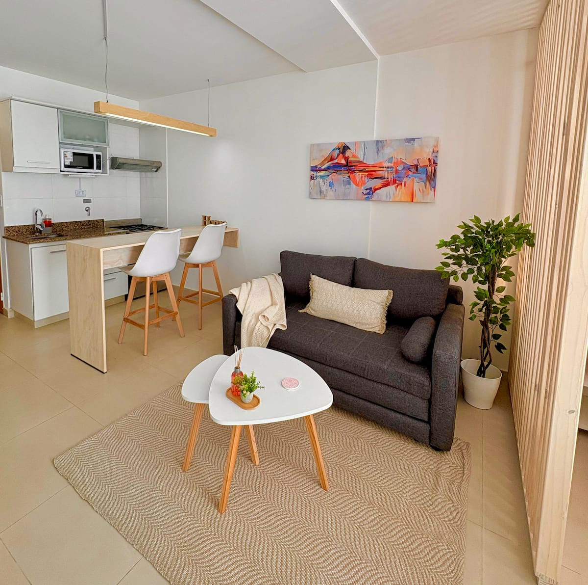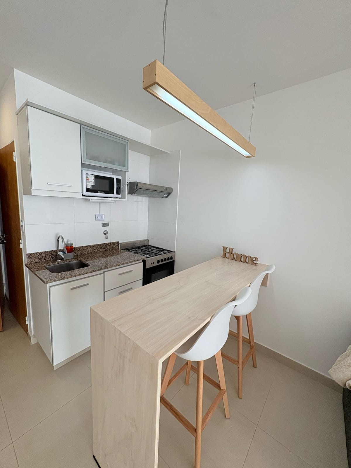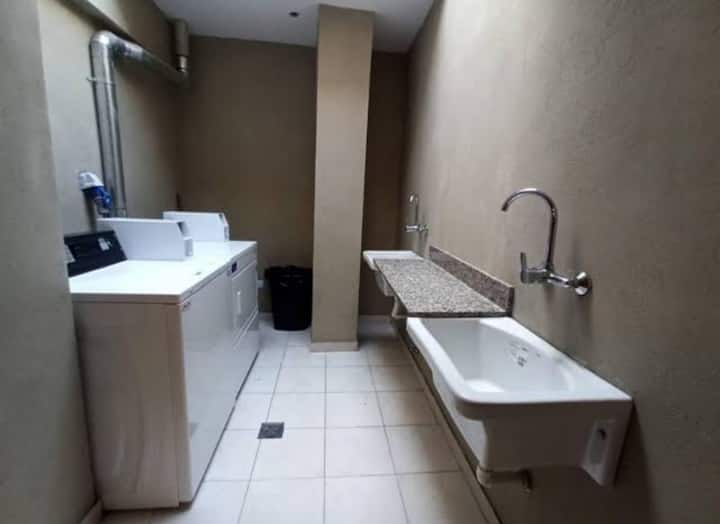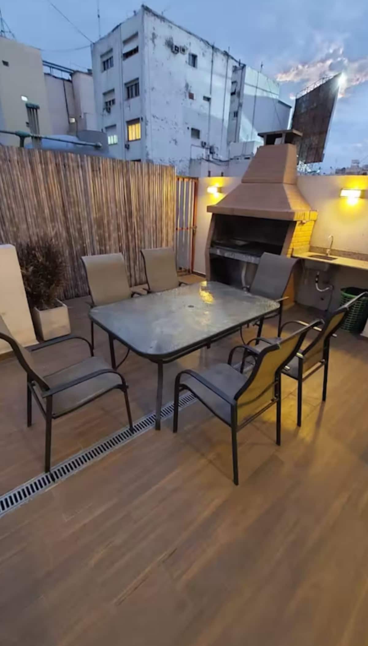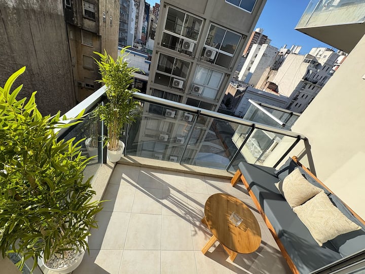 Studio apartment in Monserrat, 20 metres from Av. 9 de Julio. It is set on the seventh floor and includes a Queen XL bed (2 x 1.60 m), a kitchen for cooking, and a TV. The building has an outdoor area with tables and chairs, a grill, a pool, and a small gym, plus laundry with paid use.