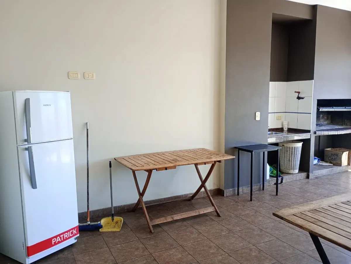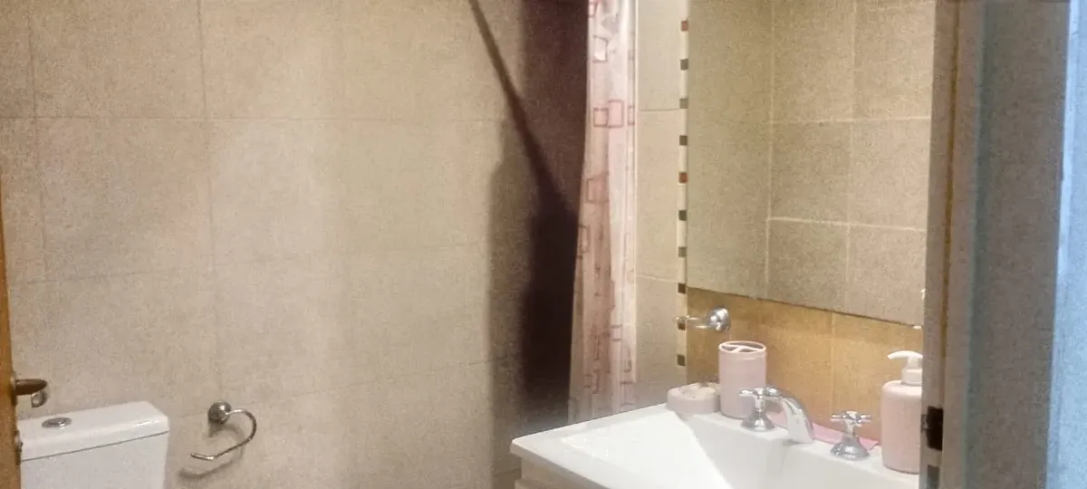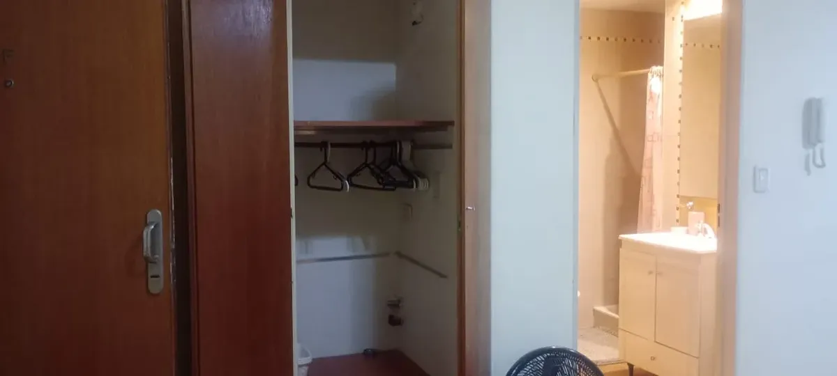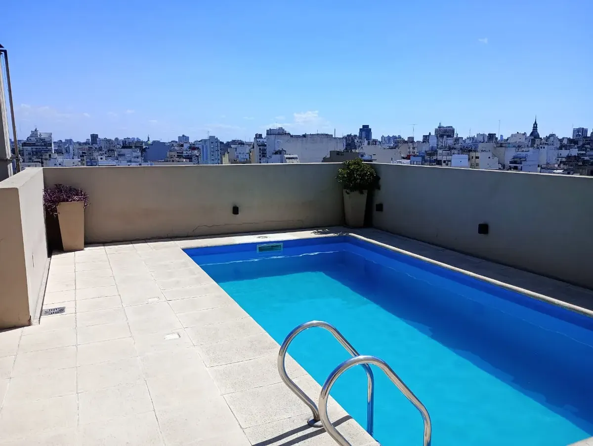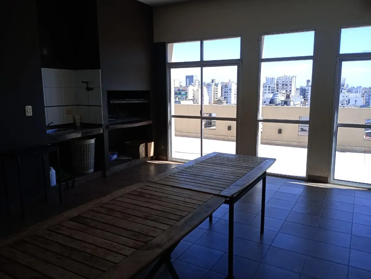 Studio apartment in Monserrat in a building with amenities. The main space combines the living, dining and sleeping area, with windows fitted with curtains. Separate kitchen equipped with an oven, microwave, storage cabinets and a hot-water tank; full bathroom and built-in closet. Building facilities include a residents’ lounge (SUM) with a covered grill area, a laundry area with a washing machine and dryer, and an uncovered pool with a solarium on the terrace.