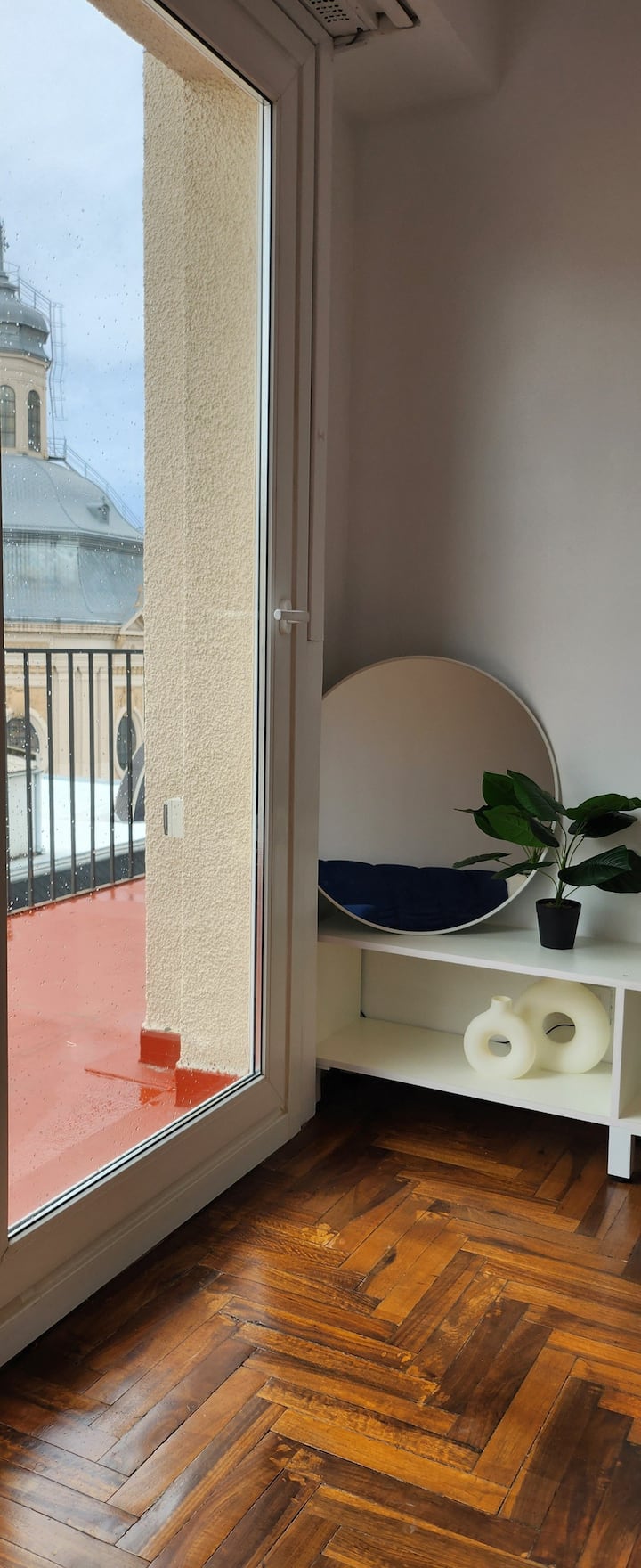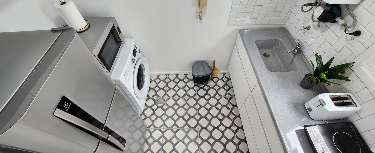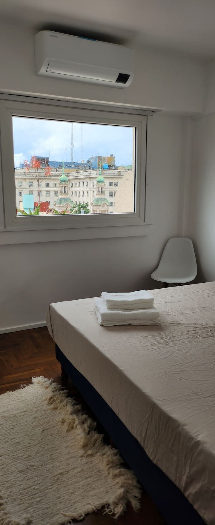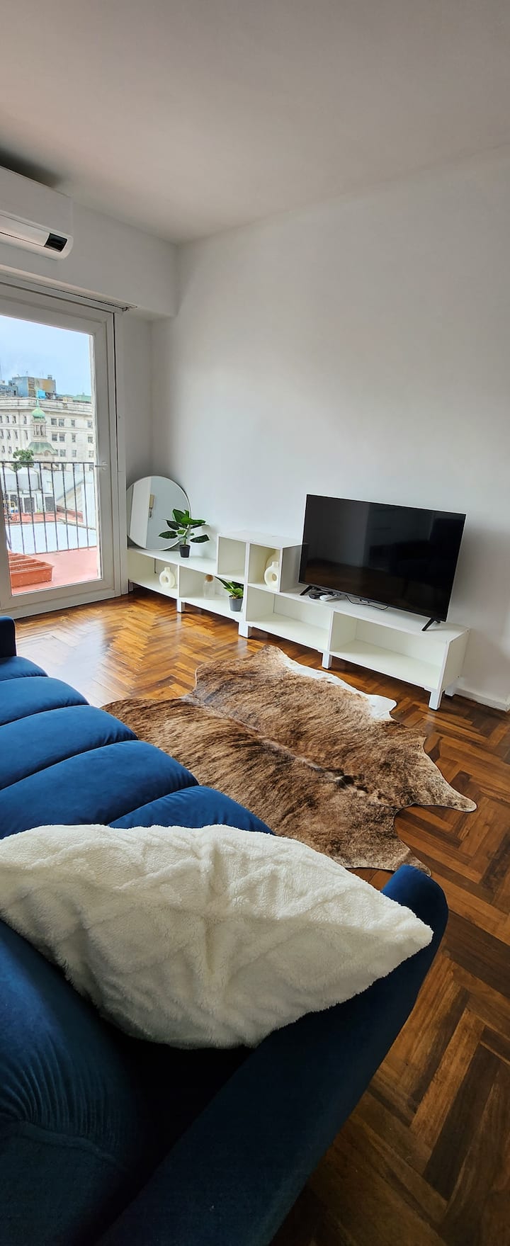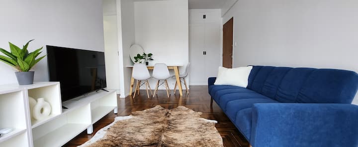 One-bedroom apartment with a living room and kitchen, with a spacious terrace. Located on the 10th floor, it is quiet and has PVC windows. Includes a fridge, microwave, toaster, kettle, Smart TV and WiFi, plus new Samsung air conditioning with heating and cooling. Two blocks from Plaza de Mayo in Monserrat.