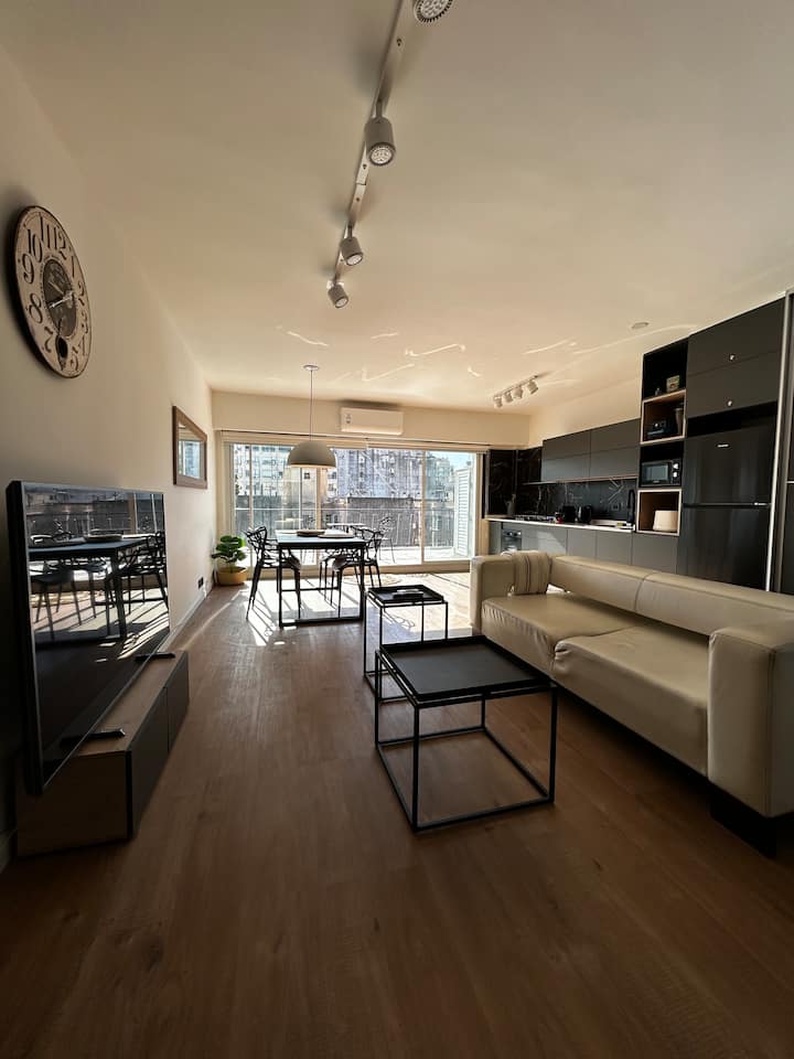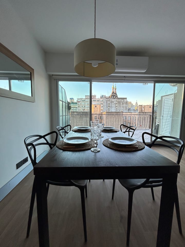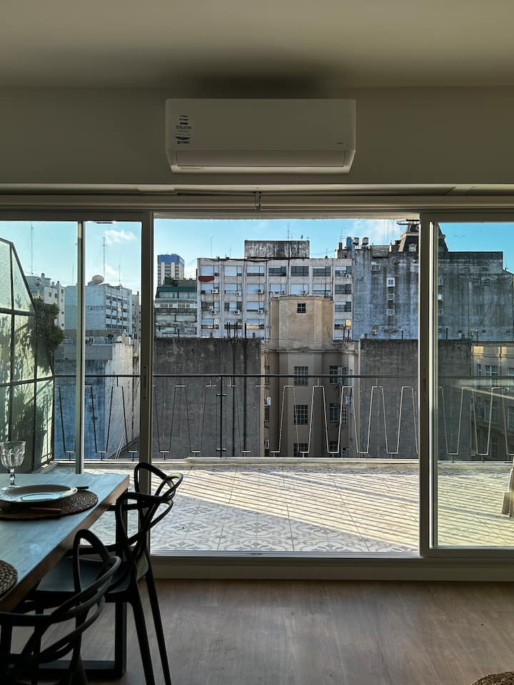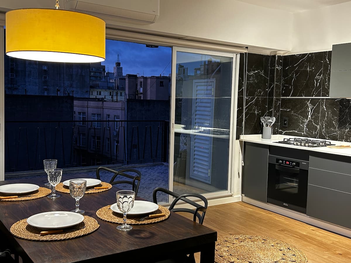 Apartment of 65 m² on the 9th floor in Monserrat, with views and a 15 m² balcony terrace. Equipped with air conditioning and includes a Nespresso coffee machine. Kitchen appliances include a microwave, oven, toaster, refrigerator, electric kettle and blender. Also included are a queen bed, bed linen and toiletries, paid street parking, 400 megabyte fibre-optic Wi-Fi, and a 65-inch TV with Netflix. Smoking is allowed only on the balcony.