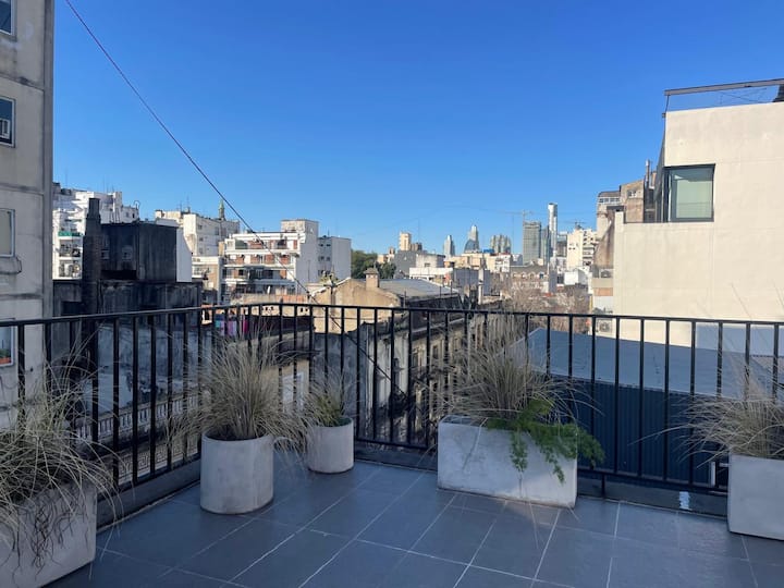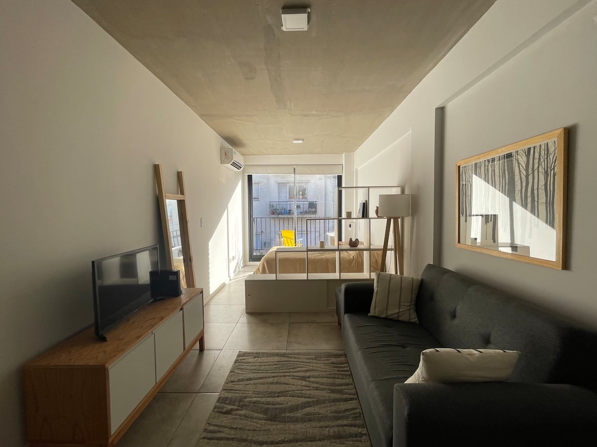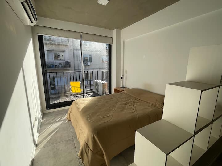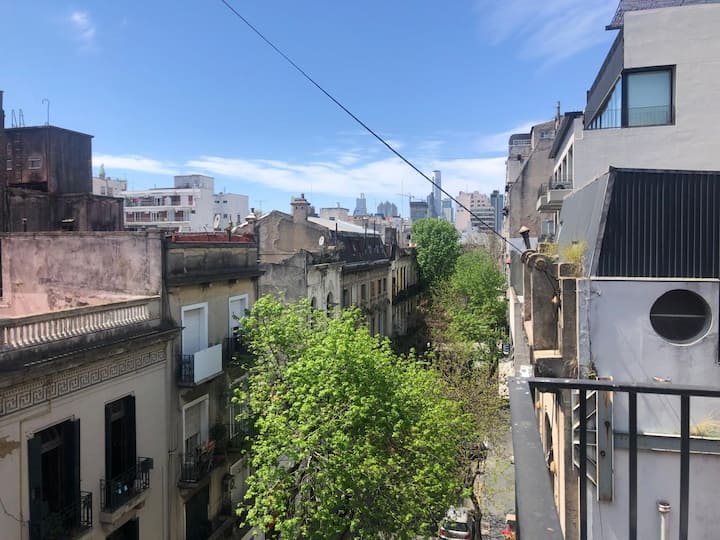 Studio apartment with a balcony offering views of Av. 9 de Julio. The unit includes night bars, art galleries and street murals in the surrounding area. In a central location in Monserrat, with shopping nearby including Mercado de San Telmo, the San Telmo fair and Plaza Dorrego.