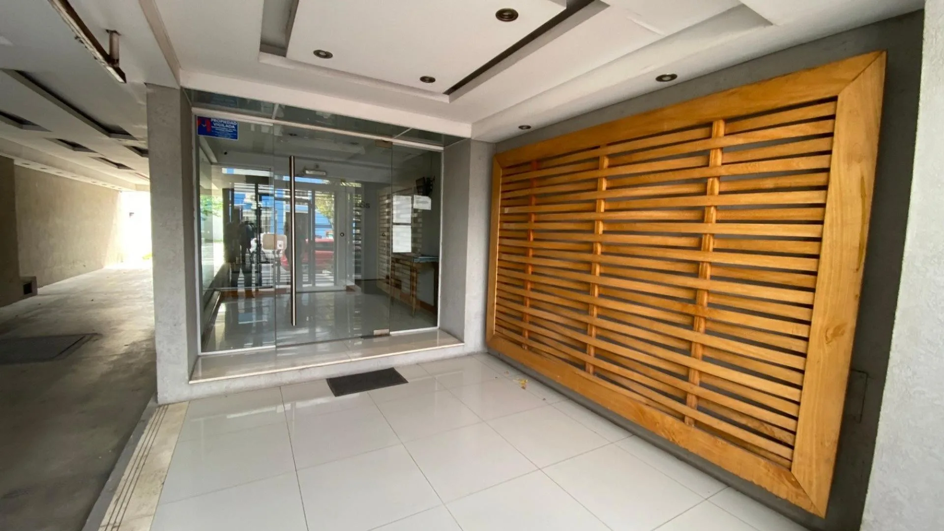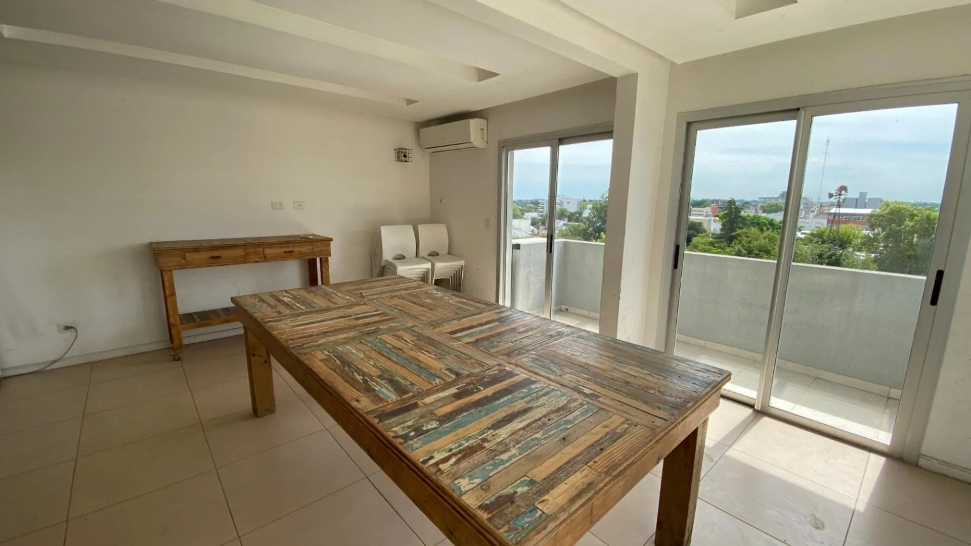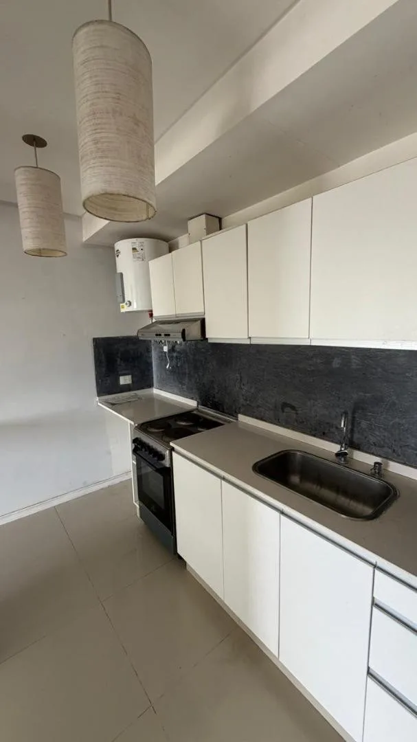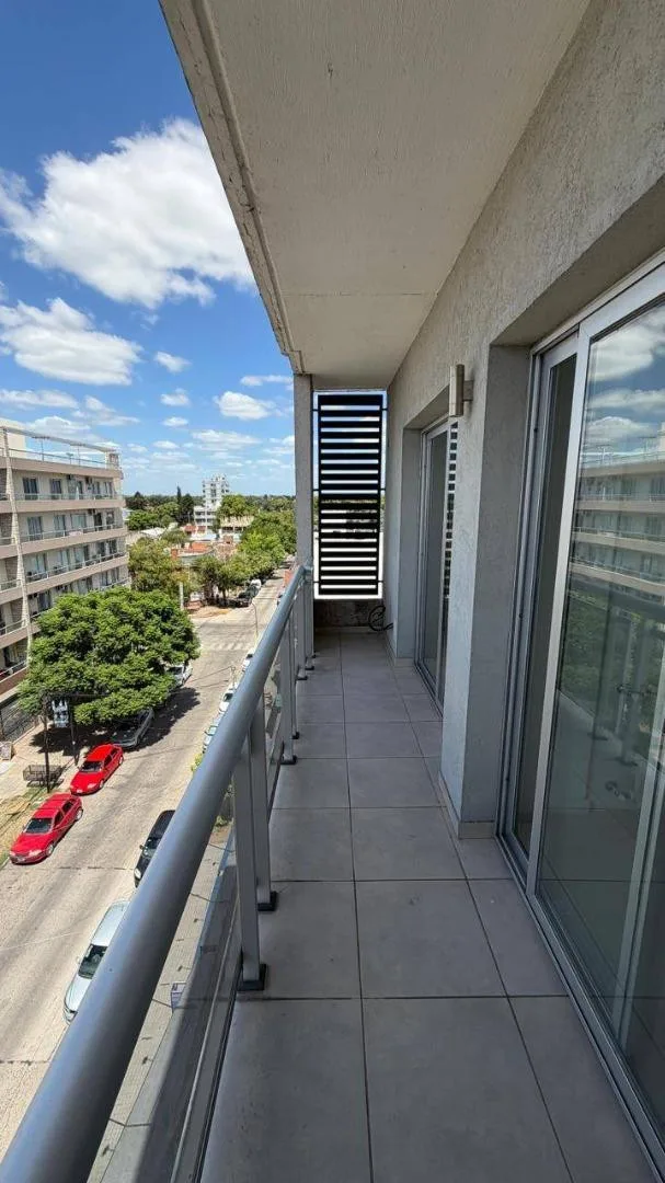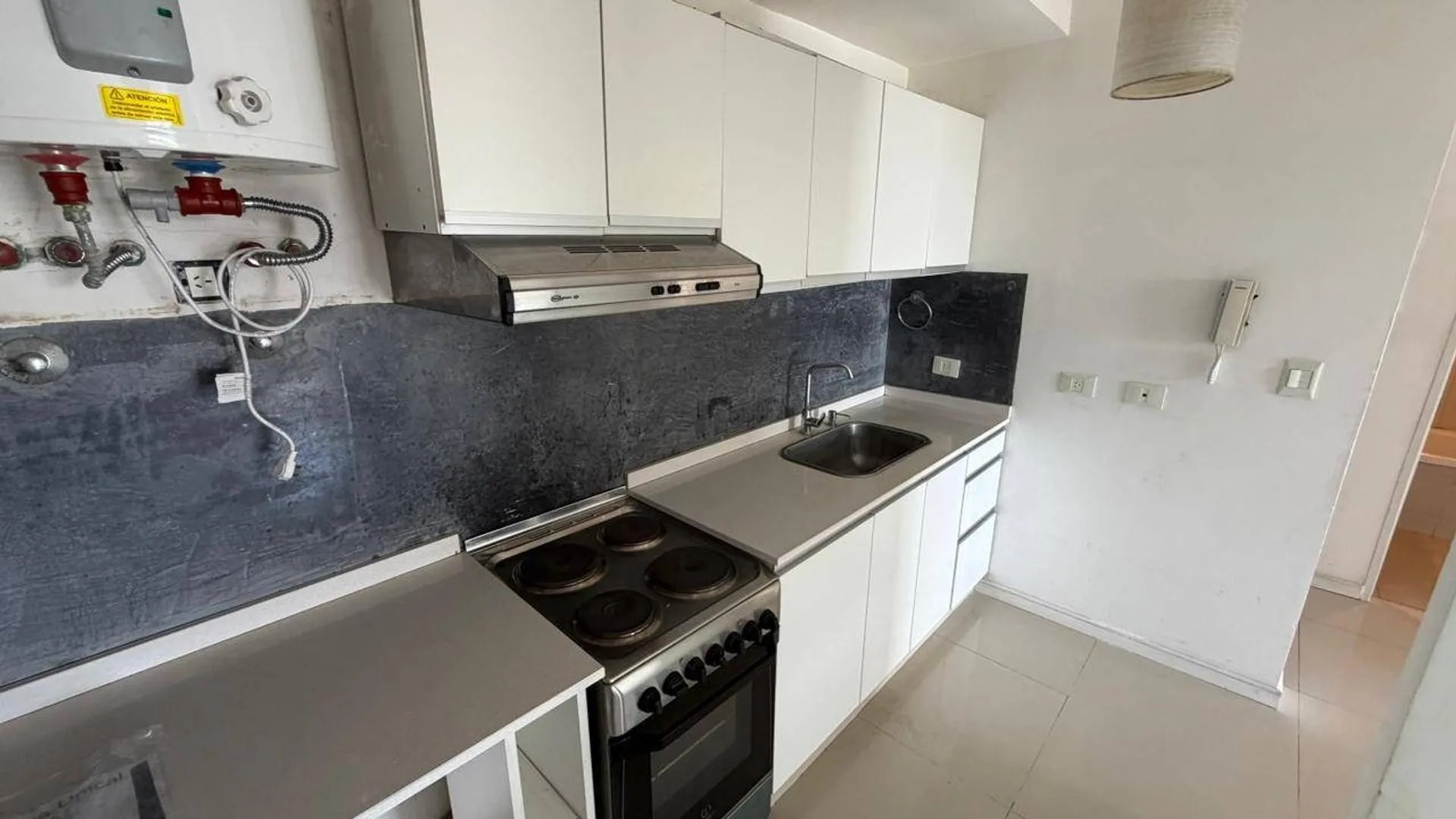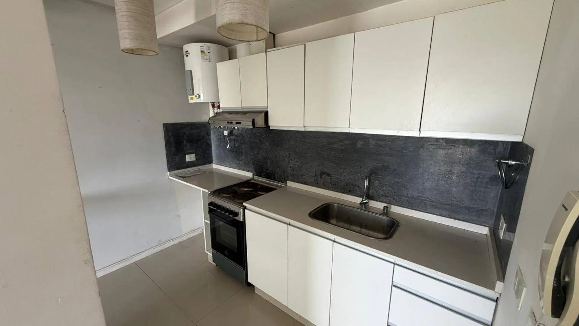 Two-room studio apartment for rent in Moreno centre on the 5th floor, street-facing, with a front balcony. Kitchen-dining room with breakfast bar, full bathroom, and bedroom with fitted wardrobe; laundry connection available. Building amenities include residents’ SUM with grill and bathroom, solarium, and a pool; pets are not accepted.