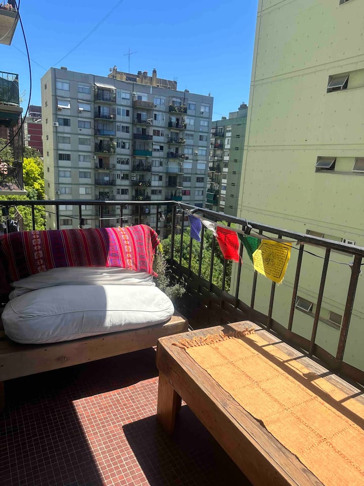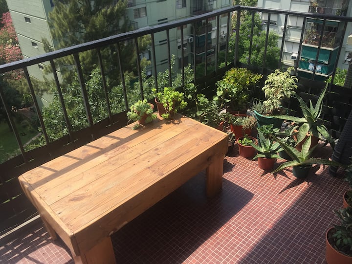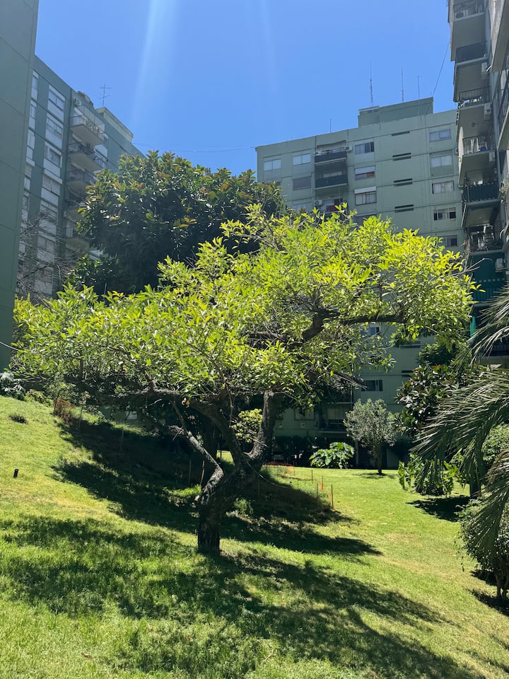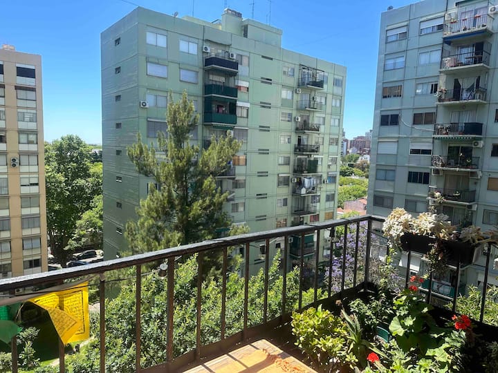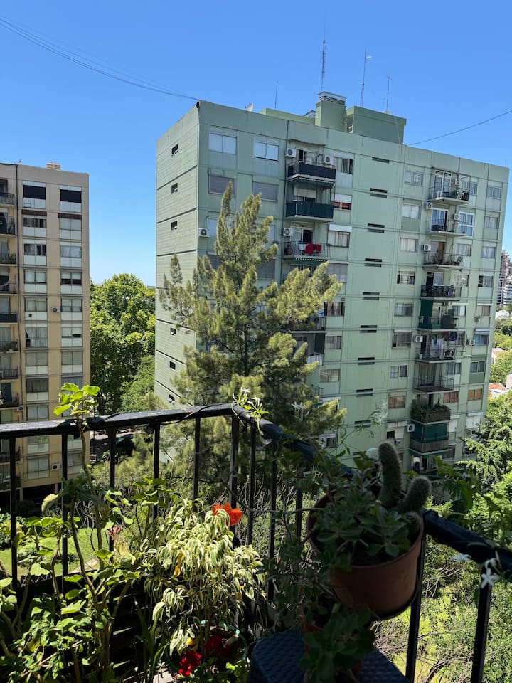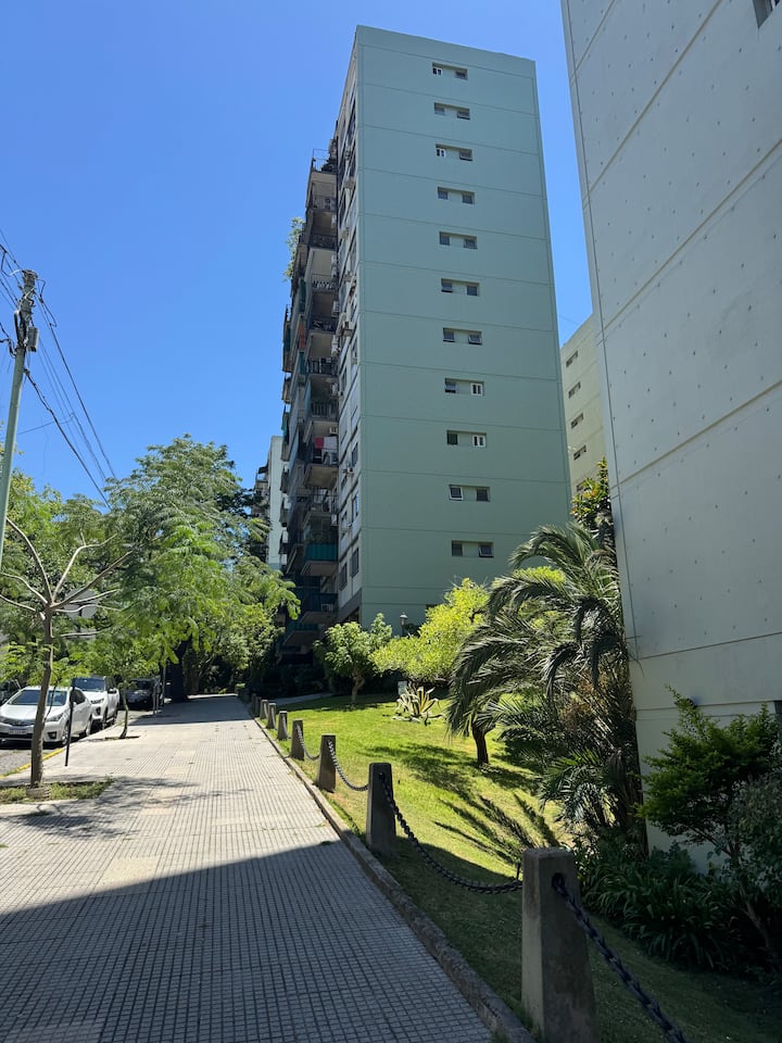 Two-room apartment in Núñez with a river view. It is in a residential area described as wooded, with a quiet setting. The location is three blocks from Av. Cabildo and three blocks from Avenida Libertador. Linen service is available.