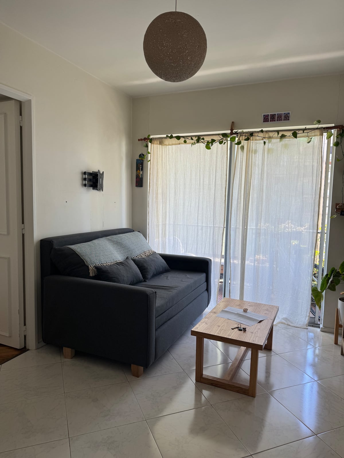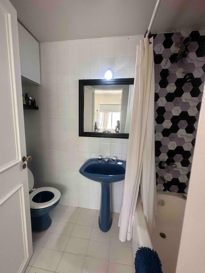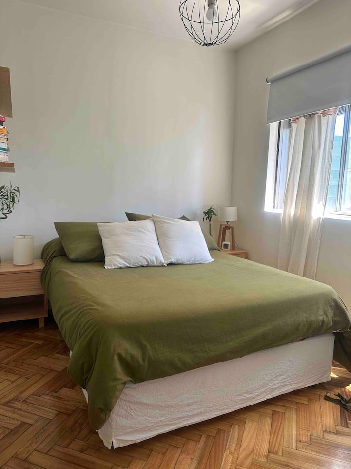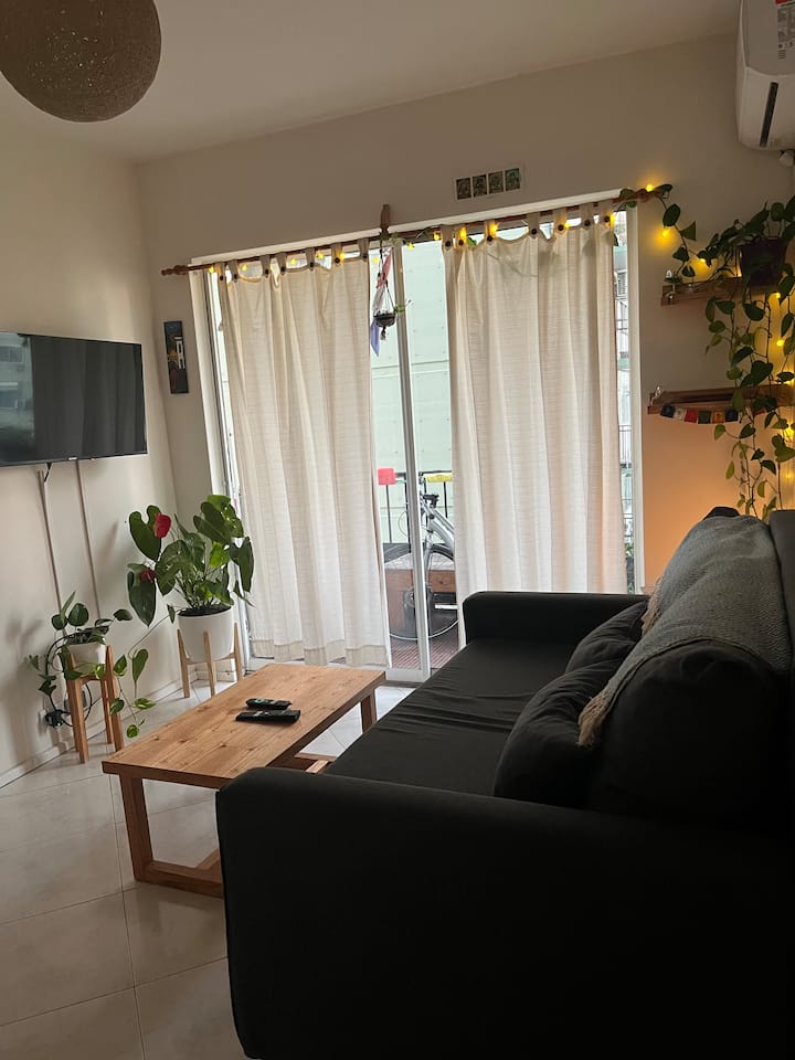 Two-room apartment in Núñez with a river view. It is in a residential area described as wooded, with a quiet setting. The location is three blocks from Av. Cabildo and three blocks from Avenida Libertador. Linen service is available.