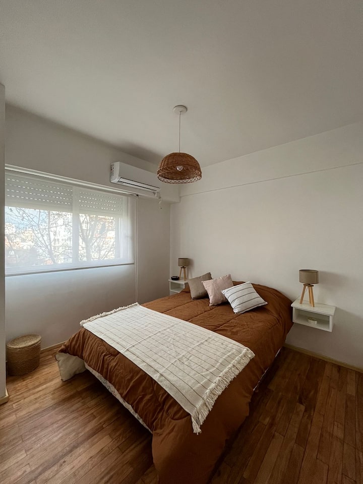 One-bedroom apartment in Núñez, described as quiet. 400 metres from Av. Cabildo and 1 km from Línea D, estación Congreso de Tucumán. Bus lines 130, 29, and 151 provide nearby connections.