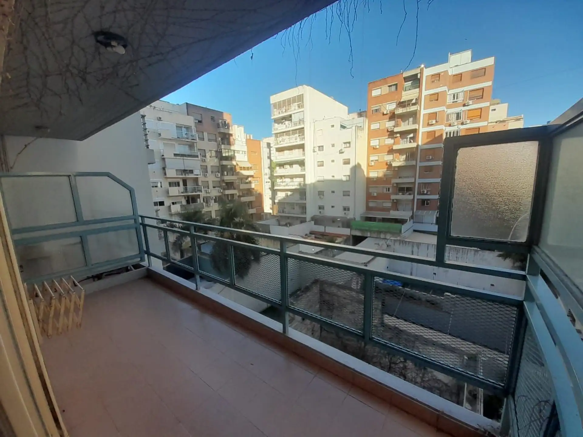 Studio apartment with 1 room in Belgrano, 1 bathroom, with a balcony that faces the interior block courtyard. Ceramic floors, integrated kitchen, and an electric hot-water system (termotanque). Windows with blinds and a glazed door with blinds provide access to the balcony. The building includes a bicycle storage area. Rental agreement is for 24 months, with quarterly increases linked to IPC.