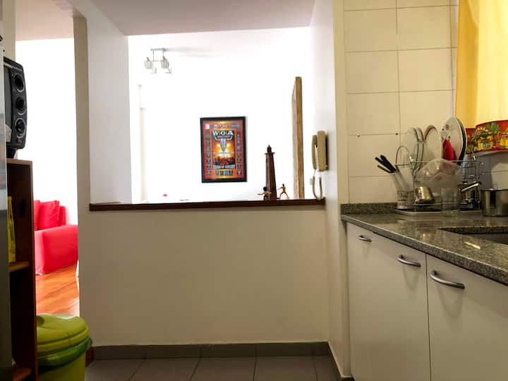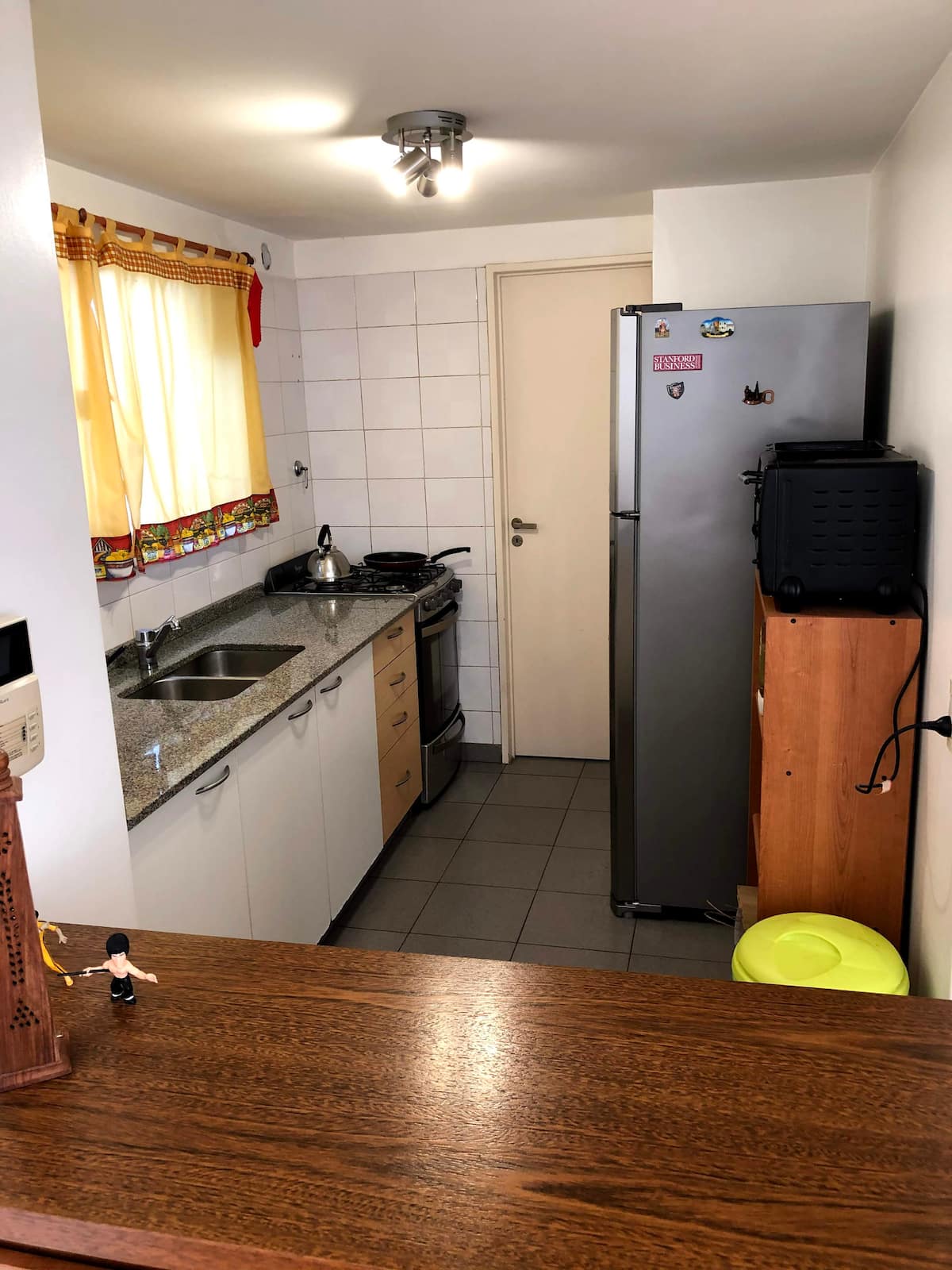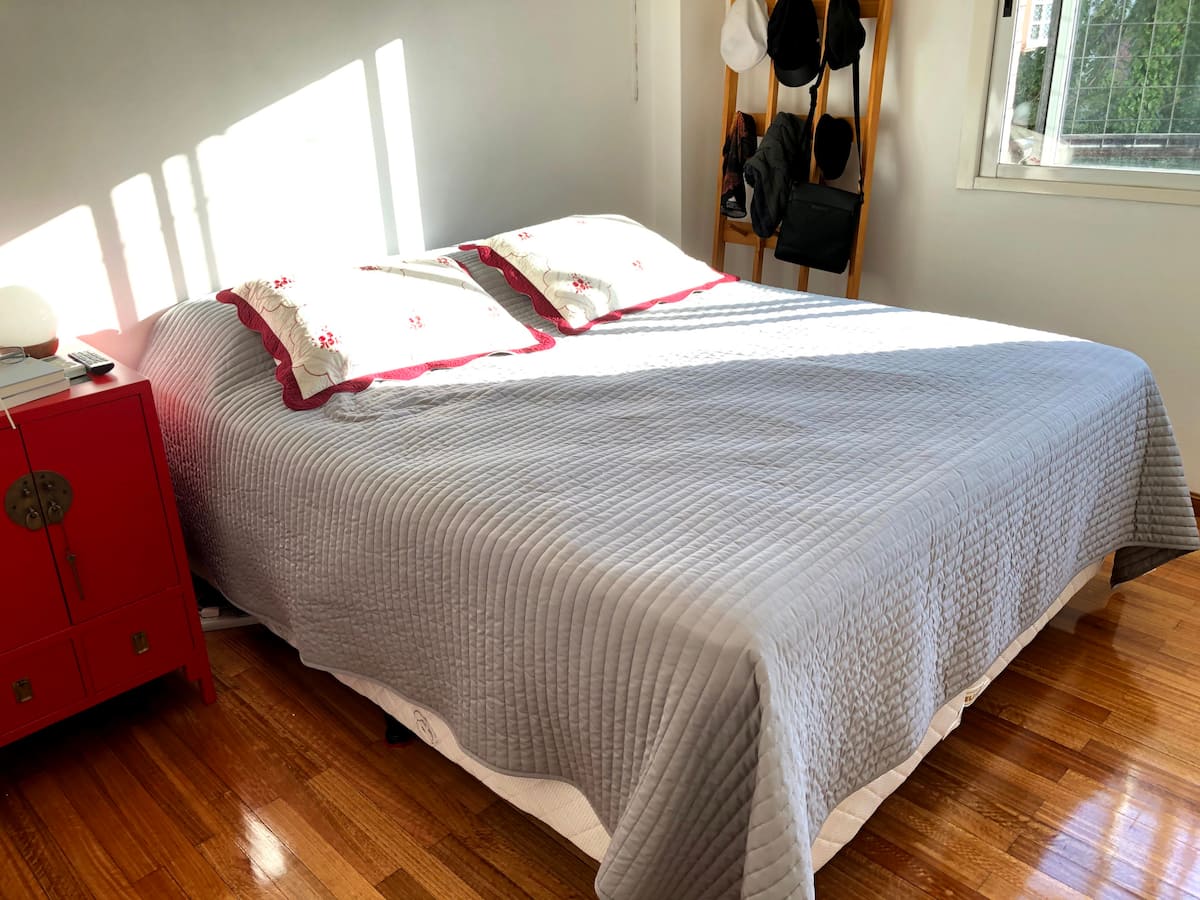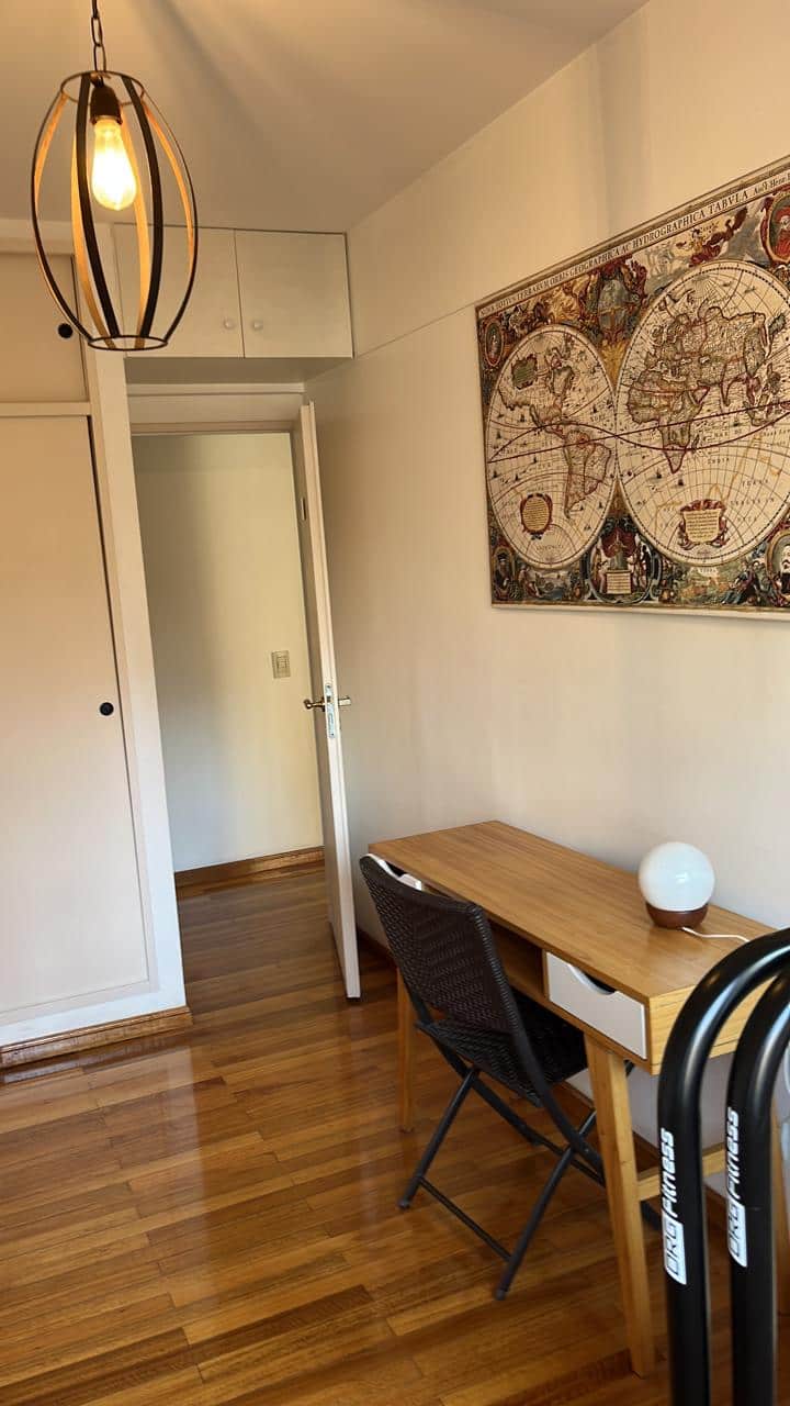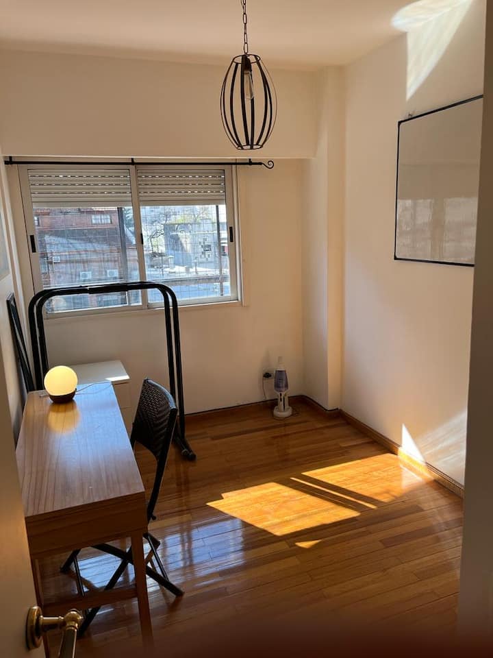 One-bedroom apartment with a desk room, 1 bedroom and a living area. East-facing in the morning and west-facing in the afternoon. Fully equipped kitchen with a small electric oven, a large gas oven and a full-size refrigerator. Air conditioners are installed in both the bedroom and the living room, with a balcony and a laundry room included.