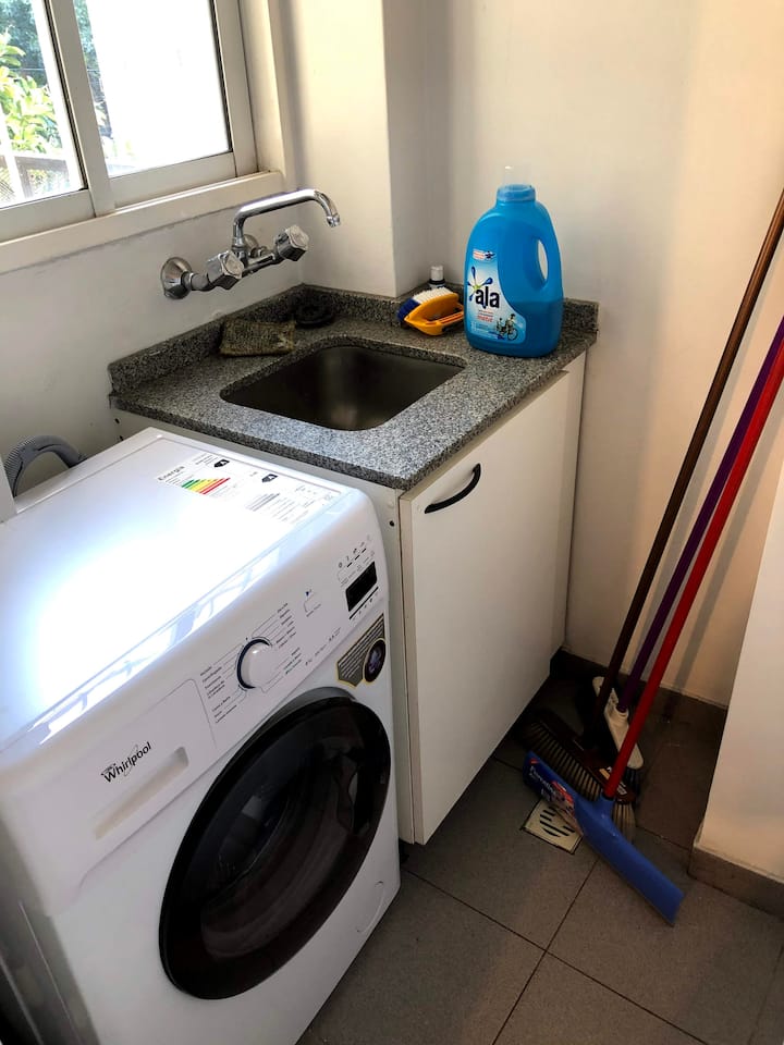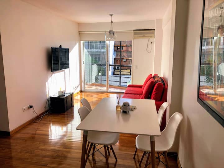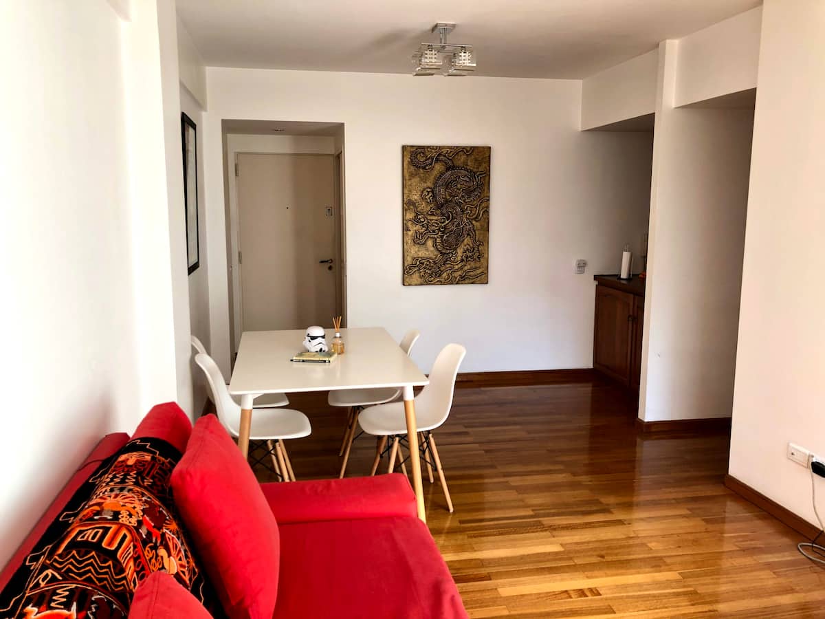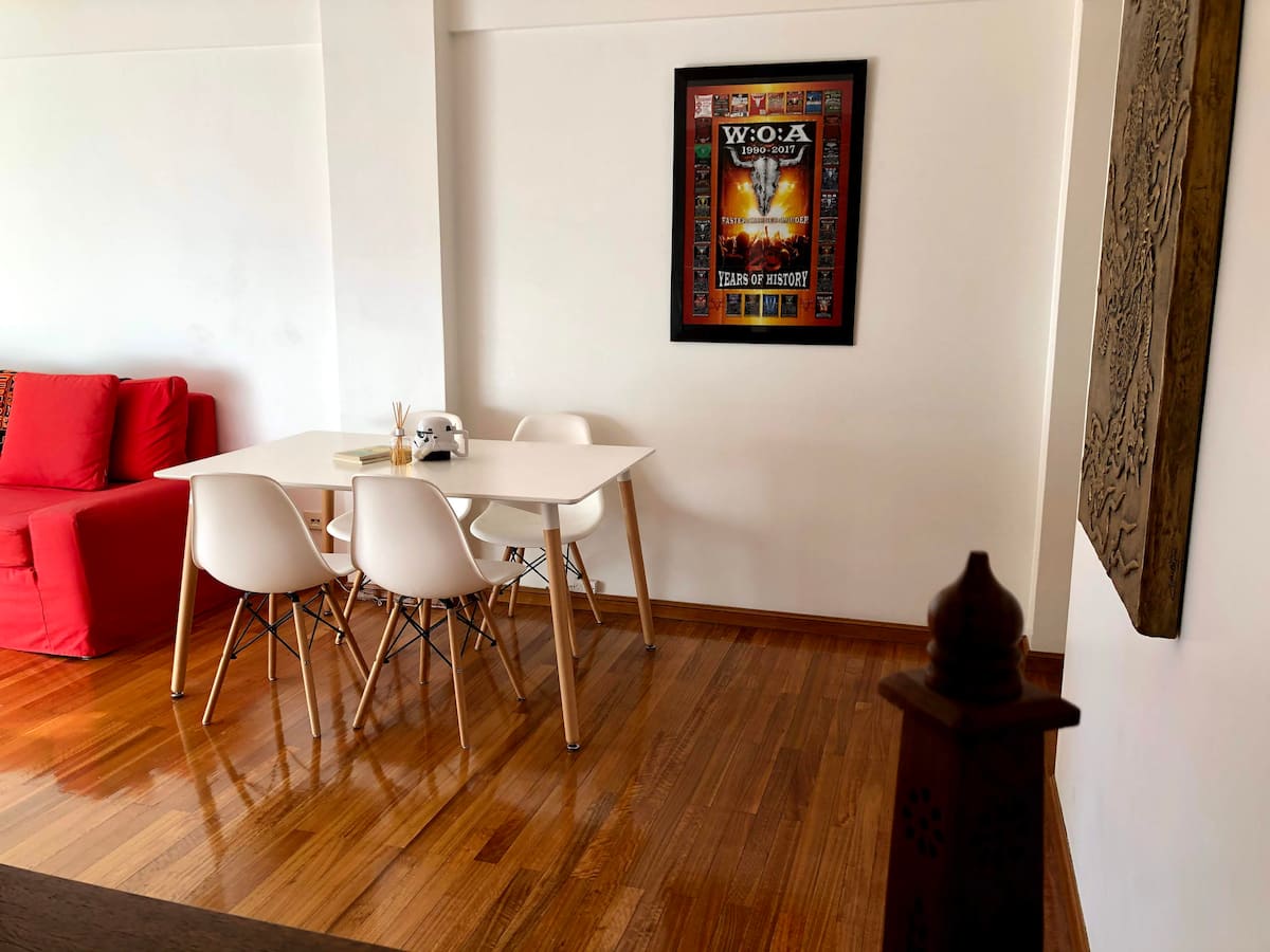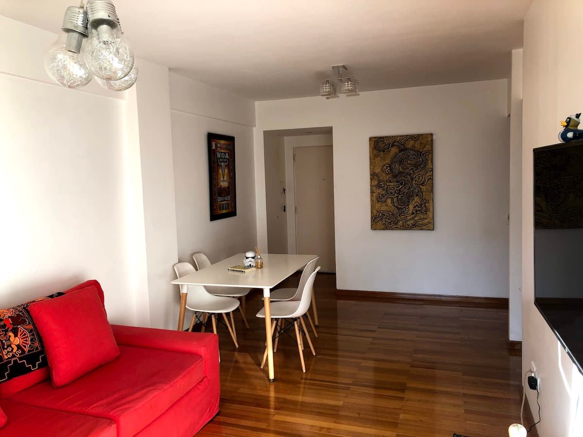 One-bedroom apartment with a desk room, 1 bedroom and a living area. East-facing in the morning and west-facing in the afternoon. Fully equipped kitchen with a small electric oven, a large gas oven and a full-size refrigerator. Air conditioners are installed in both the bedroom and the living room, with a balcony and a laundry room included.