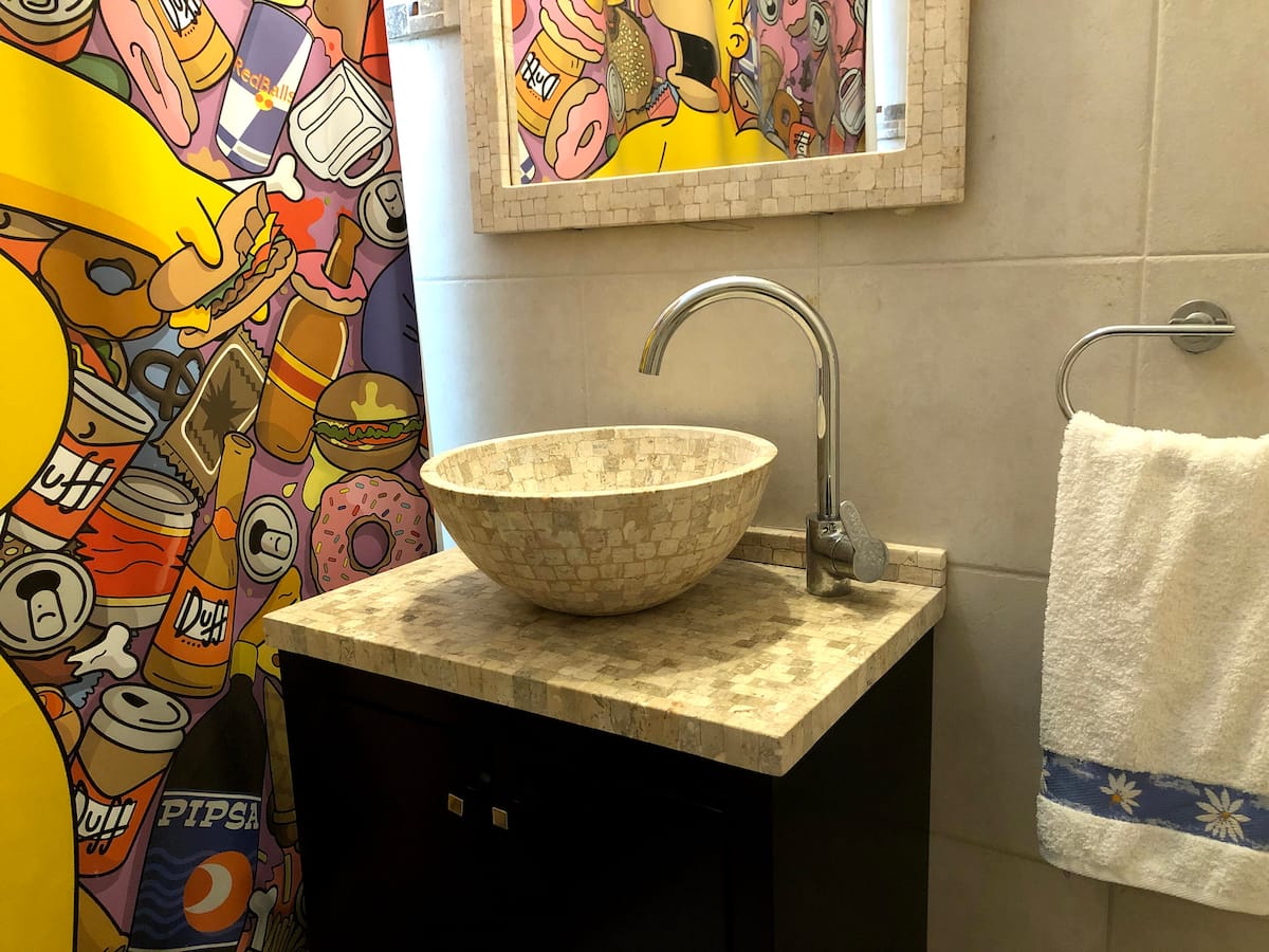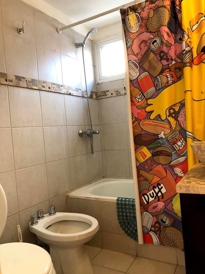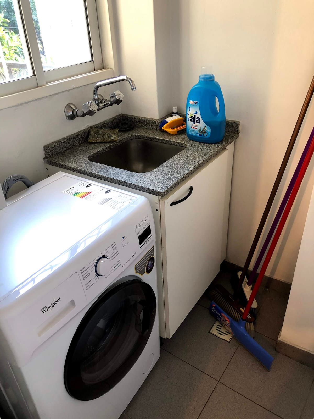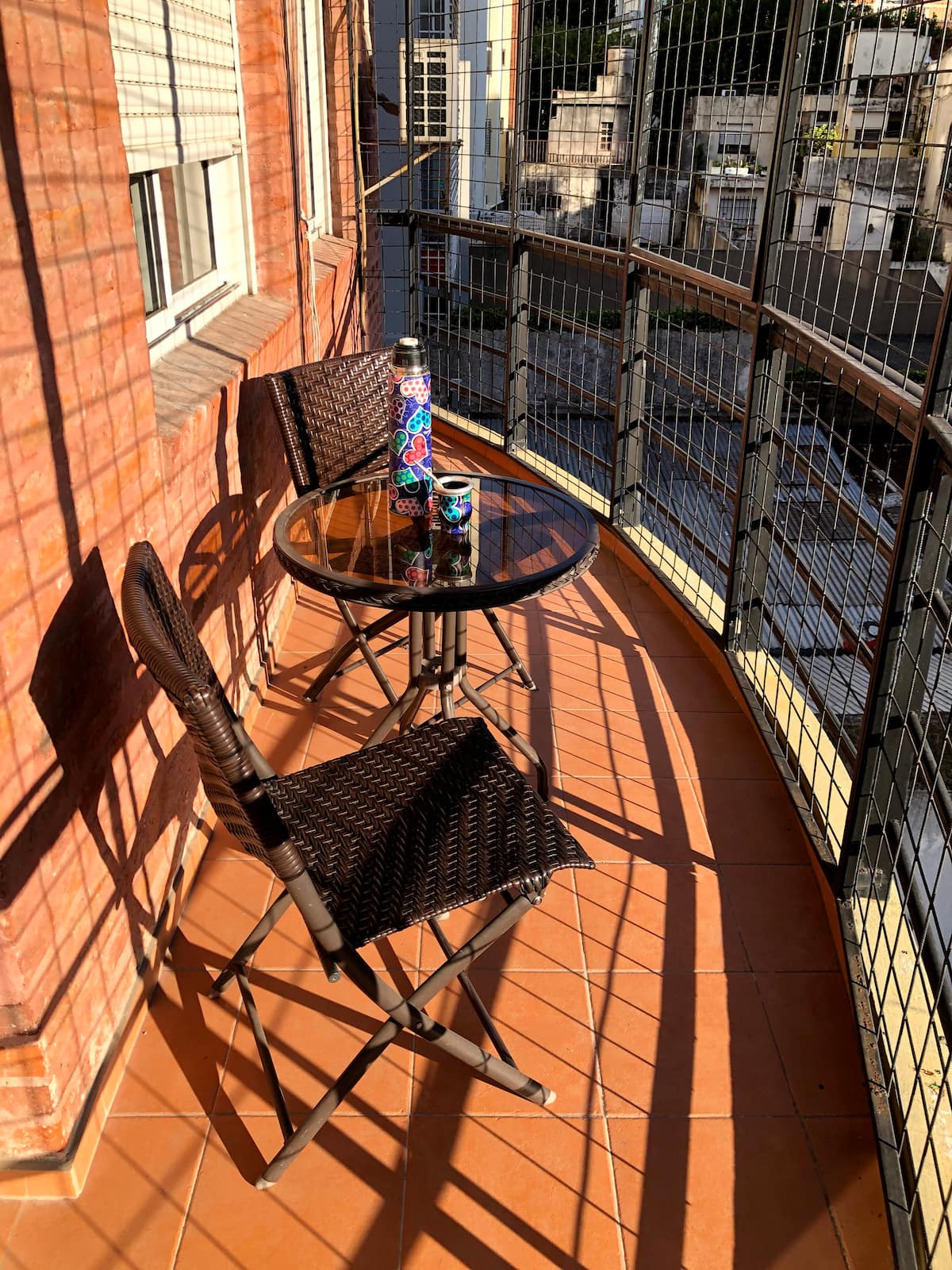 One-bedroom apartment with a desk room, 1 bedroom and a living area. East-facing in the morning and west-facing in the afternoon. Fully equipped kitchen with a small electric oven, a large gas oven and a full-size refrigerator. Air conditioners are installed in both the bedroom and the living room, with a balcony and a laundry room included.