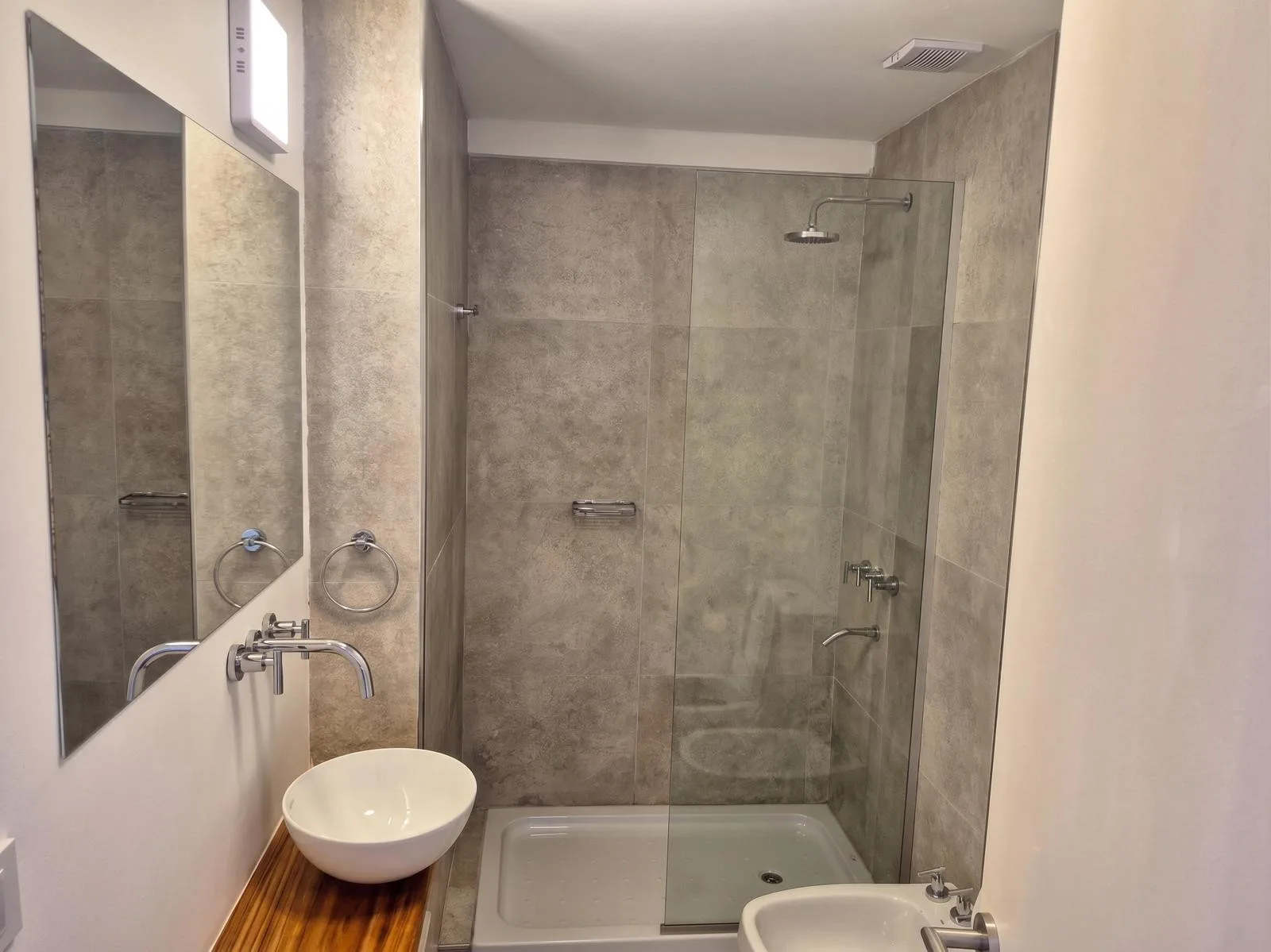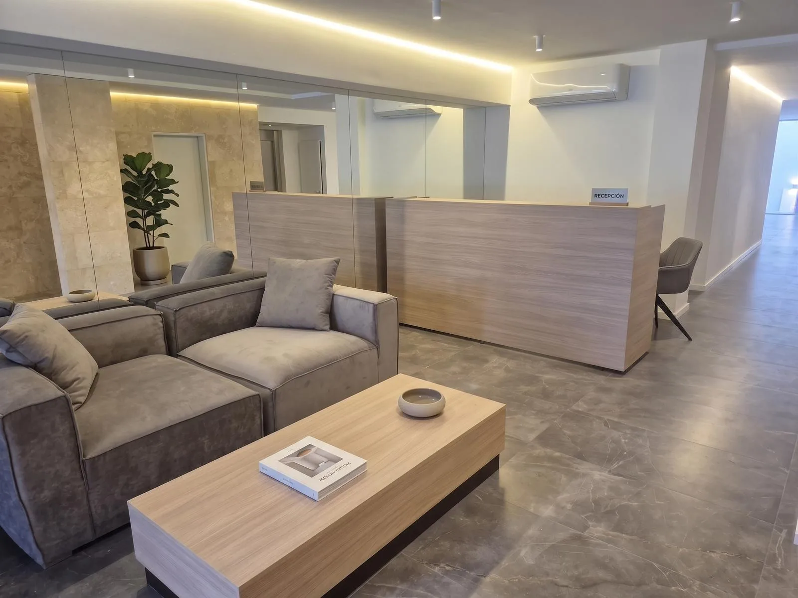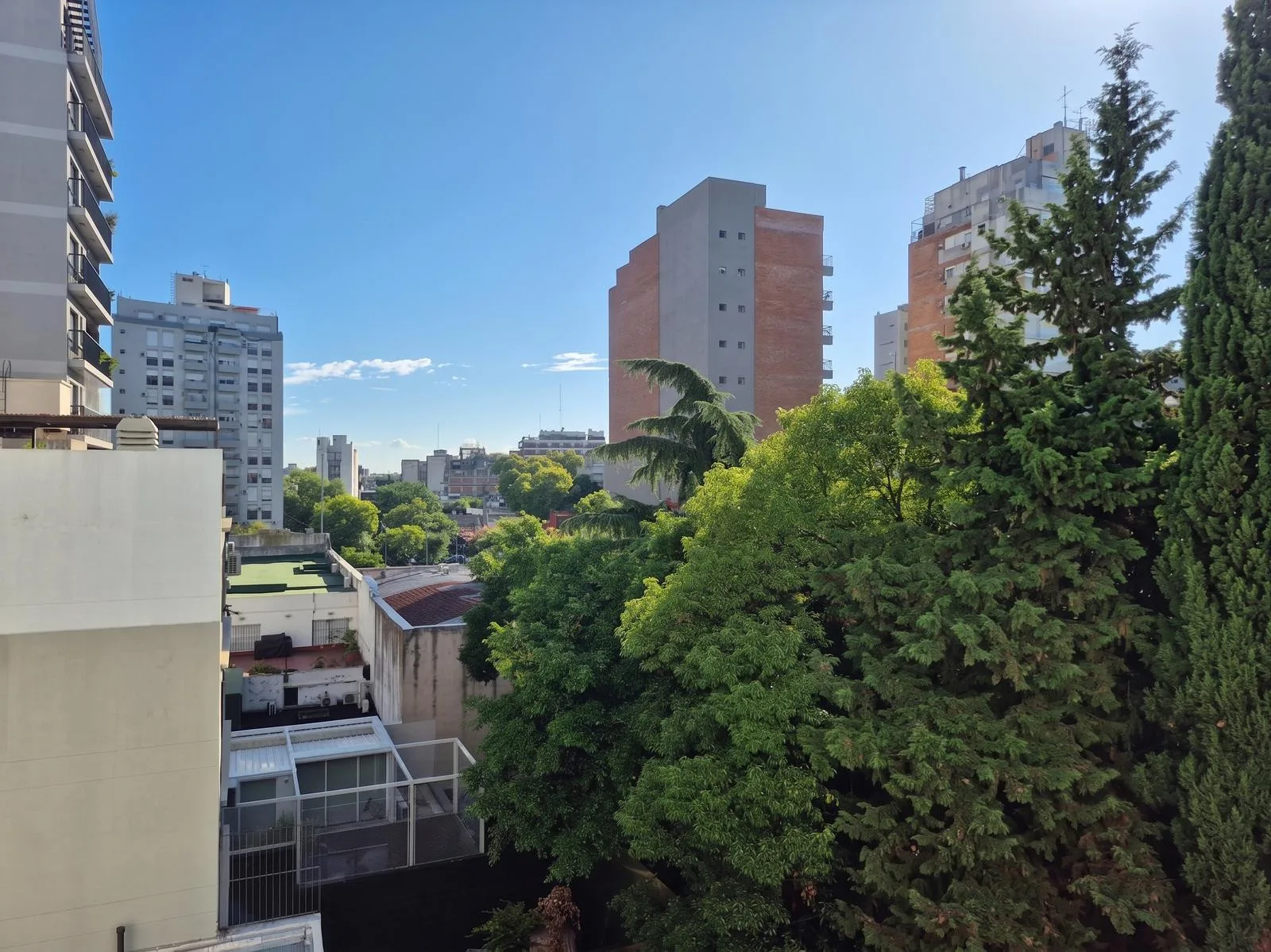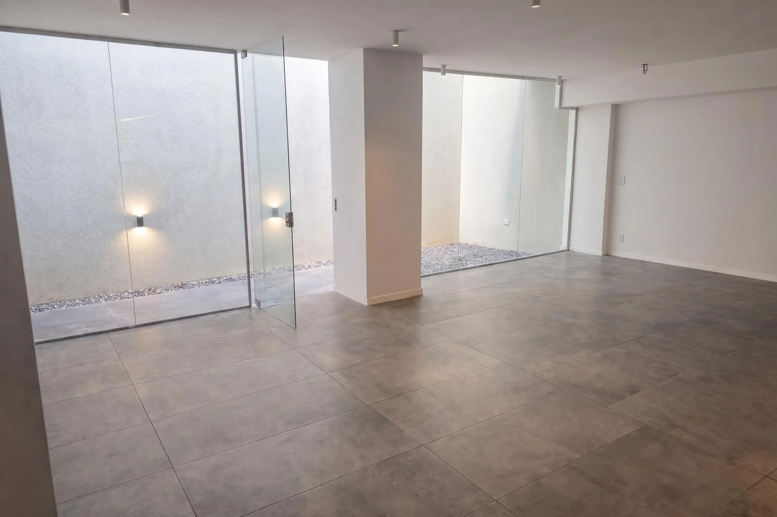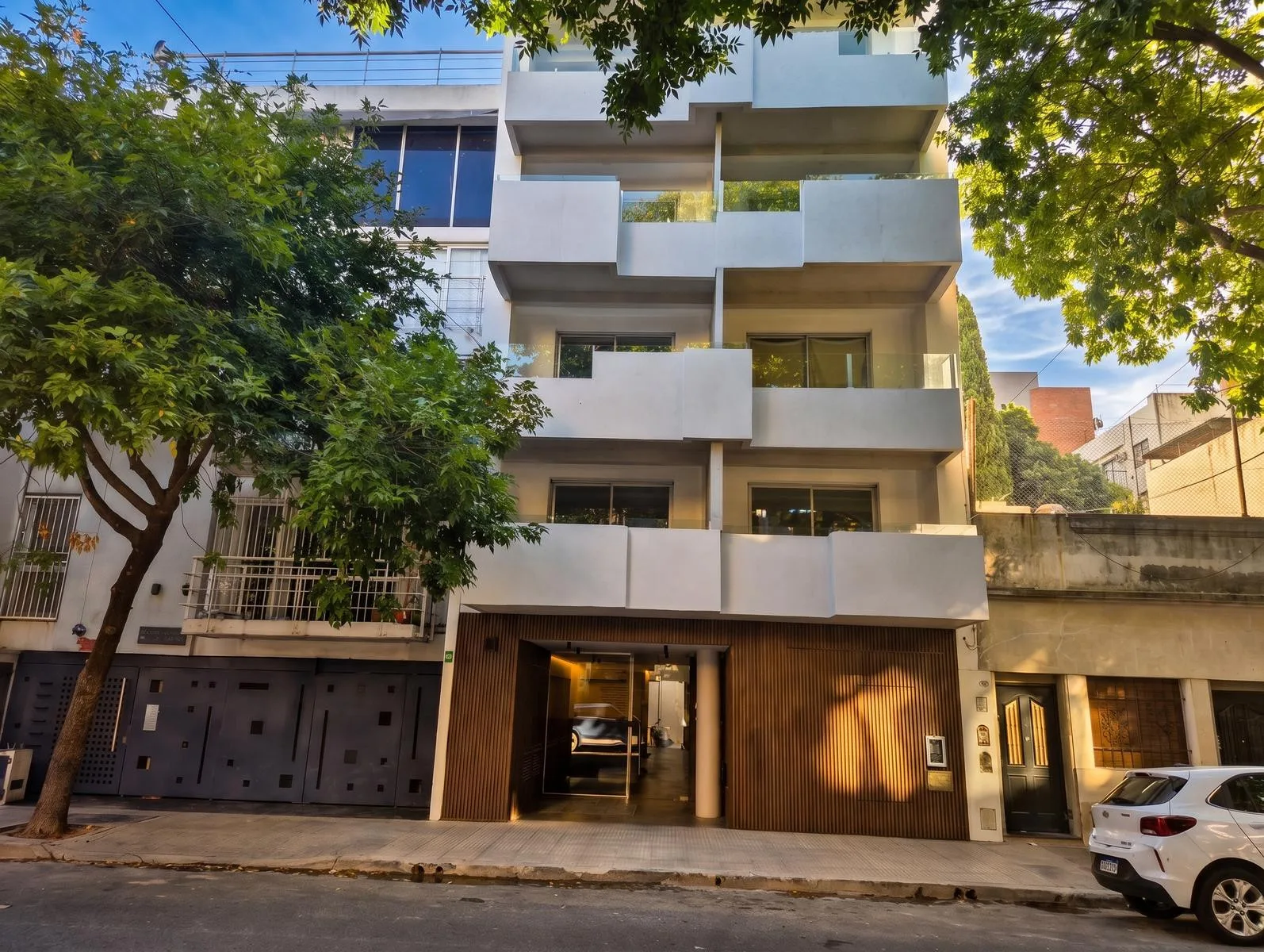 Studio apartment that can be divided, 42 m² total (35 m² covered) on the 5th floor, courtyard-facing with a balcony. Unfurnished and brand new. Includes an integrated kitchen, a full bathroom, and a main area divided for a living room and sleeping space, plus a balcony with safety netting. Building has central hot water, DVH double-glazed windows, multi-split hot/cold air conditioning, and facilities including an infinity pool with sun deck and grill, residents' lounge with co-working and garden