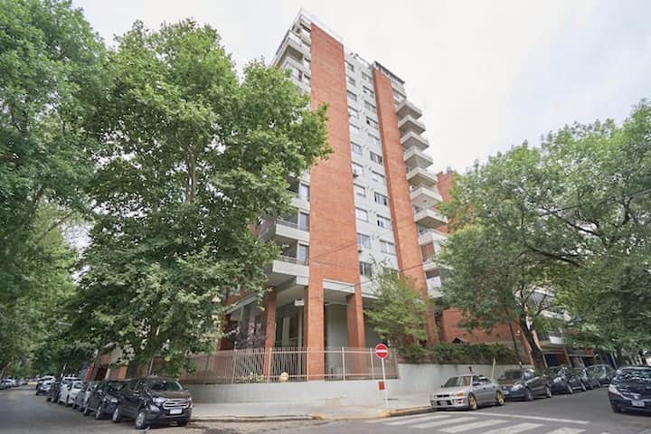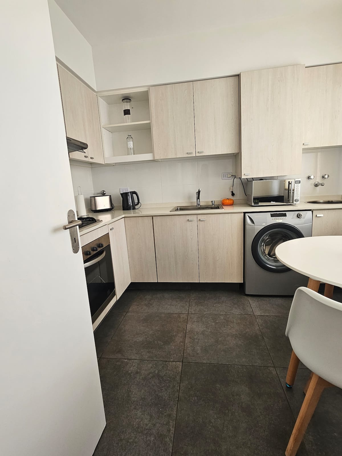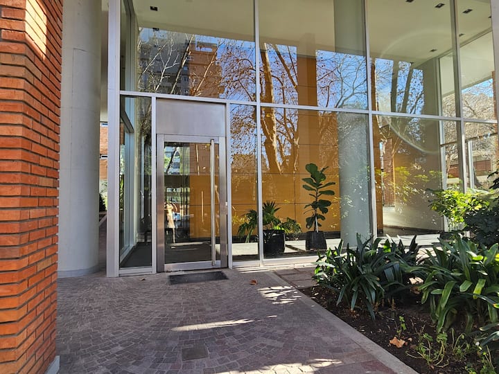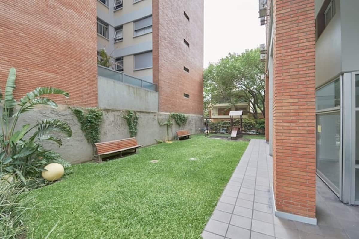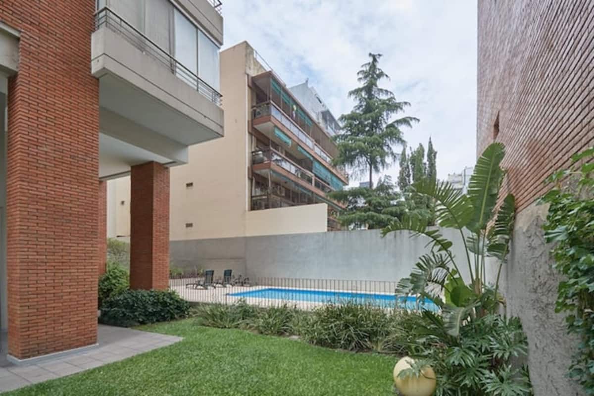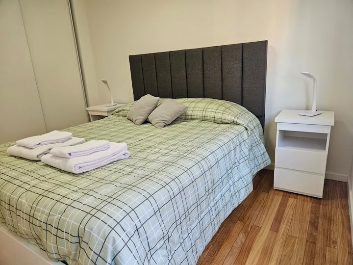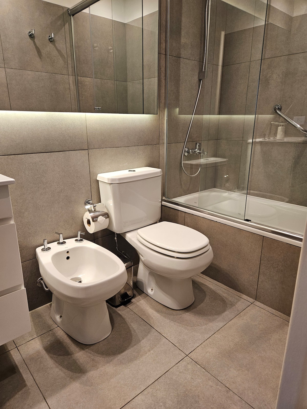 Two-room apartment in Núñez with 50 m². Furnished and fully equipped, with a balcony enclosed with decking and suitable for use as a workspace. The living room includes a sofa bed (1.30 x 1.90 m), and the bedroom has a queen-size bed. The kitchen is fully equipped, and the bathroom is complete with a bathtub. The building offers 24-hour security and a ground-floor pool and garden; a laundry room with washing machines and dryers is on the 1st floor for a fee.