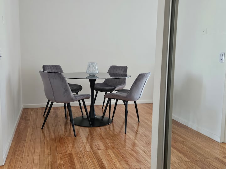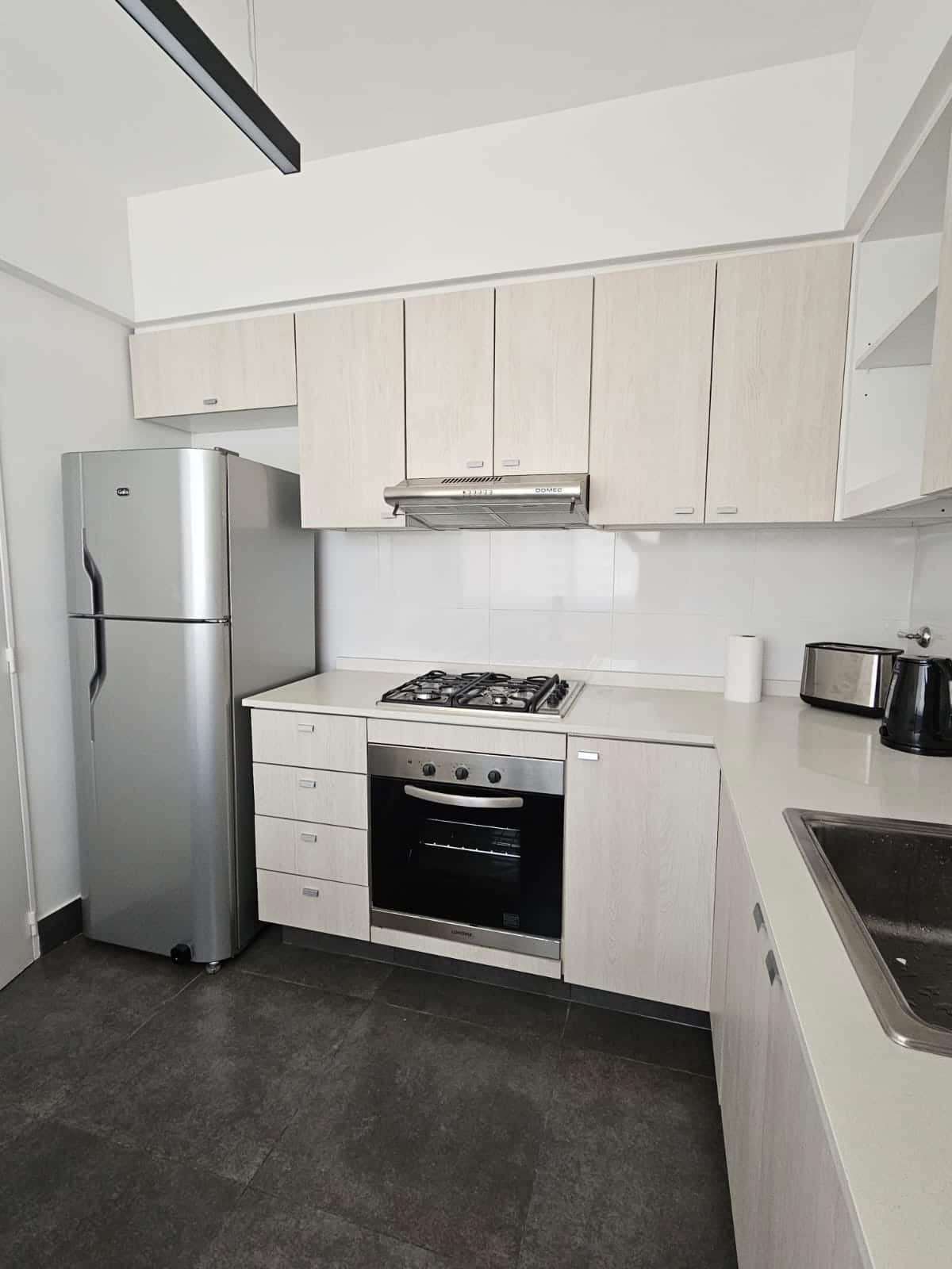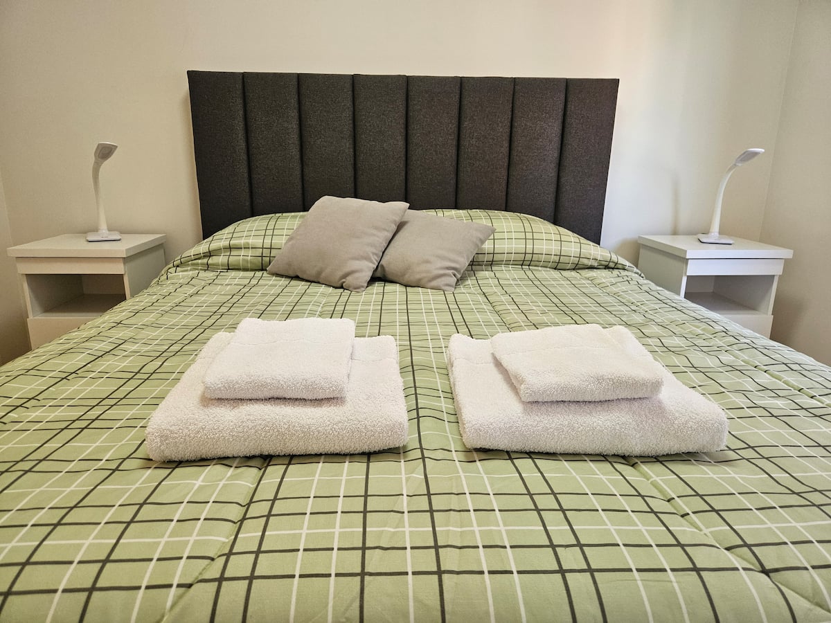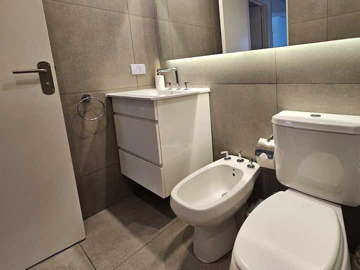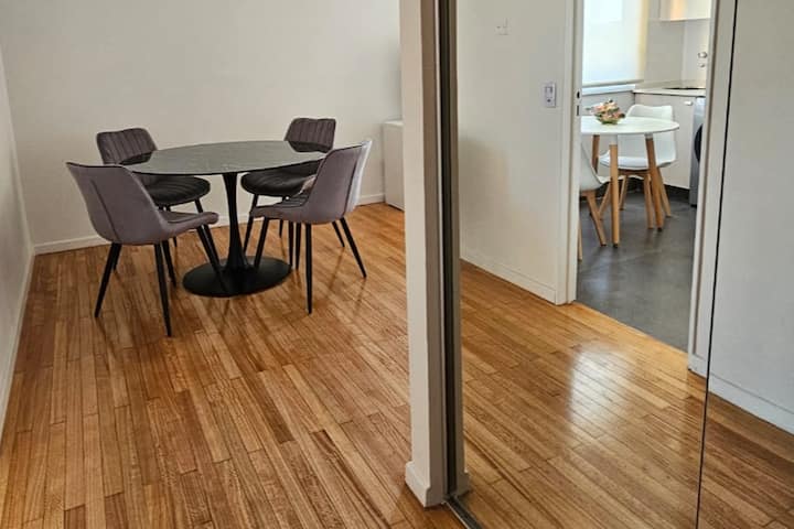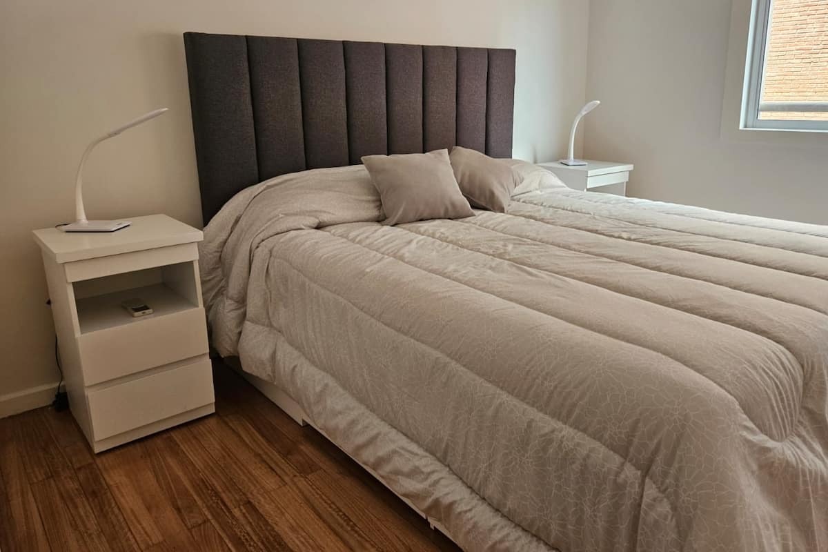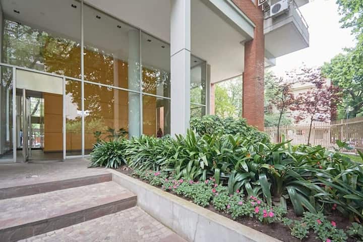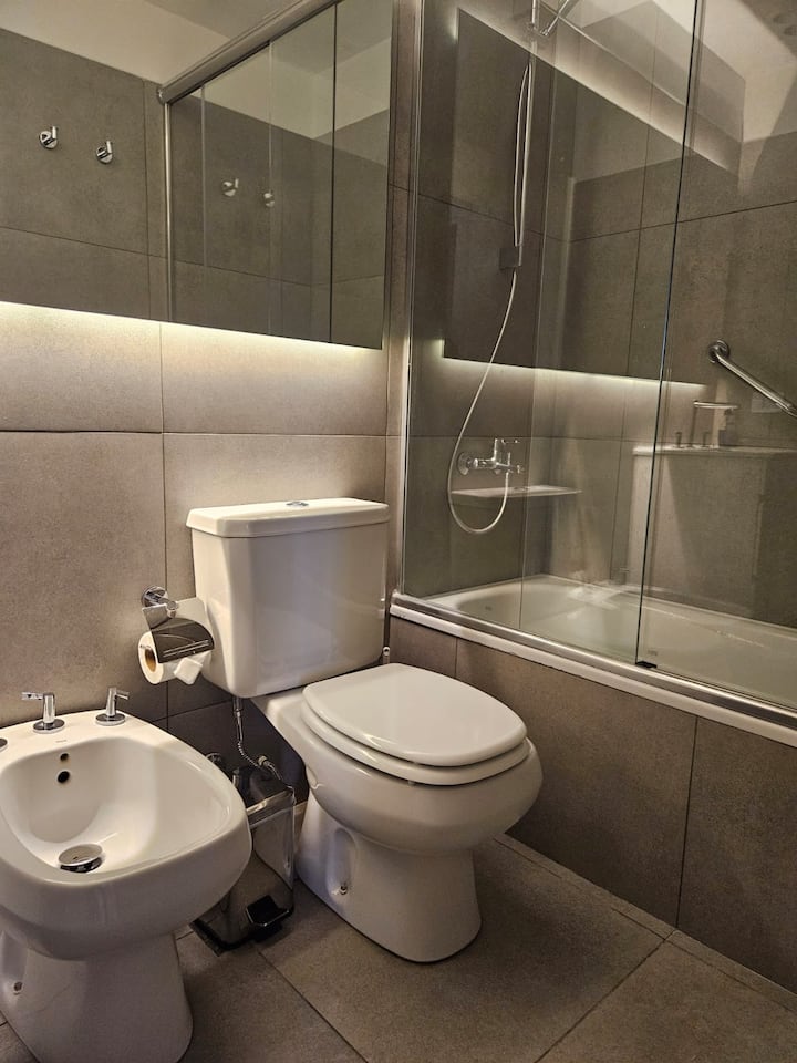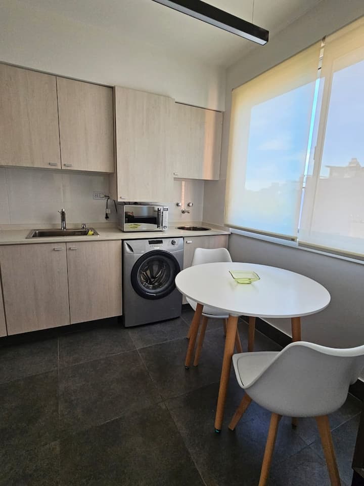 Two-room apartment in Núñez with 50 m². Furnished and fully equipped, with a balcony enclosed with decking and suitable for use as a workspace. The living room includes a sofa bed (1.30 x 1.90 m), and the bedroom has a queen-size bed. The kitchen is fully equipped, and the bathroom is complete with a bathtub. The building offers 24-hour security and a ground-floor pool and garden; a laundry room with washing machines and dryers is on the 1st floor for a fee.