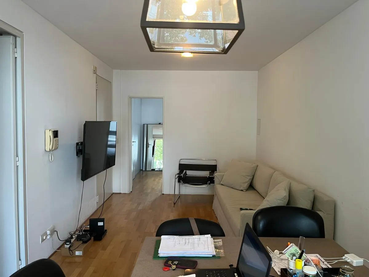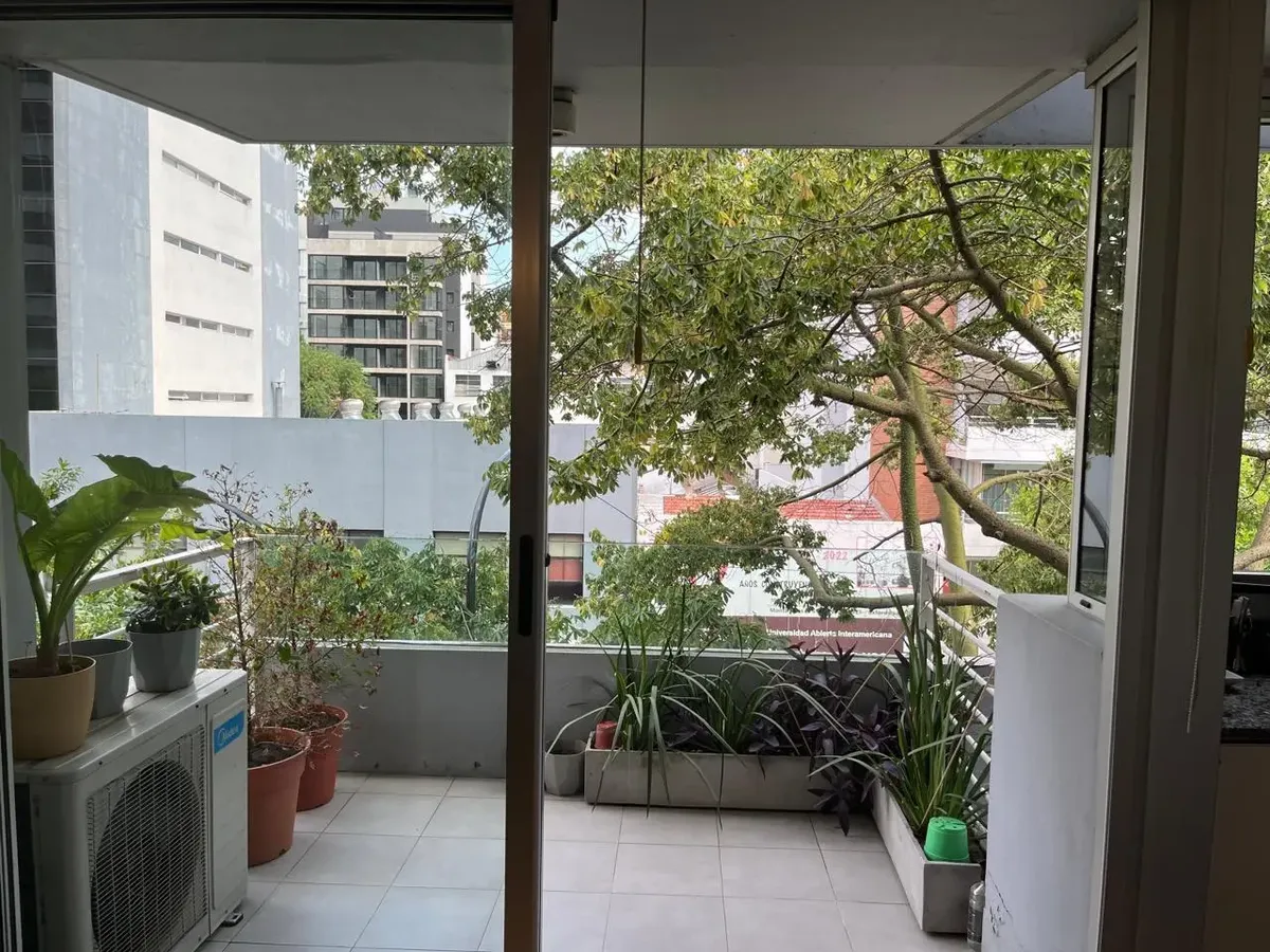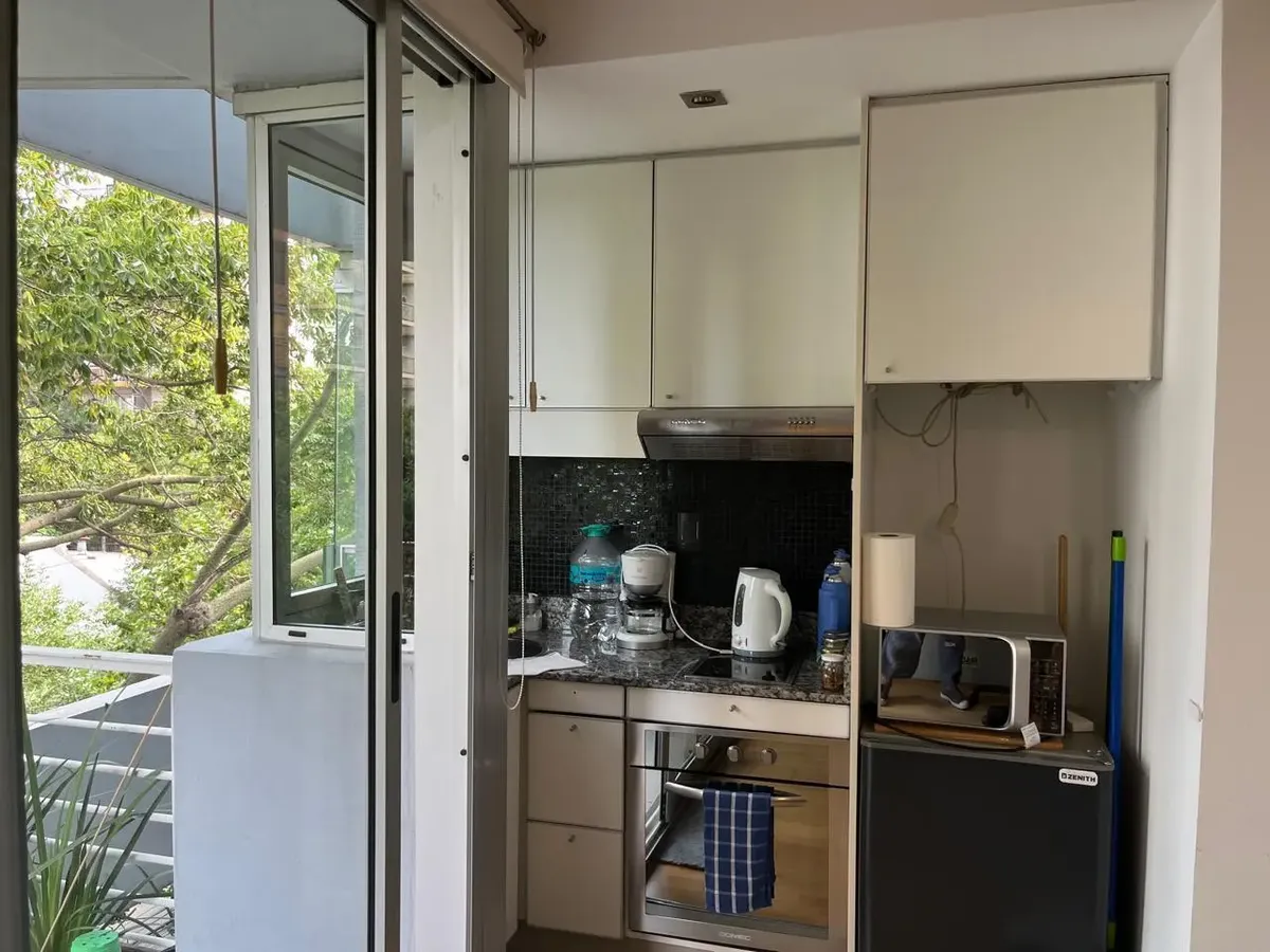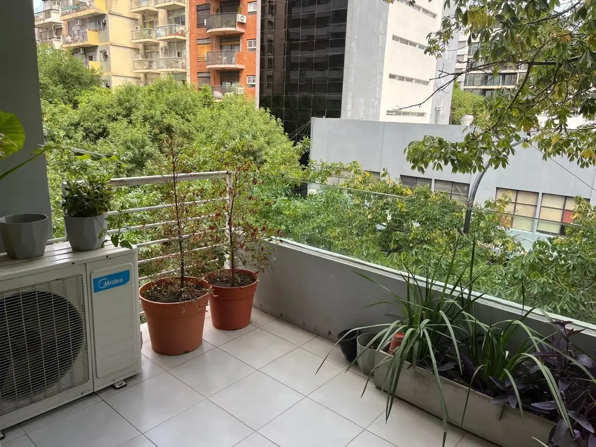 Two-room apartment in Núñez with a living/dining room, 1 bedroom and a separate kitchen. Equipped with 2 hot/cold air-conditioning units (one in each room), an independent electric water heater and a balcony facing the building. The building has a doorman, laundry, a roof-top pool and a deck with a grill, and the unit includes a private uncovered parking space. Av. Congreso 1500.