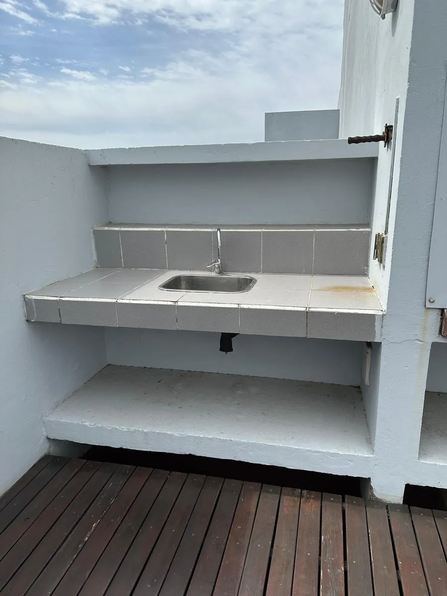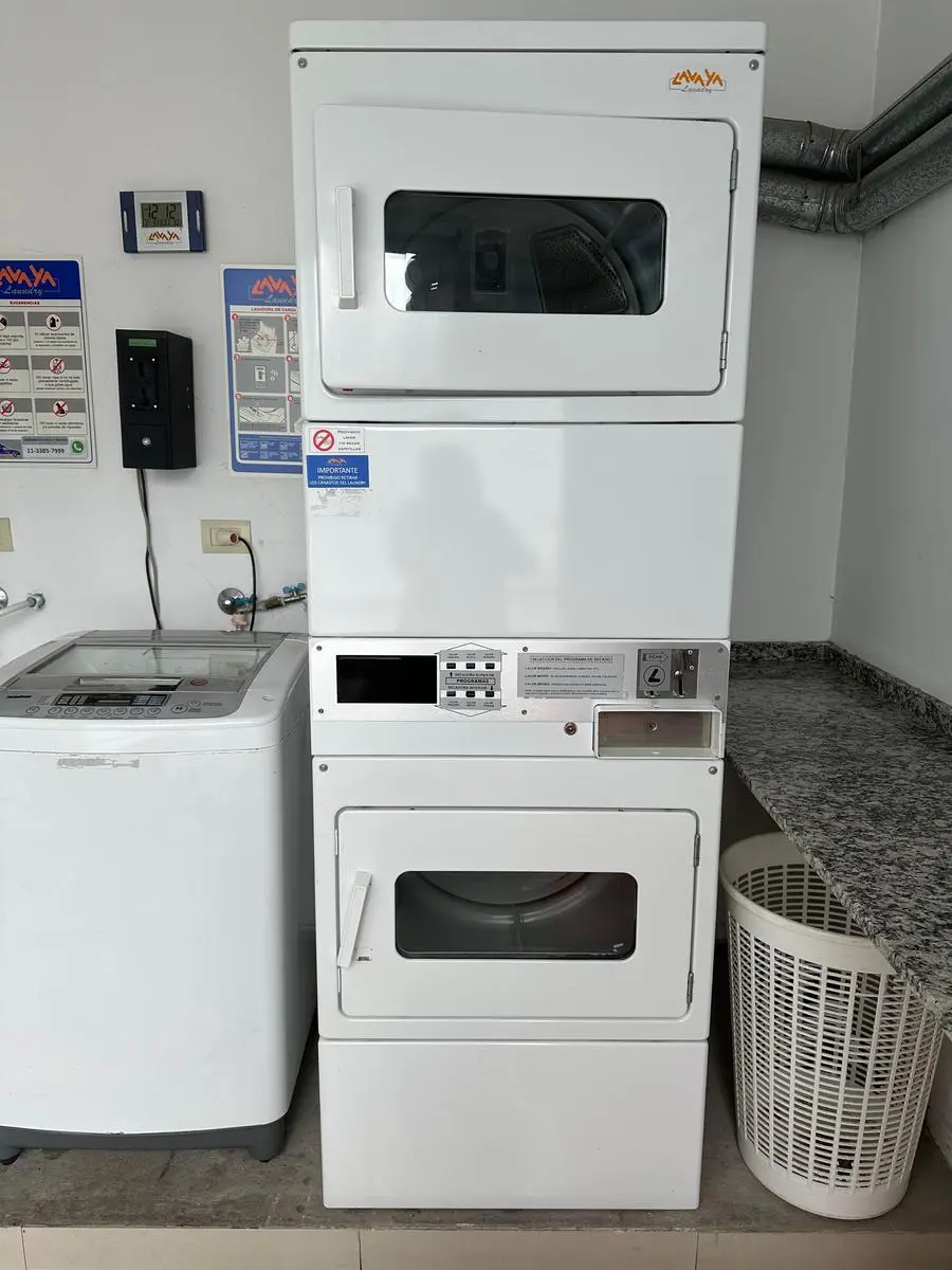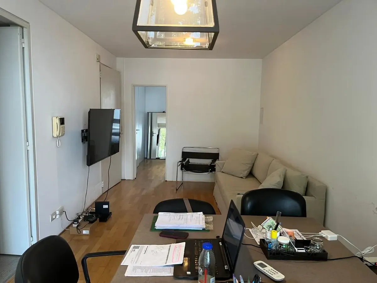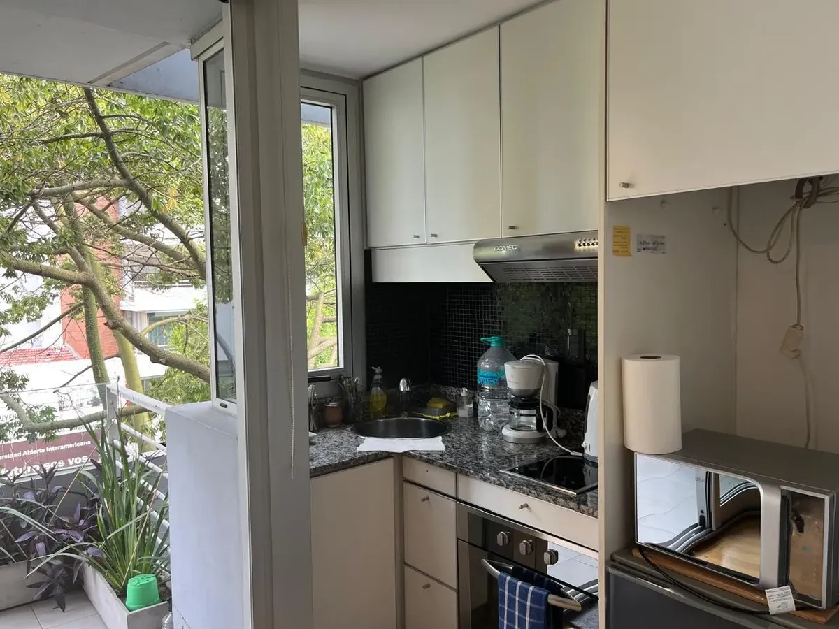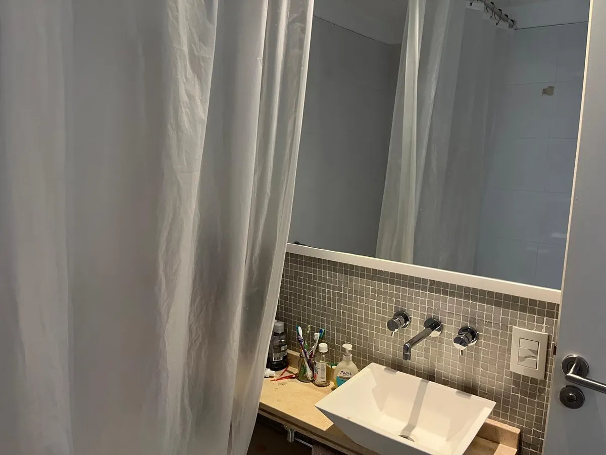 Two-room apartment in Núñez with a living/dining room, 1 bedroom and a separate kitchen. Equipped with 2 hot/cold air-conditioning units (one in each room), an independent electric water heater and a balcony facing the building. The building has a doorman, laundry, a roof-top pool and a deck with a grill, and the unit includes a private uncovered parking space. Av. Congreso 1500.