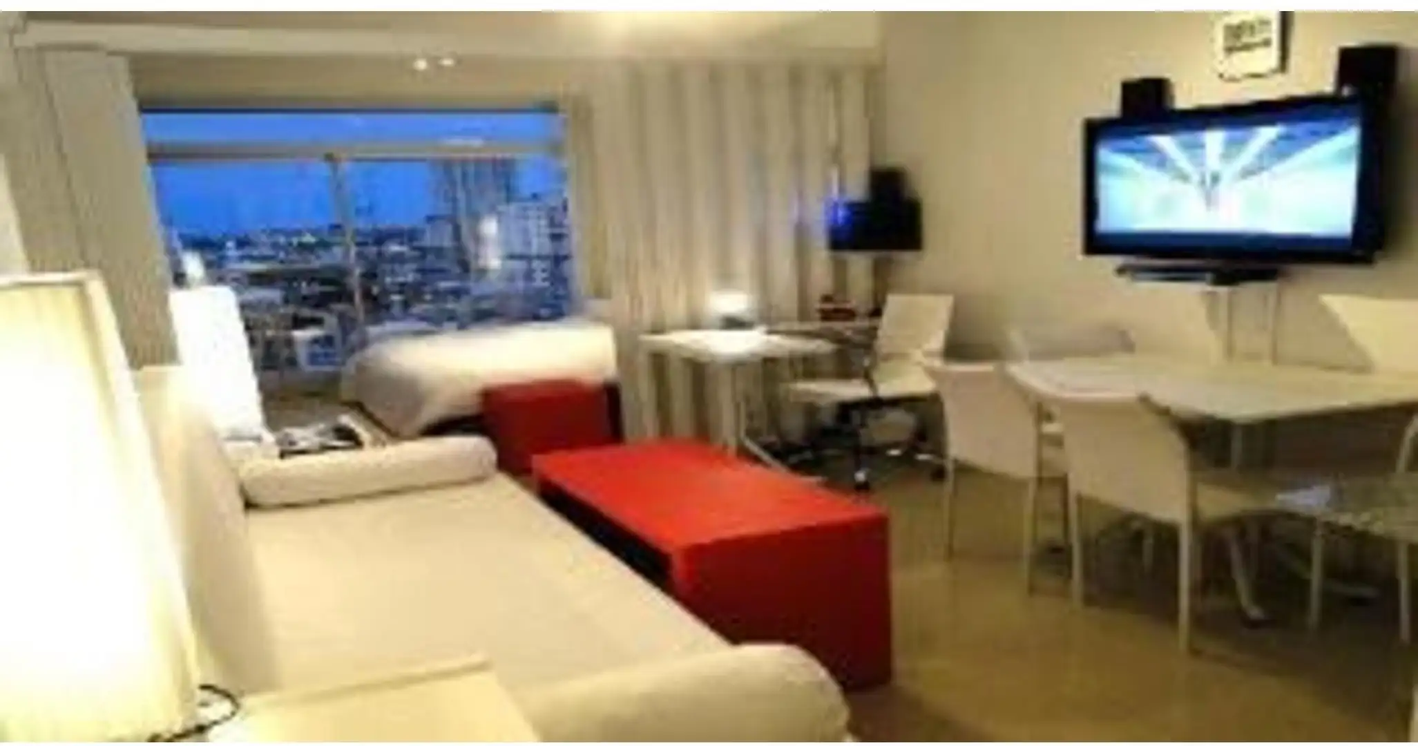 One-bedroom apartment with a large balcony and sliding door. It has an approximately 3-metre-wide window with a street view of the river and the city. Equipped with a TV, home theatre, cordless phone, electric kitchen with oven, fridge, microwave, mirrored wardrobes, glass partitions and air conditioning. The unit includes a large communal room (SUM), laundry area with dryer, grill, pool and a sun deck (solárium) on the roof level. Rental terms require approximately 3 months' advance, plus one m