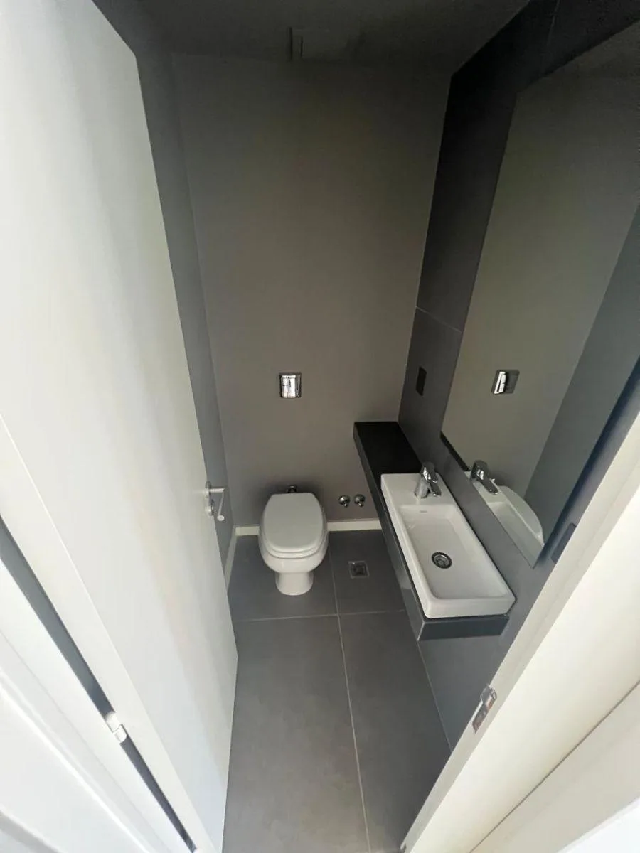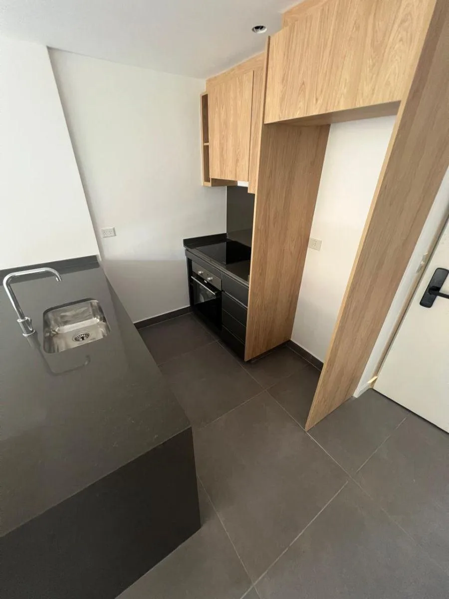 Two-room apartment with 43 m² covered and 50 m² total area, street-facing with east orientation. It has 1 en-suite bedroom, 1 full bathroom and 1 toilet. Living-dining room with an integrated kitchen, plus a balcony. The building offers a pool, gym, solarium, communal SUM, grill facilities, elevator, on-site attendant, wheelchair access, a bicycle storage area for all units and lockers.