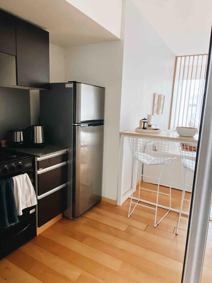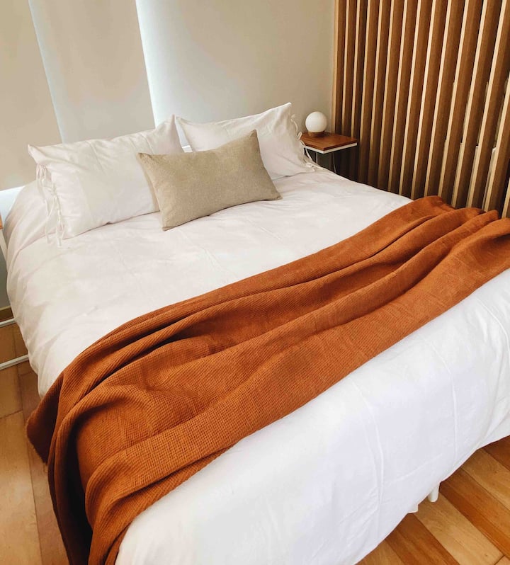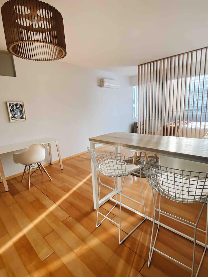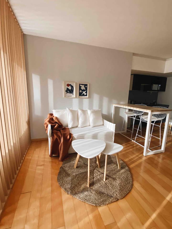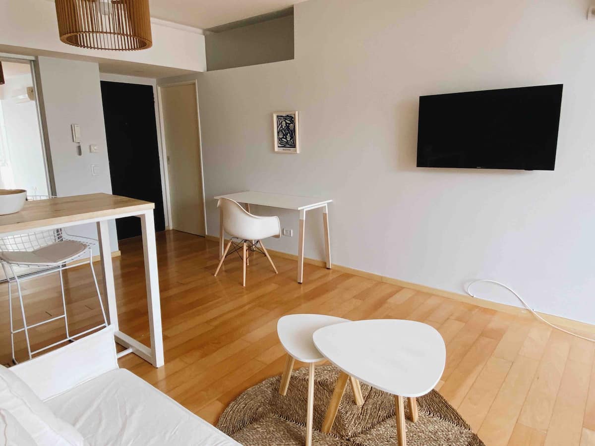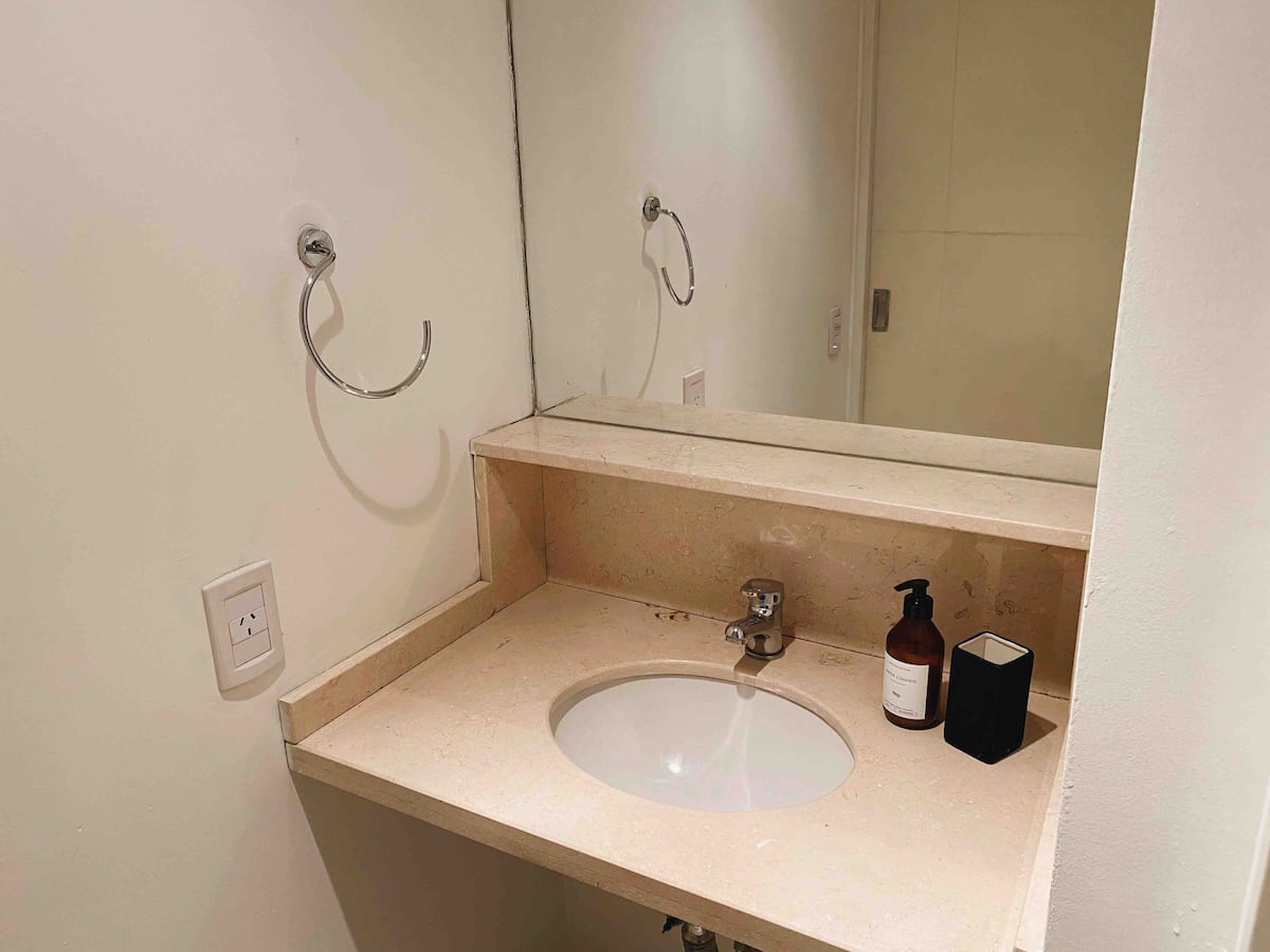 Studio apartment in Núñez. It overlooks an interior block courtyard and is described as quiet. The building has a swimming pool, grill area and a communal room on the terrace, plus a laundry. Access is via public transport, including Subte D, and free street parking is available in the area 24 hours a day.