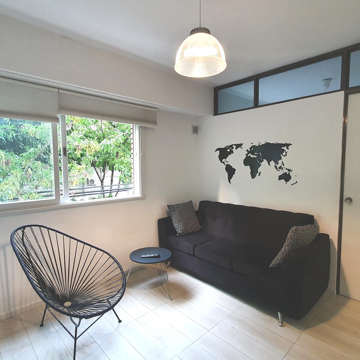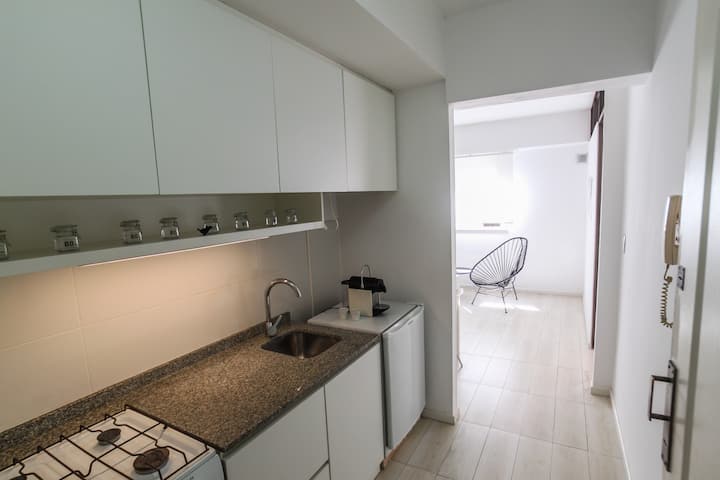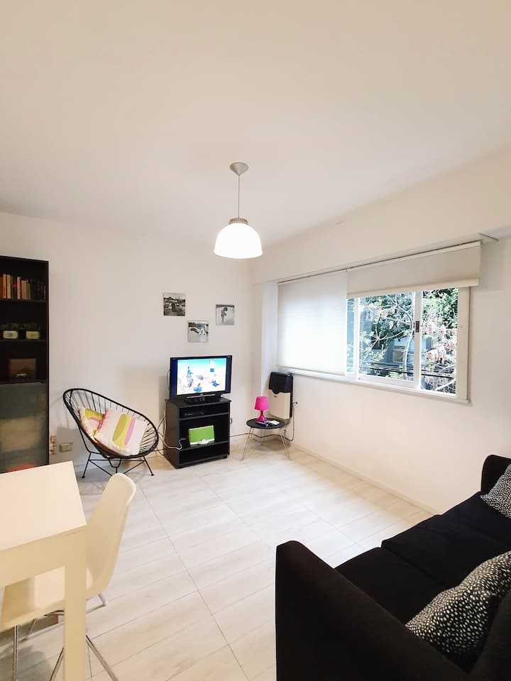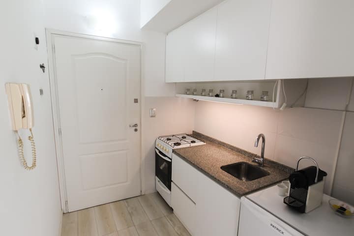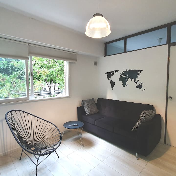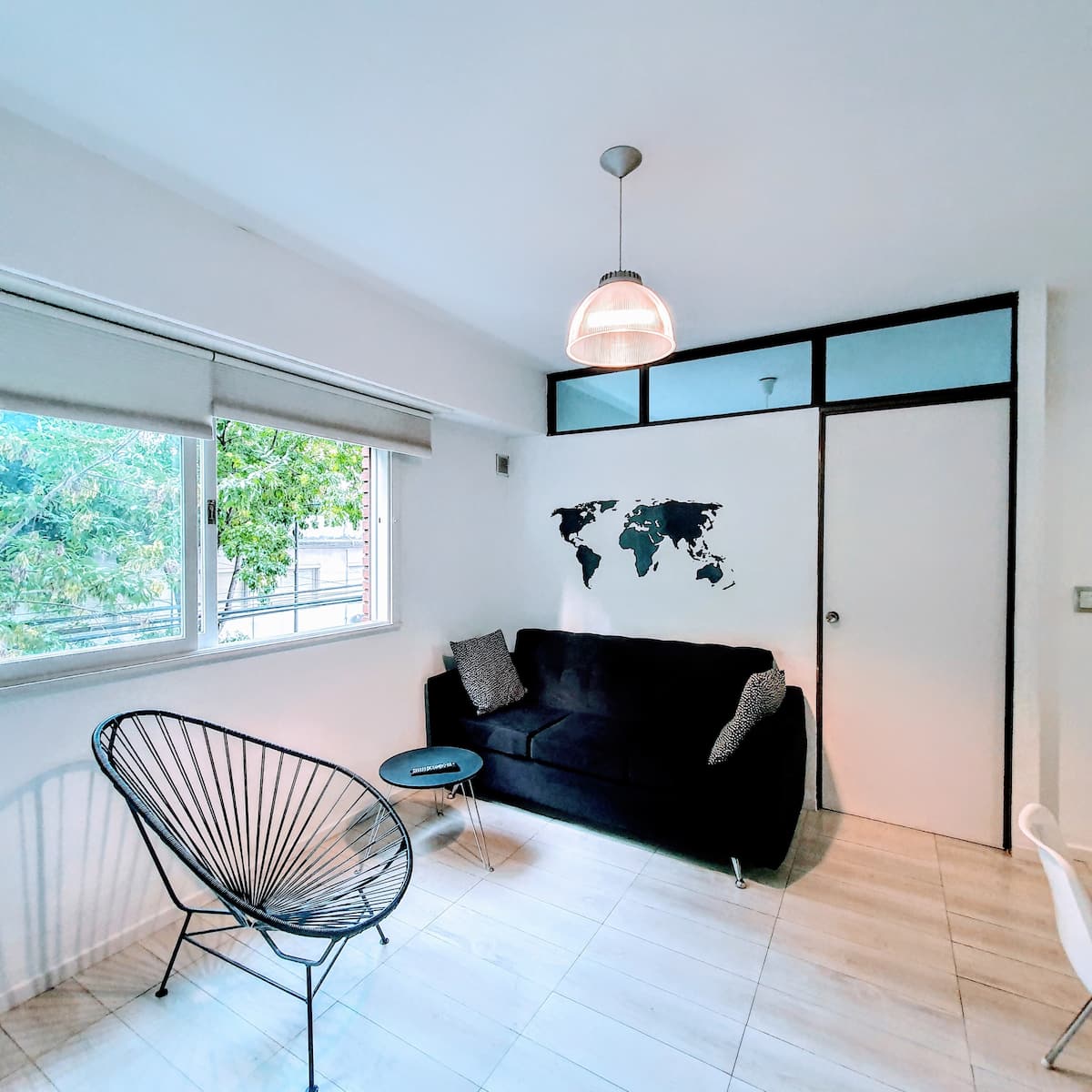 Recently renovated one-bedroom apartment in Belgrano with double bed. Fully equipped with TV, Wi-Fi internet, air conditioning, a fully equipped kitchen, bed linen, iron, and hair dryer. Located 1 minute from the underground station and trains.