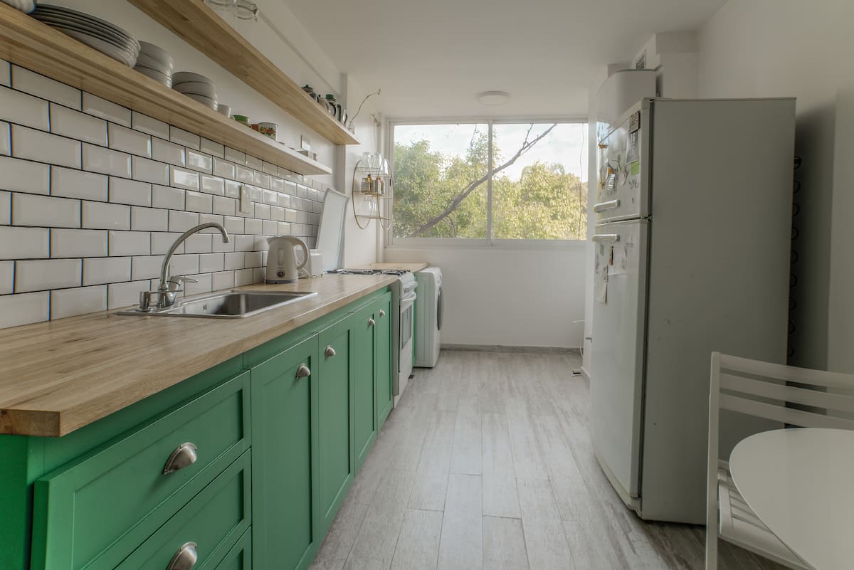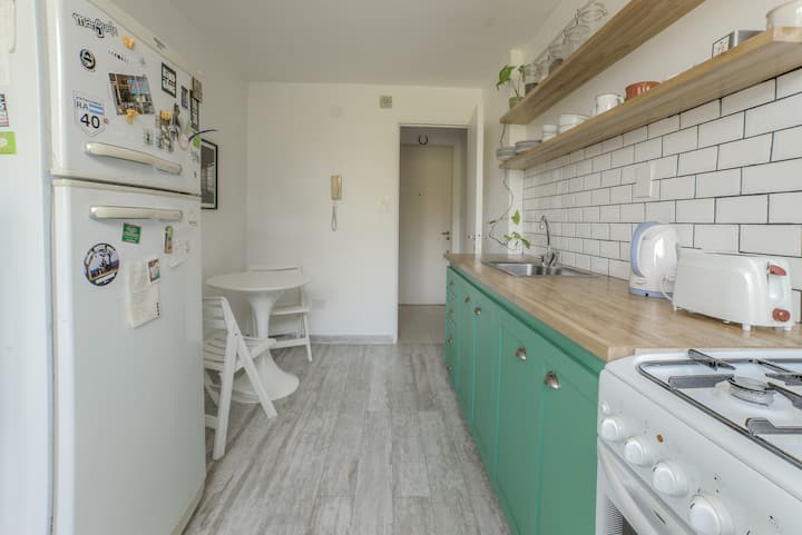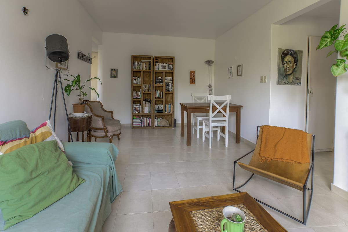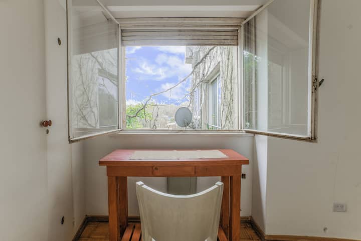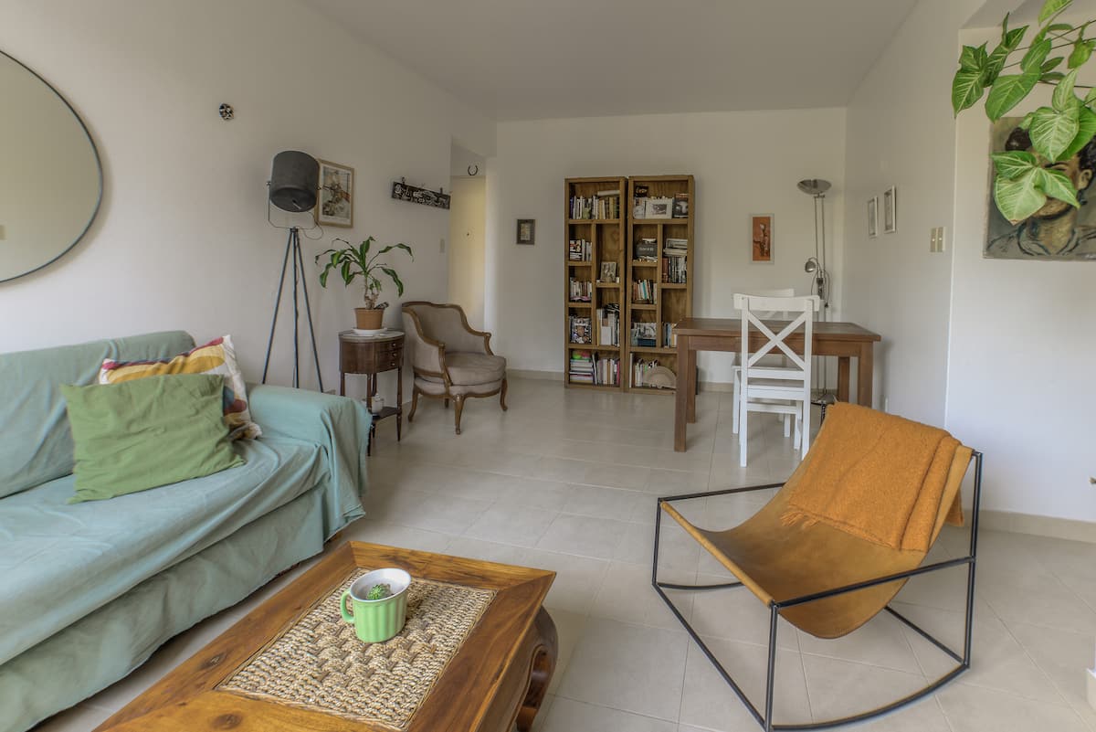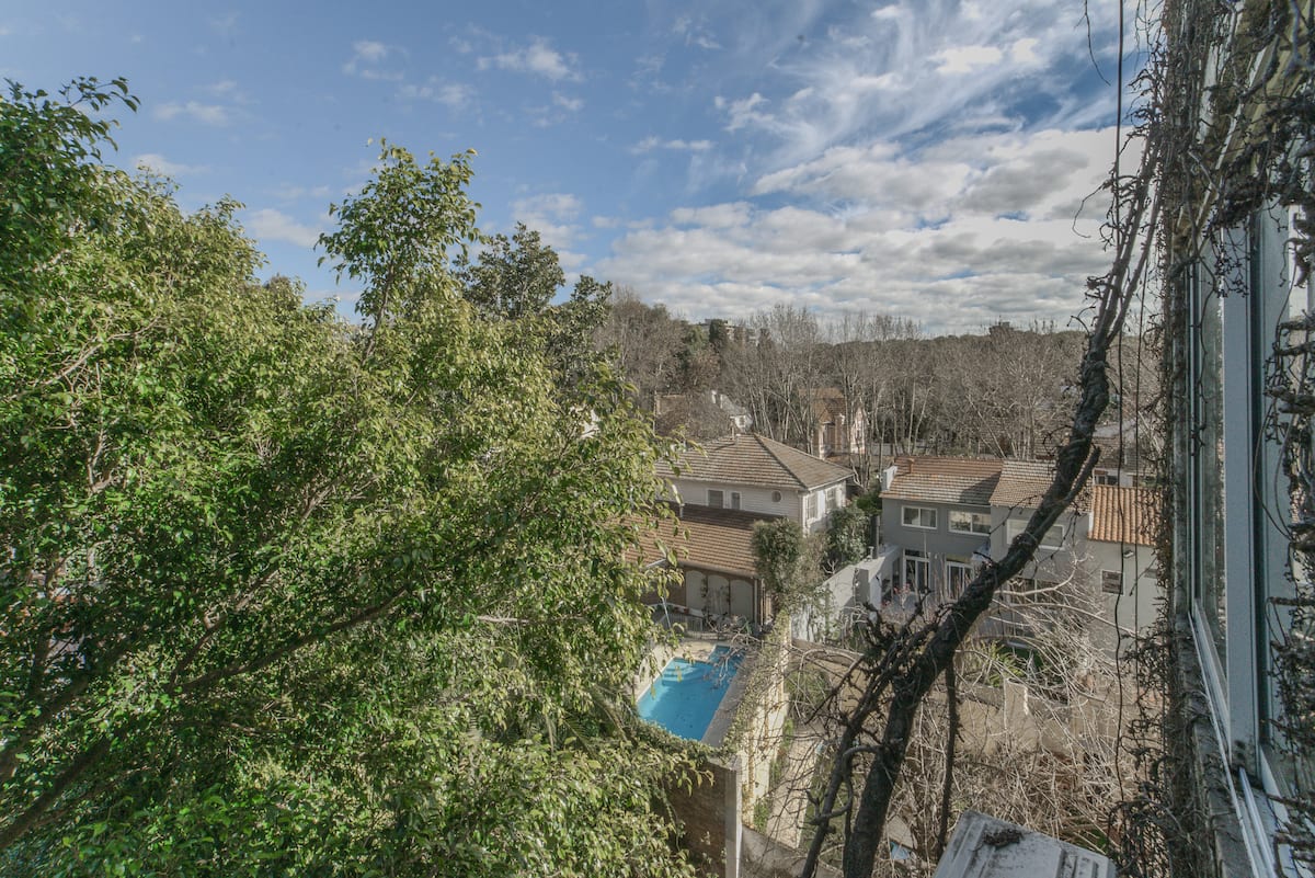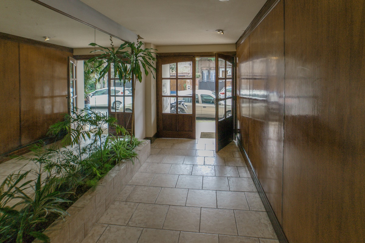 One-bedroom apartment in Olivos, a few blocks from the port. The building has few residents and sits among low houses and gardens. Public transport by train and bus is nearby, along with shops and dining options. The Costa Train is close, with services towards Zona Norte and Tigre.