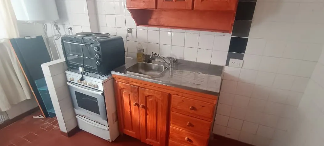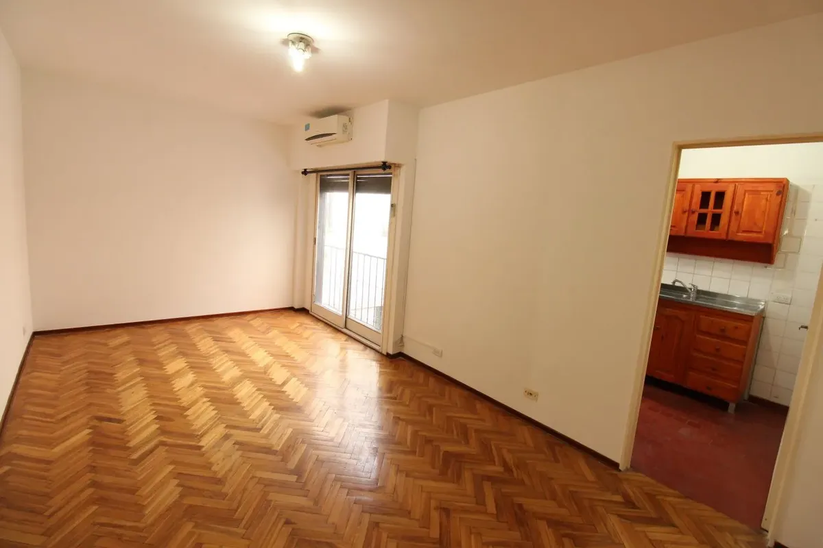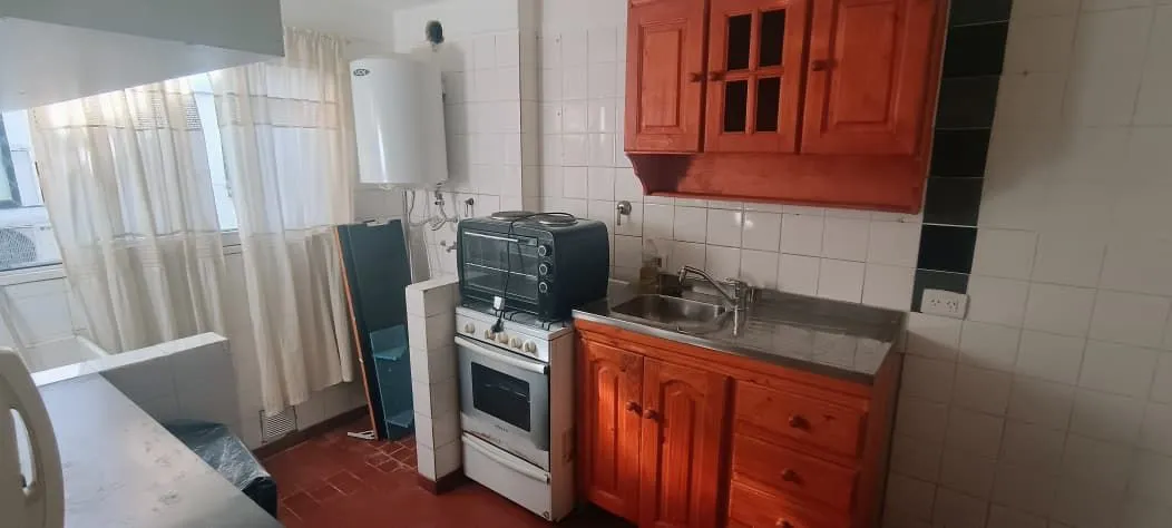 Two-room apartment on the 6th floor near Av. Maipú in Vicente López. All-electric. Includes a large kitchen with a laundry area, a full bathroom, an open-plan living-dining room, and a bedroom with a built-in wardrobe. Maximum occupancy is 2 people; pets are not allowed.