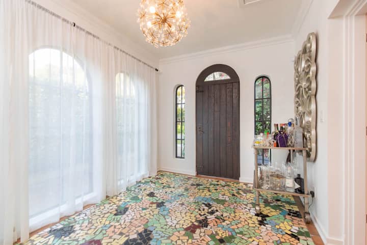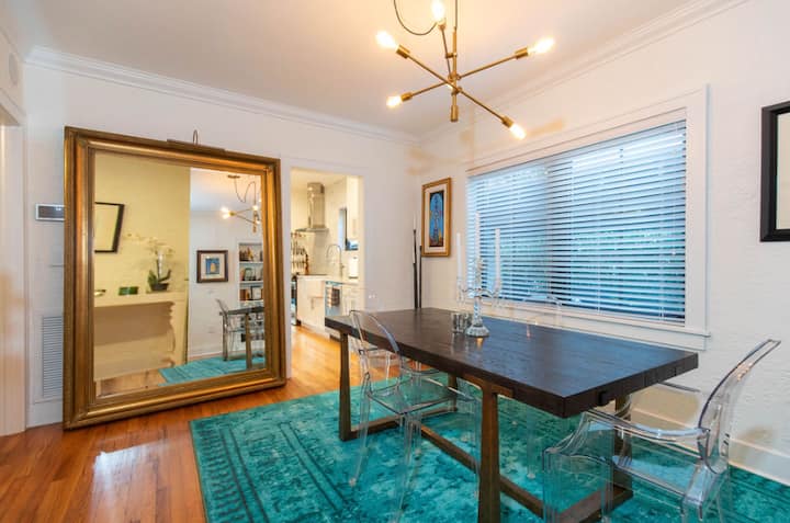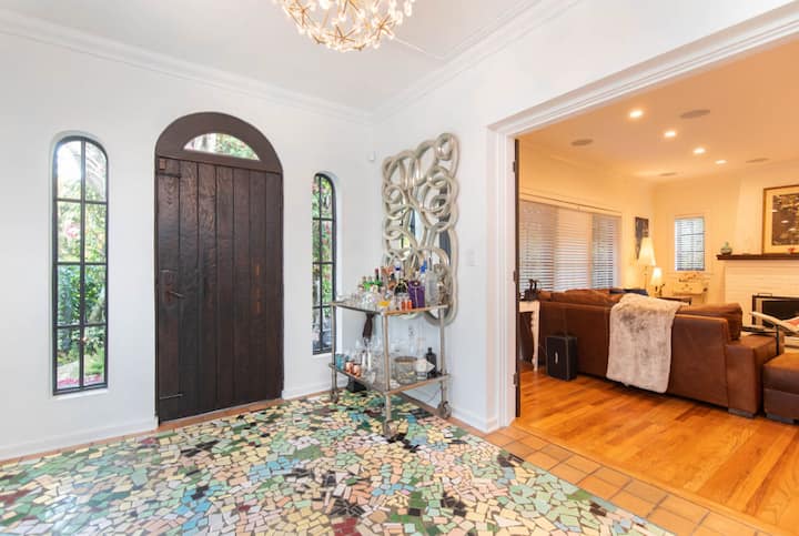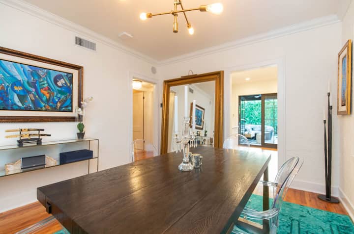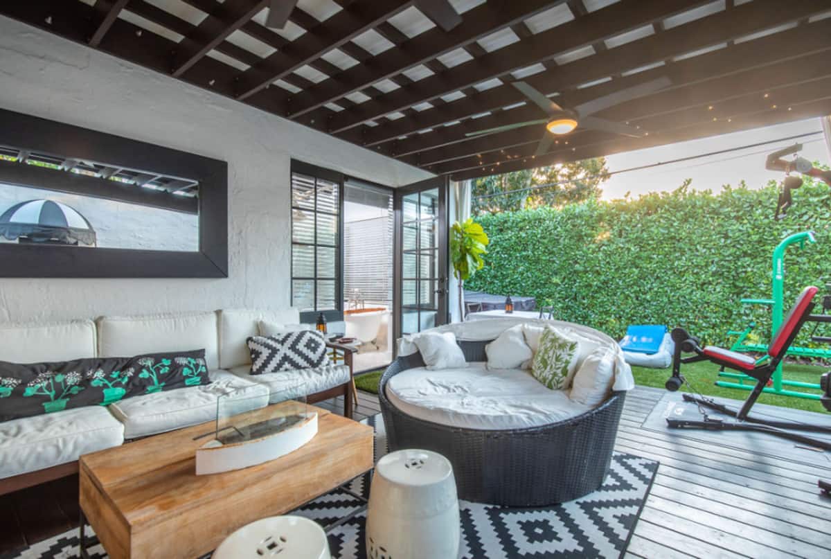 House in residential Olivos with a living room and dining room. It has 1 bedroom with an en-suite bathroom and a large outdoor patio area.