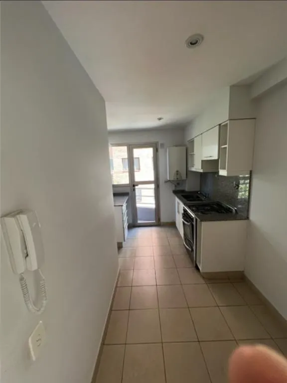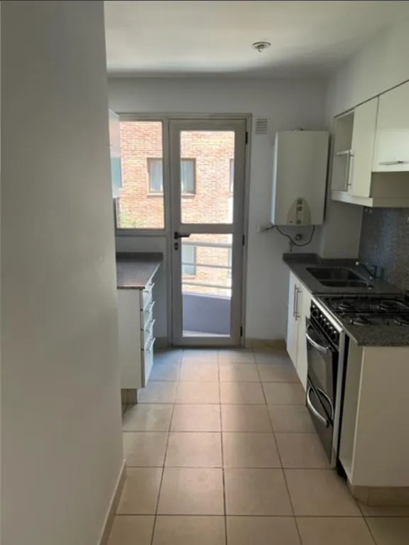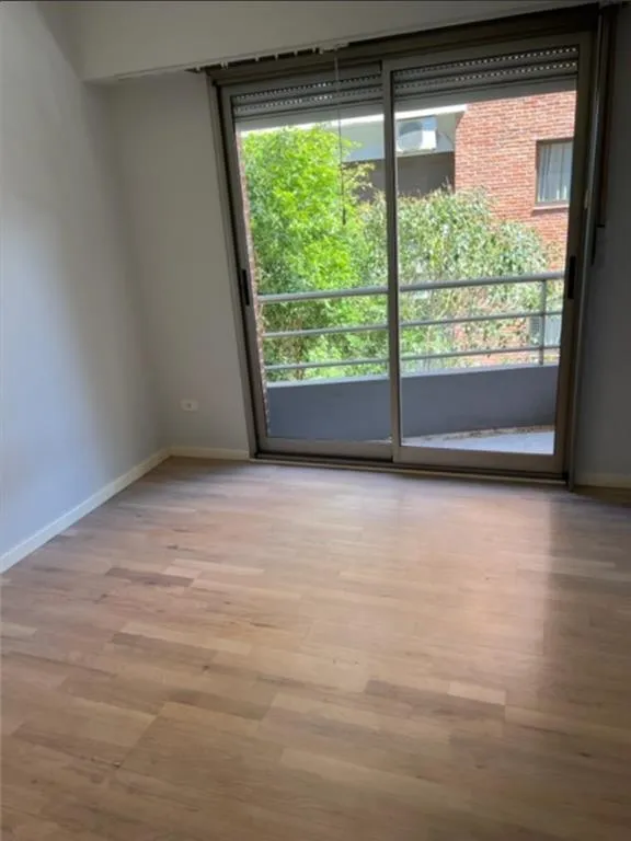 Two-room apartment on the 2nd floor, street-facing on Calle Gutiérrez at the corner in front of Plaza de Olivos. It has a living-dining room with a balcony and a kitchen with space for a daily dining area, plus a built-in laundry area with access to the balcony. Dual boiler for hot water and radiator floor heating, a bedroom with a fitted wardrobe, a full bathroom with a bathtub, and aluminium windows. Includes a covered assigned parking space. Building fees are $248.000.