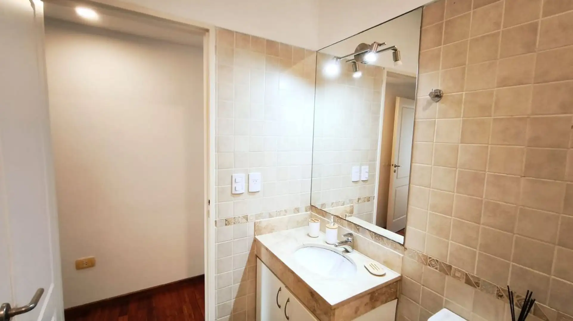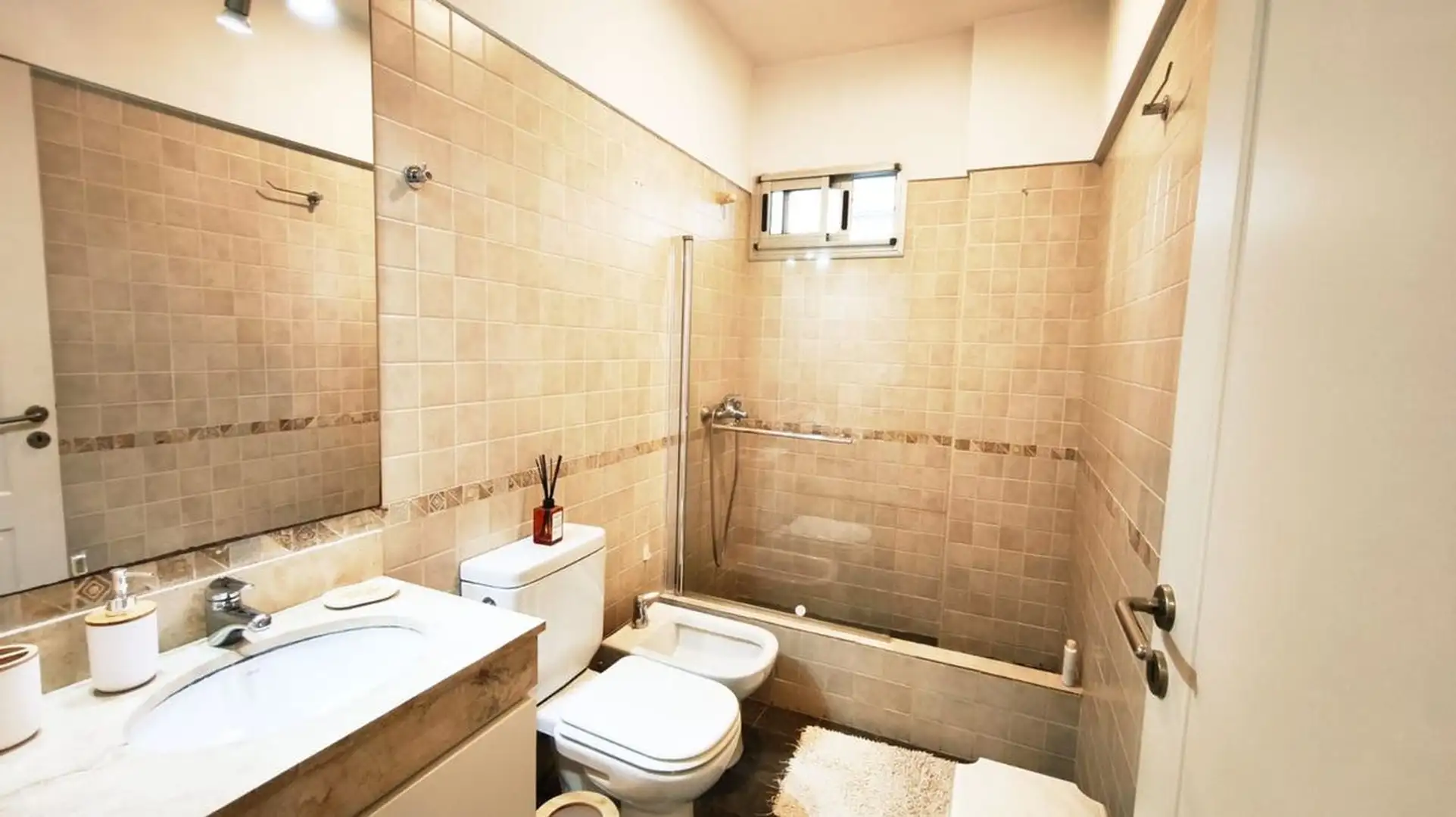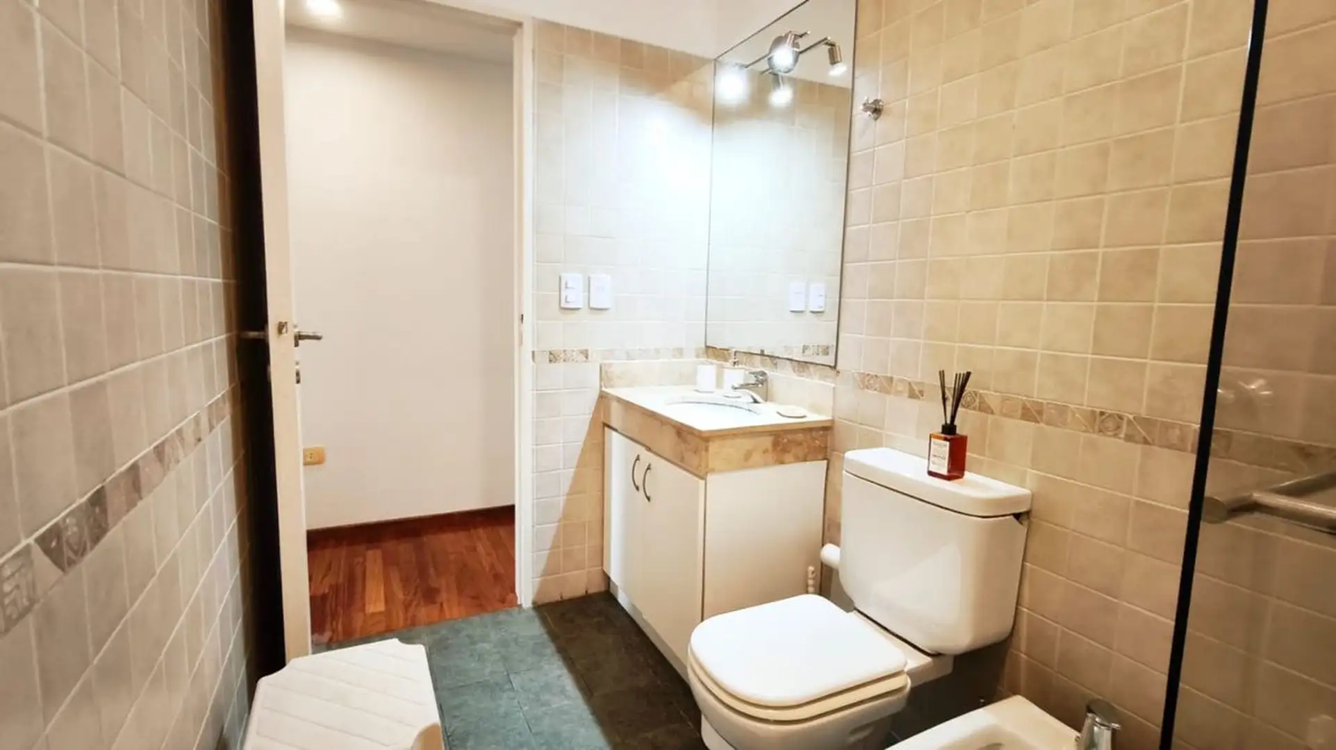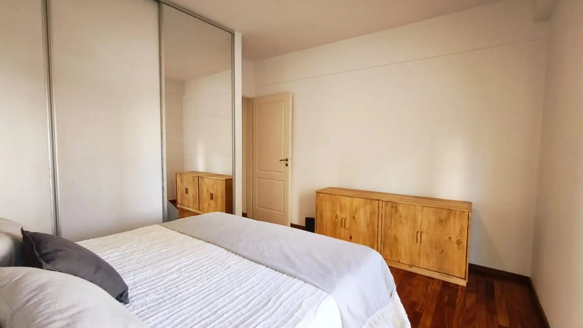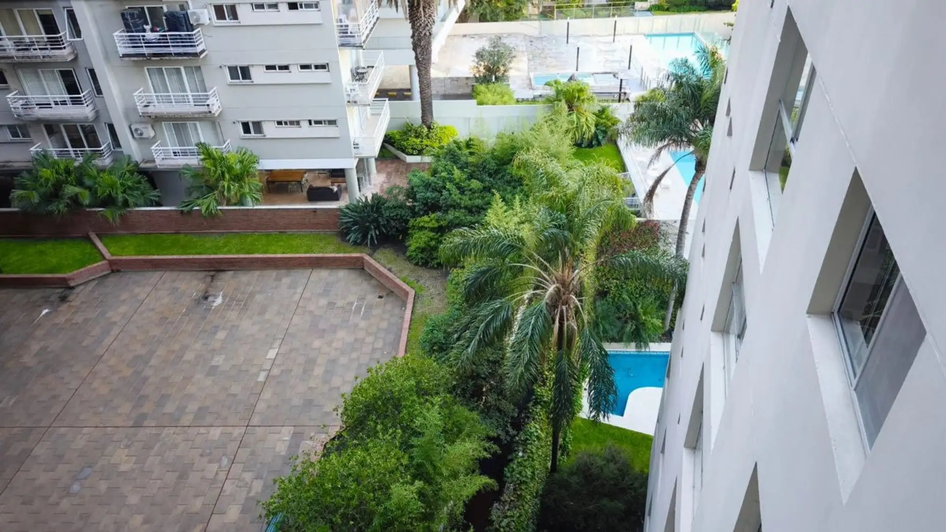 One-bedroom apartment in Olivos, 59 m² covered with a 6.55 m² balcony, north-east facing. Living-dining area with integrated, fully equipped kitchen opening directly to the balcony, with double-glazed windows (DVH). Building amenities include a pool, gym, communal room (SUM), laundry and 24-hour security. The unit includes a covered assigned parking space, and the building offers visitor parking. Nearby transport includes bus lines 29, 59 and 168, and the Mitre train line at Olivos station.