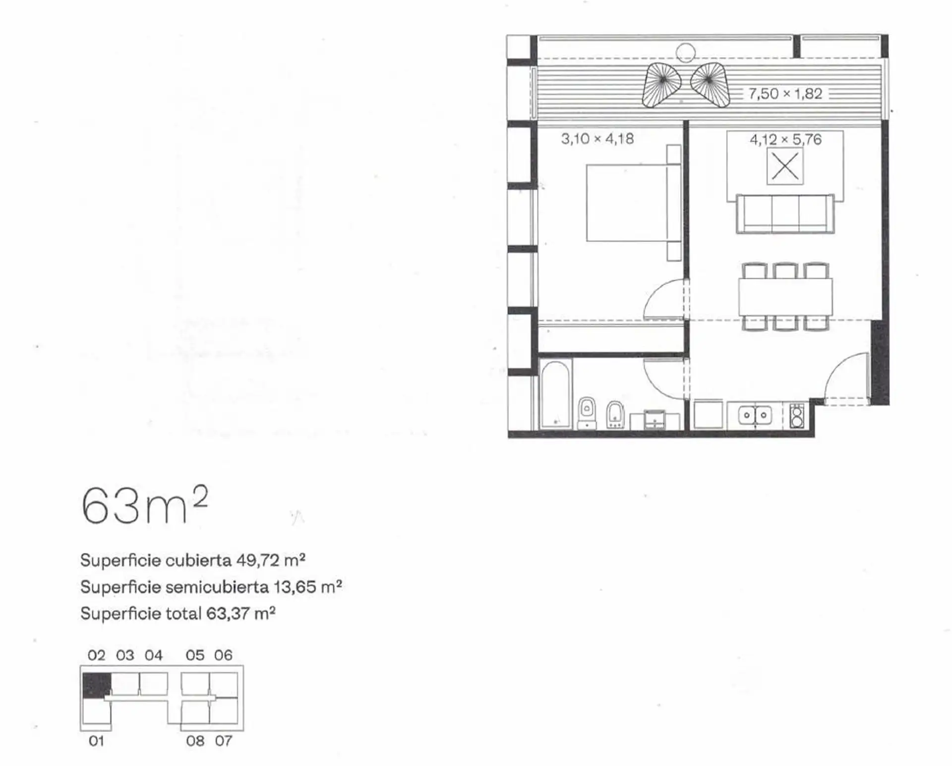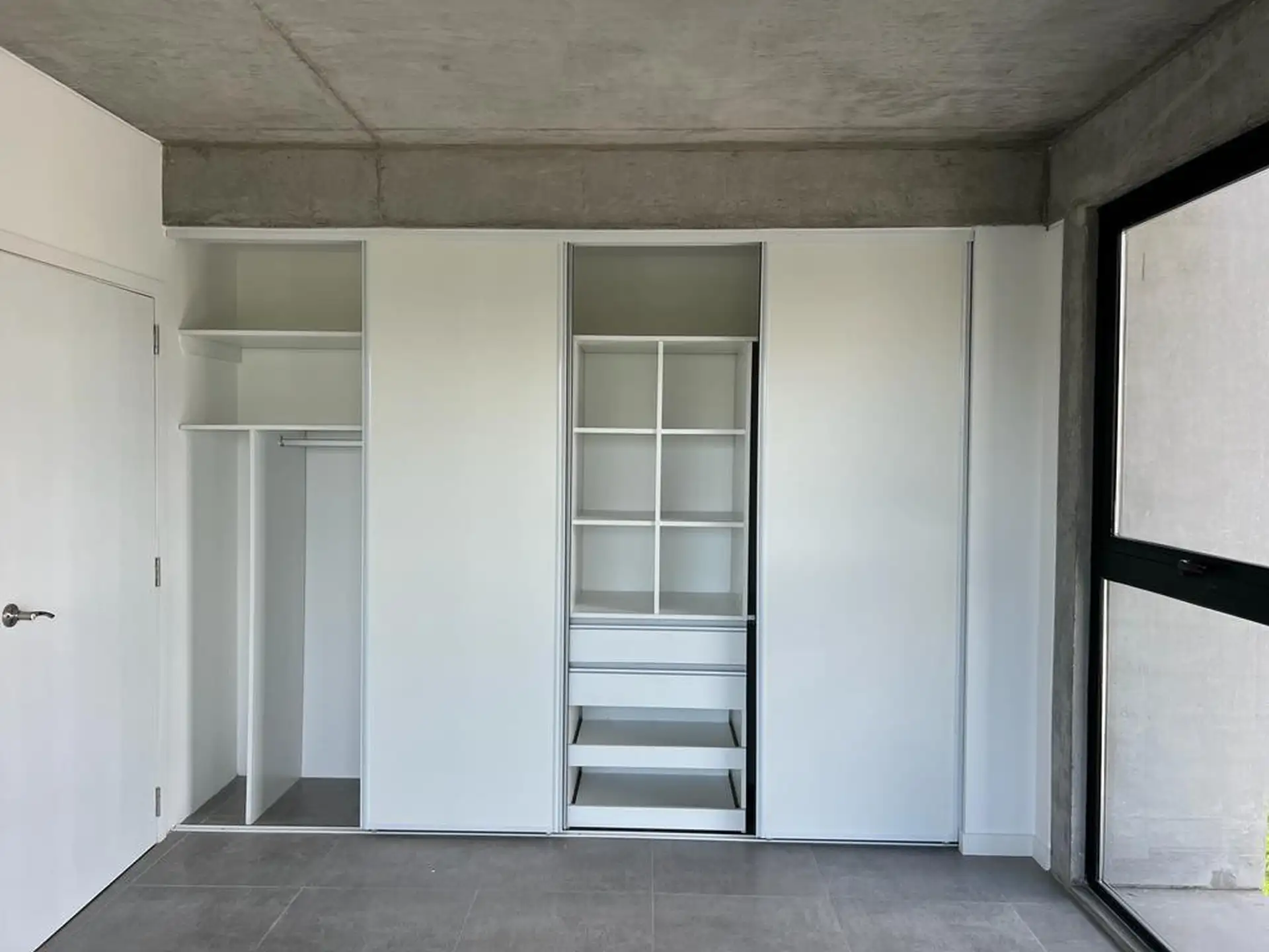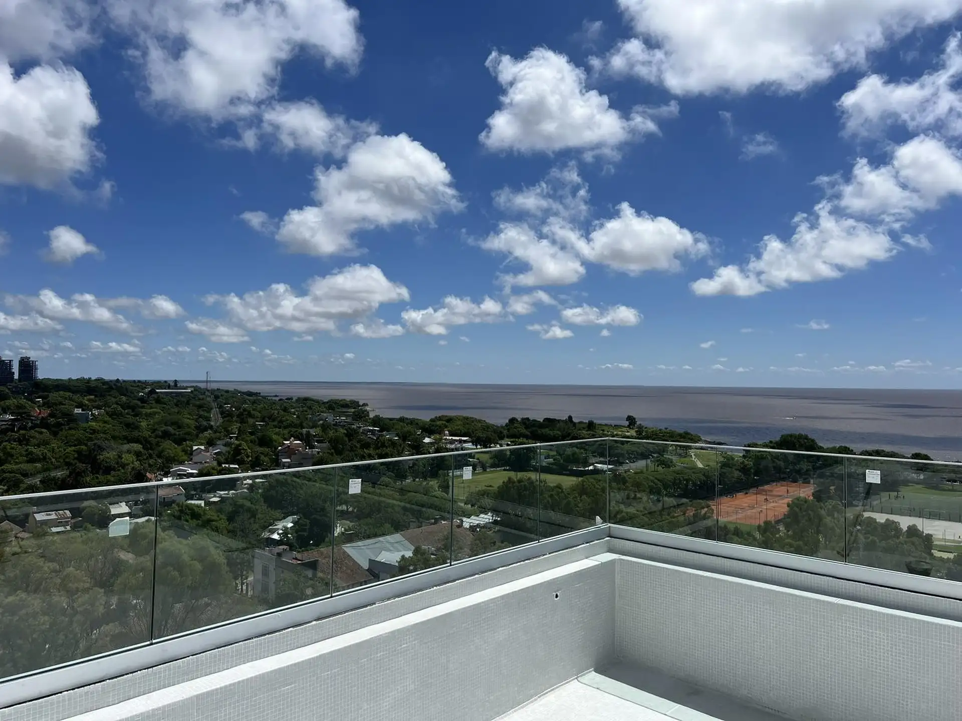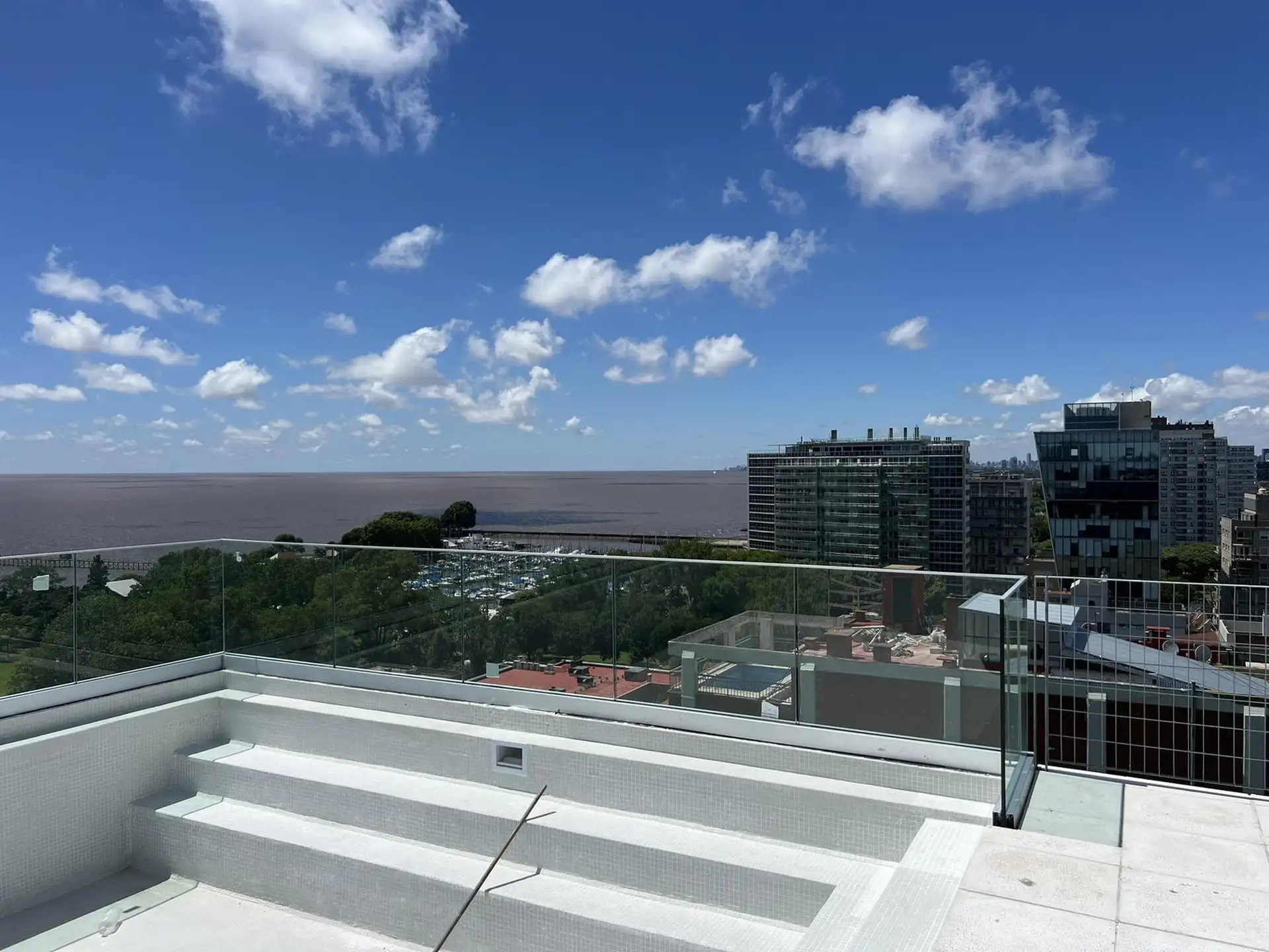 Brand new one-bedroom apartment in Olivos with north-facing river views. It has a living-dining room with access to a long balcony, an integrated kitchen with pantry and base cabinets, and a bedroom with fitted closet and balcony access. Full bathroom with natural light and ventilation; electric oven and hotplate, air extractor, two Samsung split air conditioners (hot/cold), double-glazed black PVC windows, and porcelain stoneware floors. Underground (assigned) parking. Building amenities includ