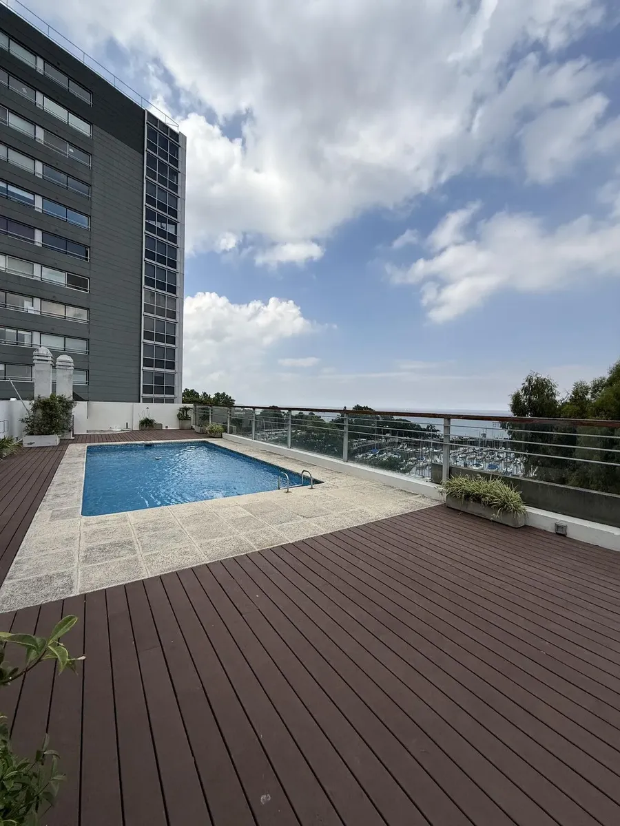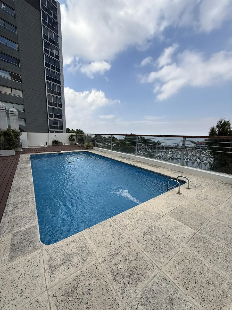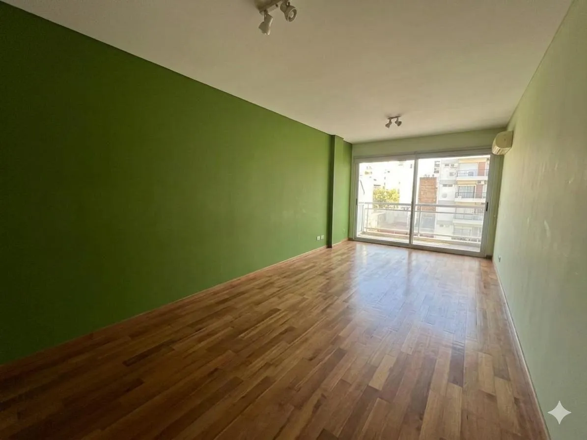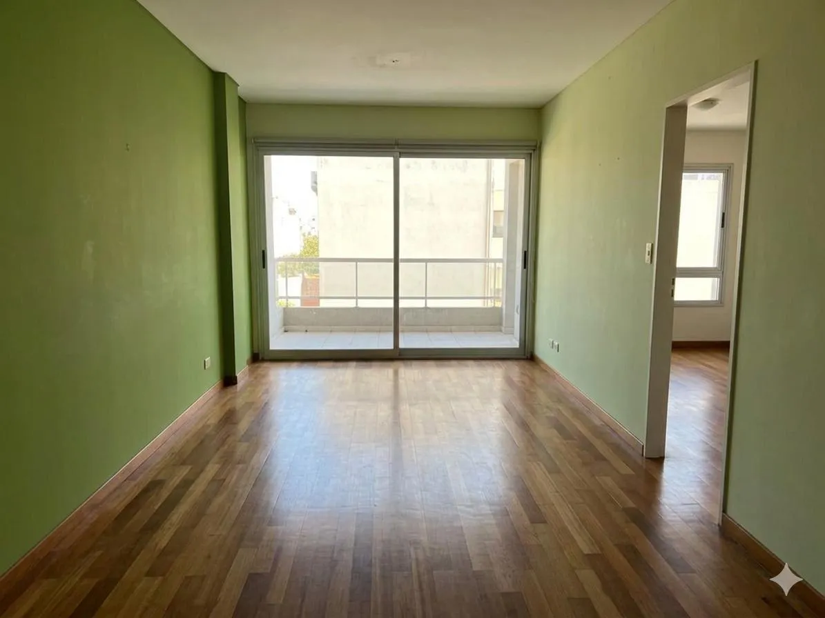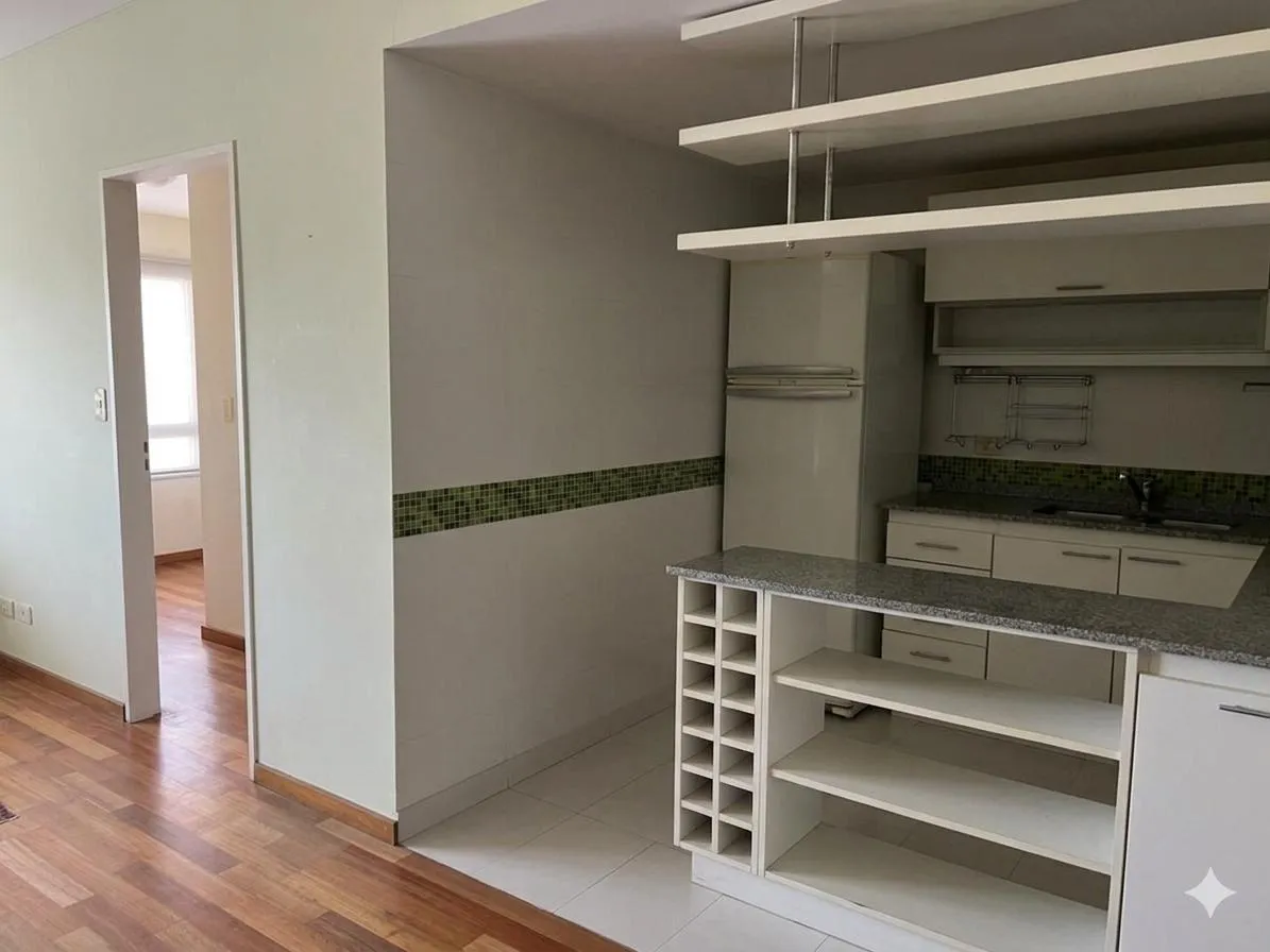 Two-room apartment in Olivos with 1 bedroom and a living-dining room opening to a balcony. Integrated kitchen with a breakfast bar and a full bathroom. Assigned parking space included. Building amenities include a communal room (SUM), pool with views of the Río de la Plata, a grill area and laundry.