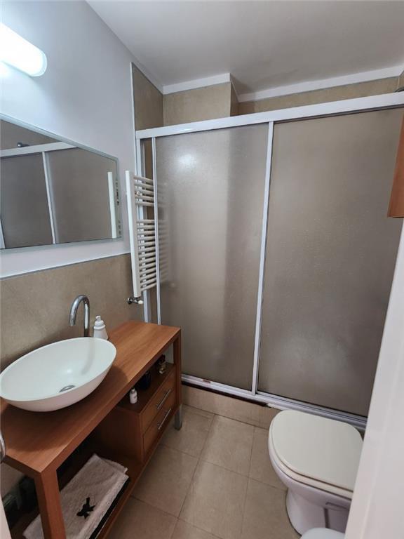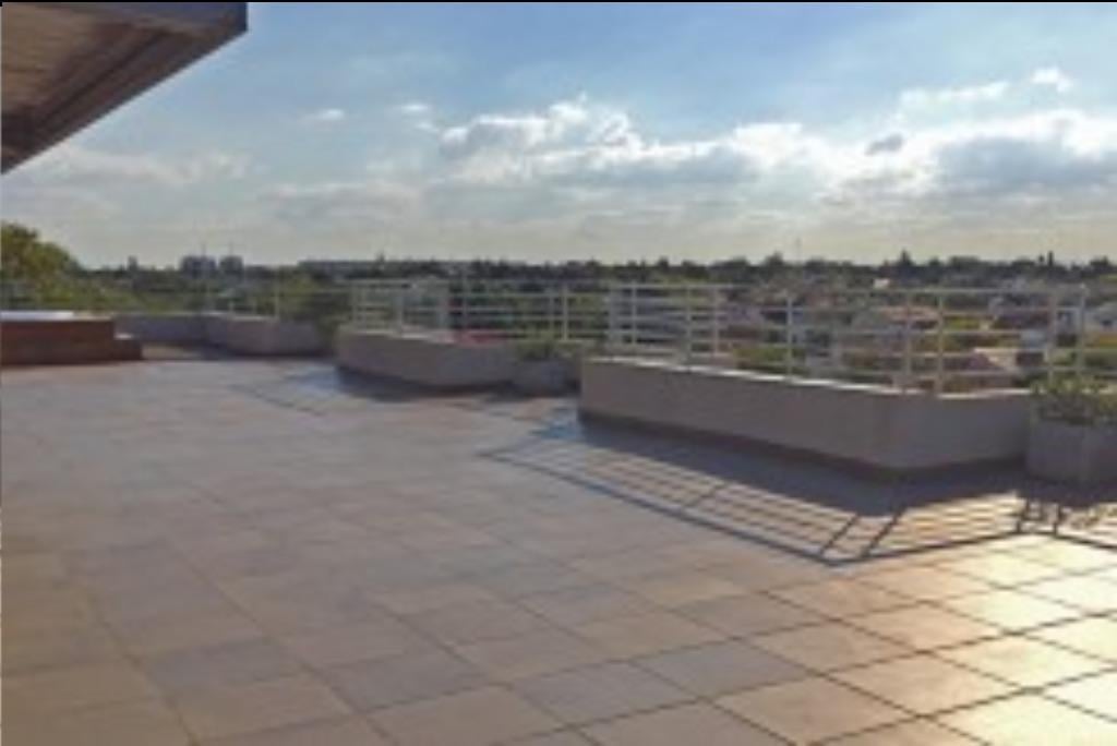 Two-room apartment in Olivos, Vicente López, with a covered parking space and enclosed balcony. 1 bedroom, with a living-dining room, separate kitchen with breakfast bar, laundry area, and a full bathroom. Central hot water and heating run on an individual dual-boiler system. The building has a ground-floor pool and solarium, gym, residents' lounge (SUM), plus a rooftop terrace with grills and seating.