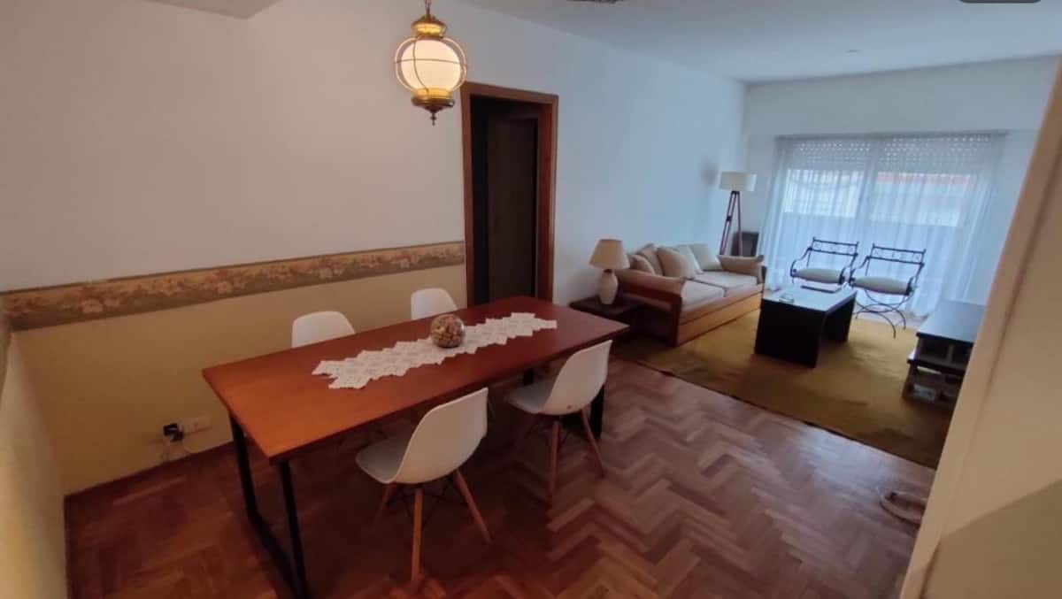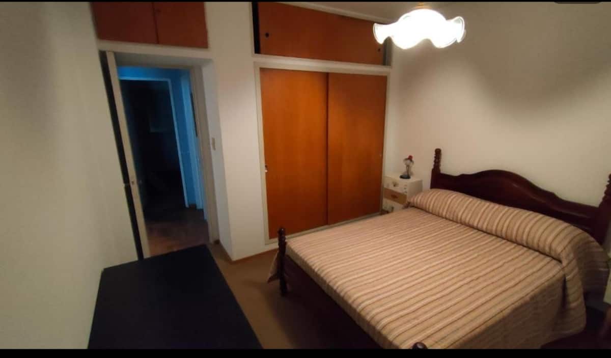 Apartment on the 7th floor, street-facing, in Olivos. There is a large dining room and a furnished kitchen with a daily dining area, plus an integrated laundry area. The unit has a full bathroom with a bathtub, a large bedroom with built-in wardrobes across the wall, and a storage room (baulera). Minimum stay: 2 nights.