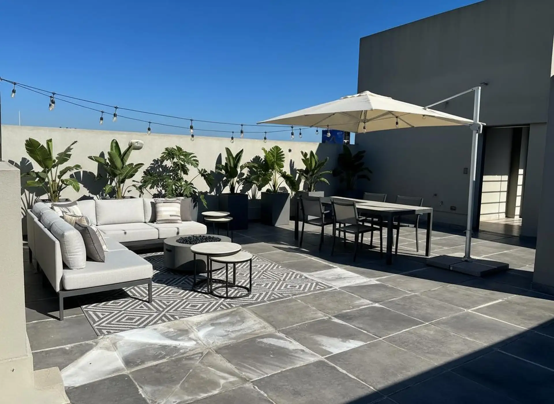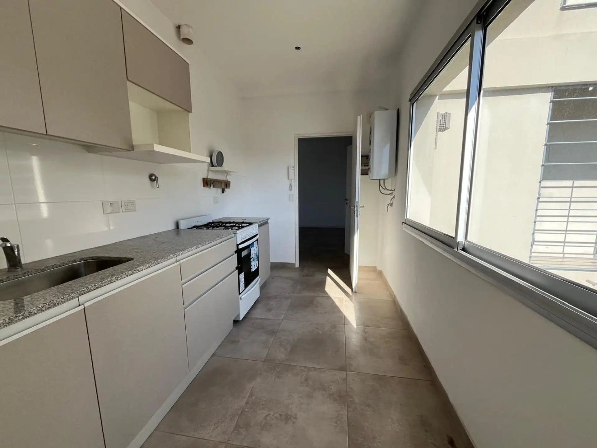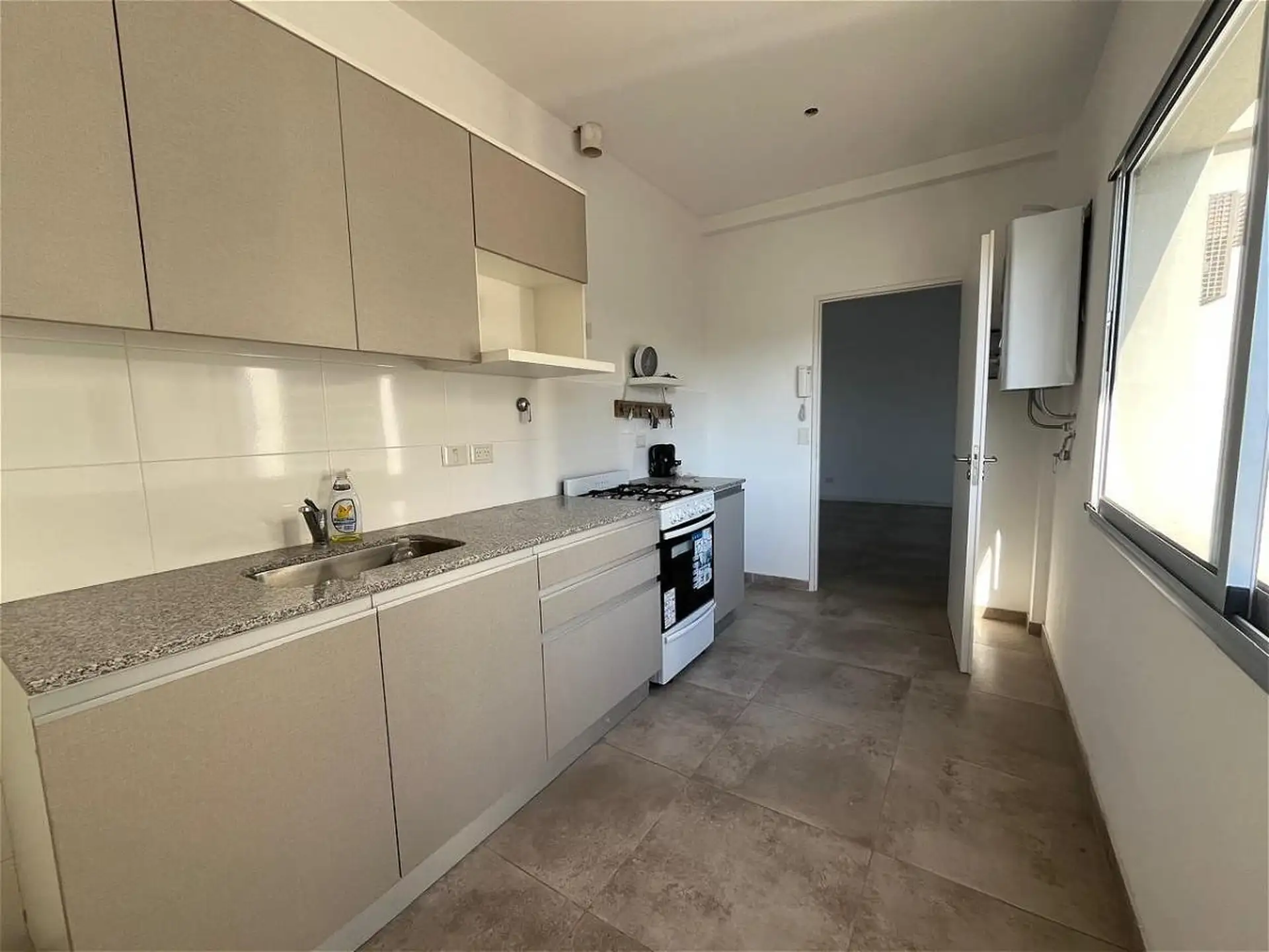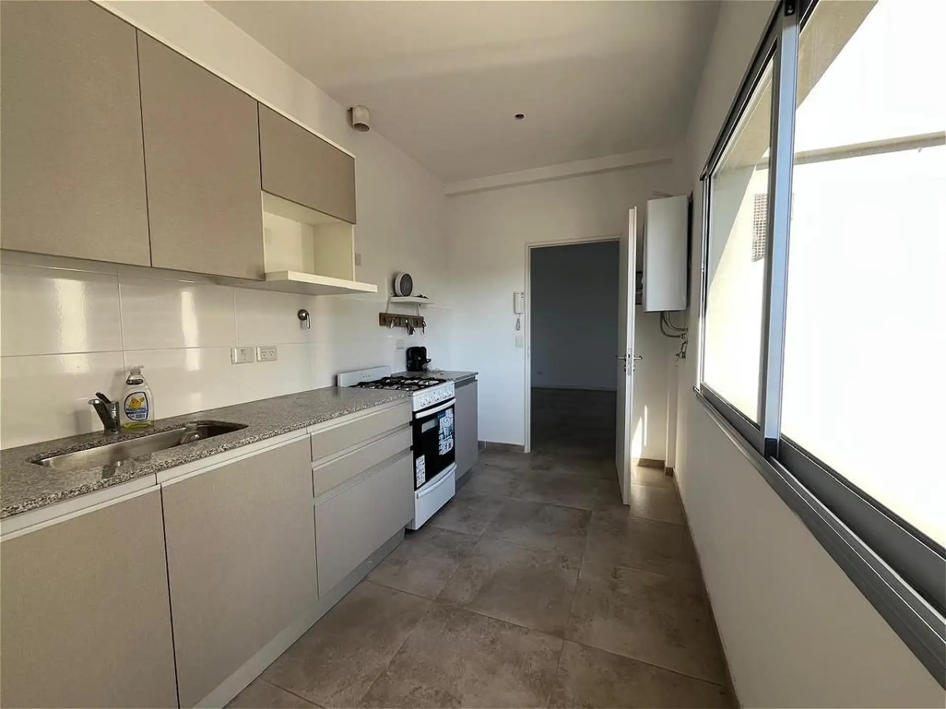 Two-room apartment in Olivos with 1 bedroom, with the option to convert it into a 3-room unit. It has an independent kitchen, an electric hot-water heater, a large living-dining area, a toilet with shower, and a bedroom in suite with a built-in wardrobe and a full bathroom. Includes a covered assigned parking space and a storage room, plus access to a communal residents’ lounge with a grill and a private balcony and large private terrace. Building fees are about ARS 80,000.