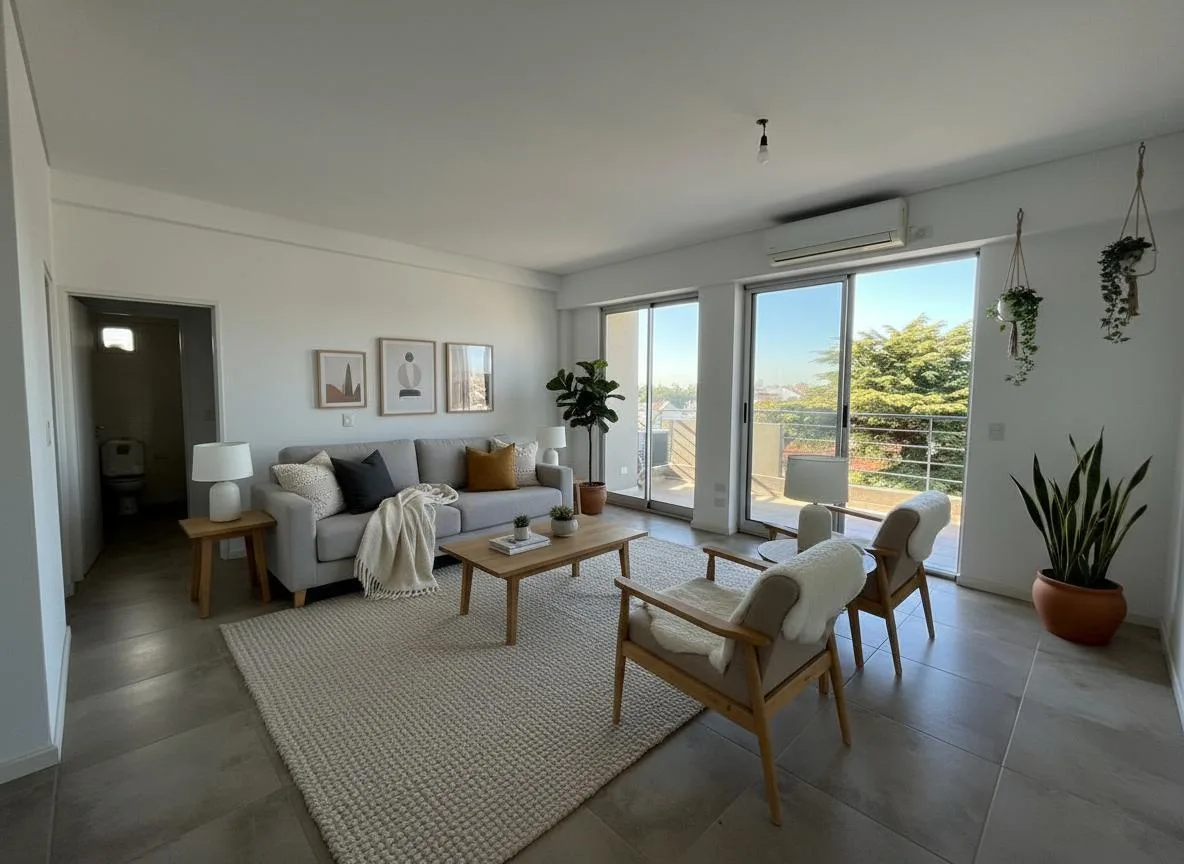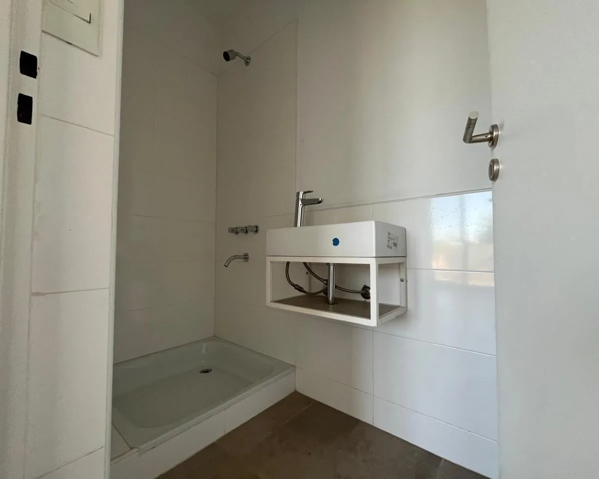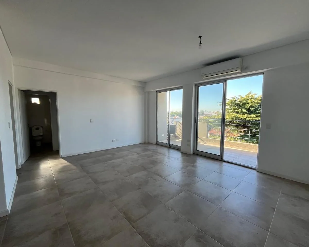 Two-room apartment in Olivos with the option to convert it into a three-room layout. Includes a covered balcony, a private terrace, separate kitchen and an electric heater; living-dining room has balcony views. There is a guest toilet with shower and a bedroom in suite with a spacious built-in wardrobe and a full bathroom. The unit has a covered assigned parking space and a storage room (baulera), access to a communal residents’ lounge (SUM) with a grill, and allows professional use. Building fe