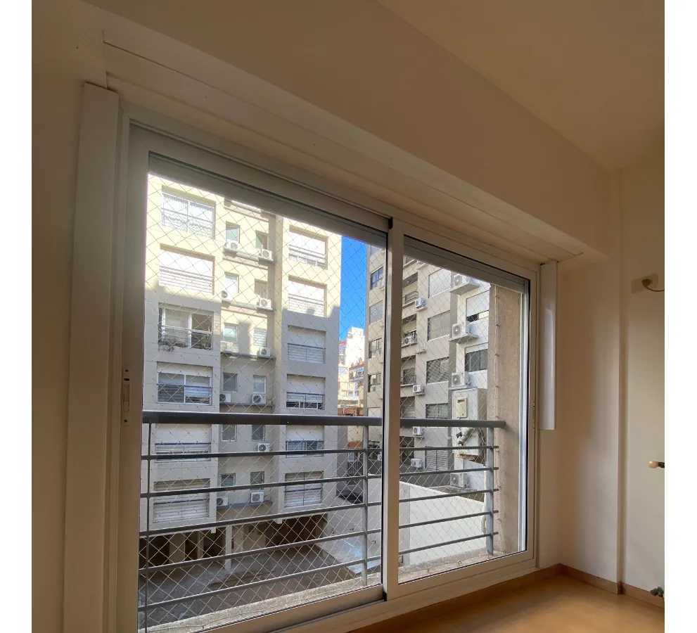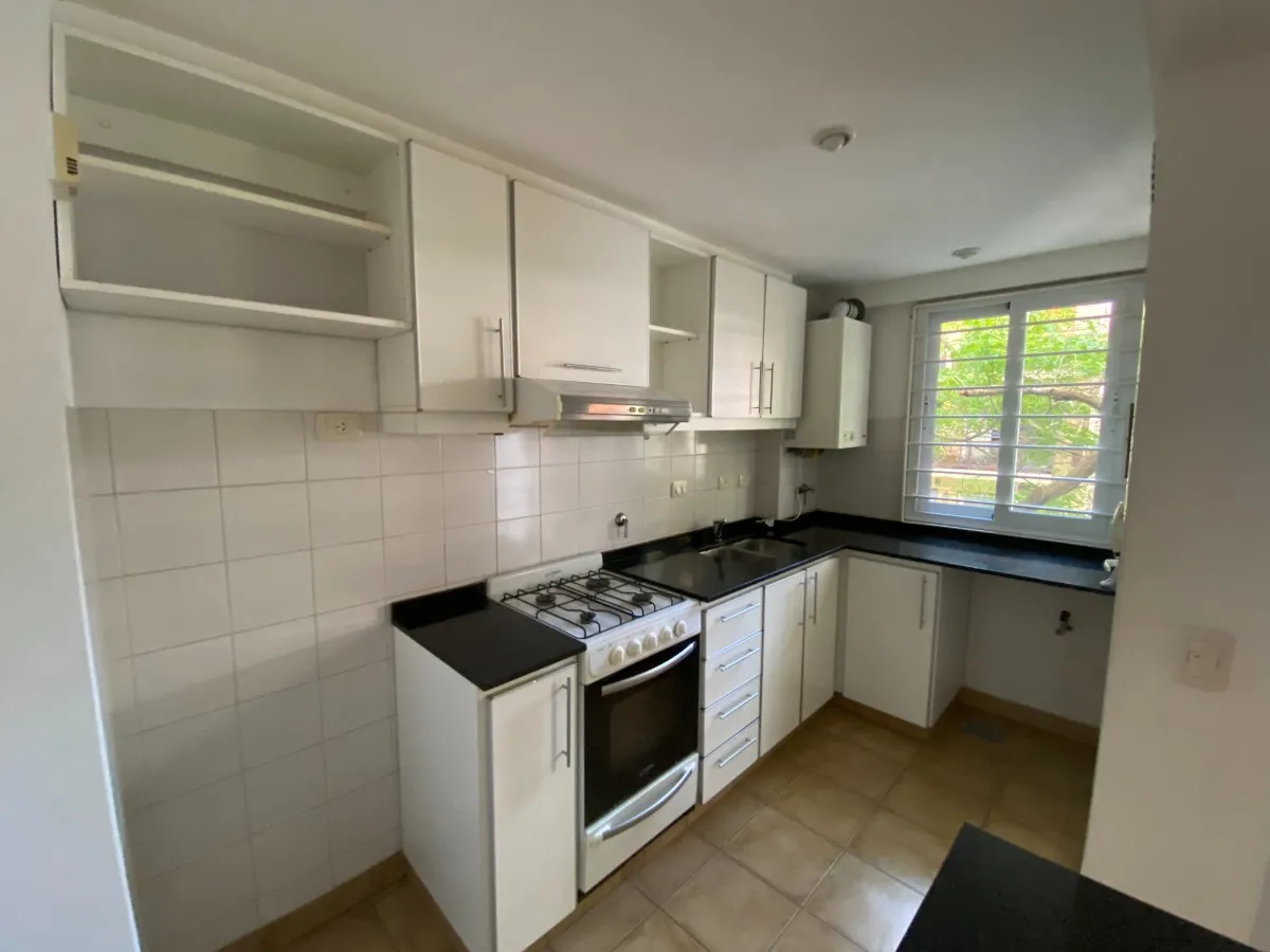 Half-floor, front-facing apartment in Olivos (La Isla), a short walk from the Olivos station. The unit has a combined living-dining area and a complete kitchen with a breakfast bar and integrated laundry. It includes a balcony-terrace, an en-suite bedroom with a dressing area opening to an interior block courtyard, individual heating via radiators and 2 air-conditioning units. Covered assigned parking is included. The terrace has a solarium and a covered grill.