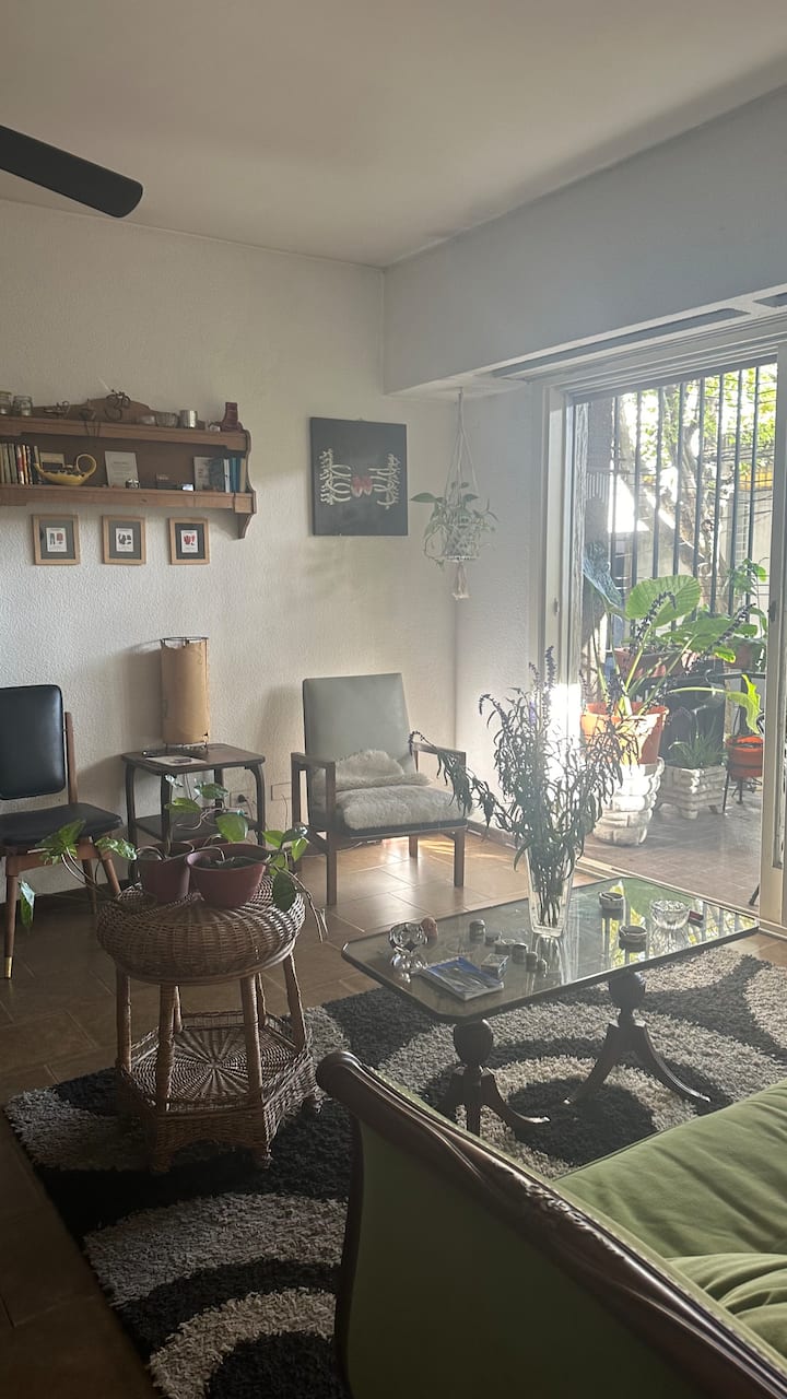 Apartment in Palermo Viejo. The listing describes a bright, furnished space with plants and artwork, located centrally with access to major avenues.