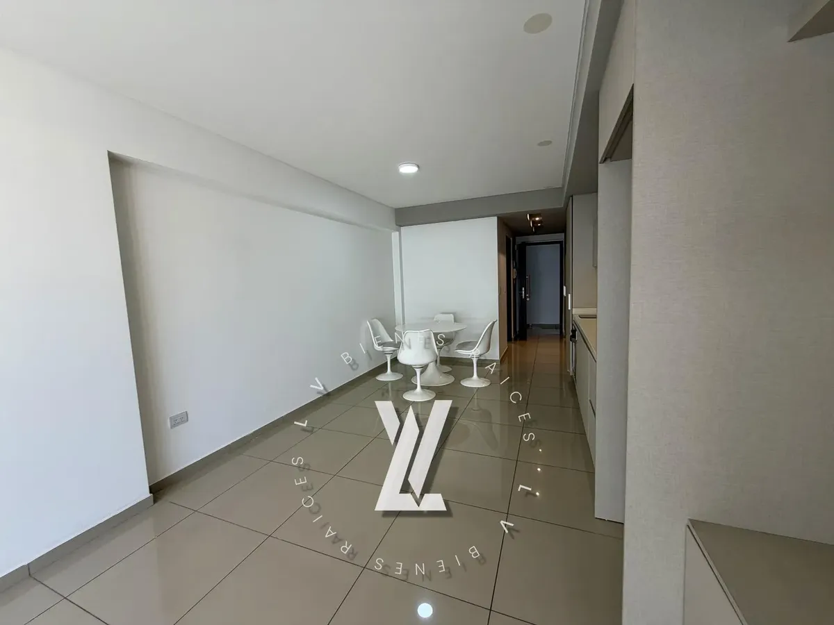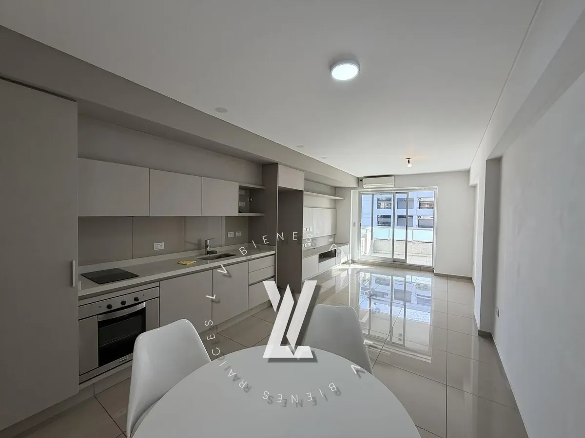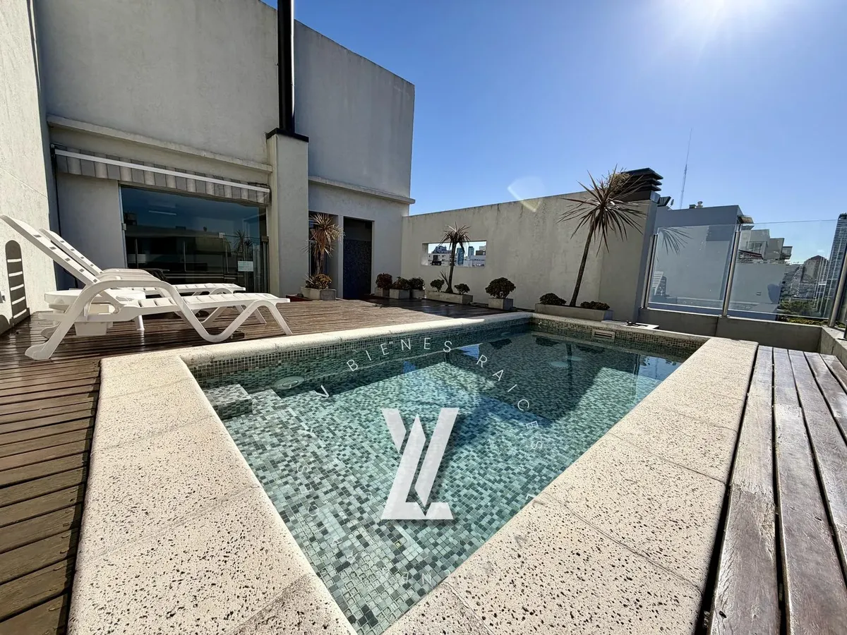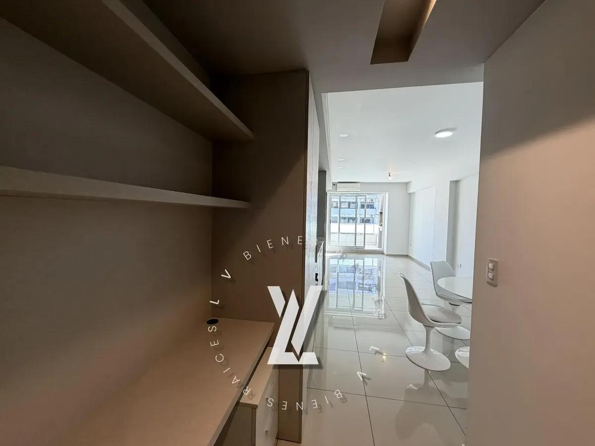 Studio apartment for rent in Palermo Chico. One main room with natural light, with space for a living and sleeping area, plus a functional kitchen with storage and a full bathroom. The unit is in a well-maintained building in a residential setting.